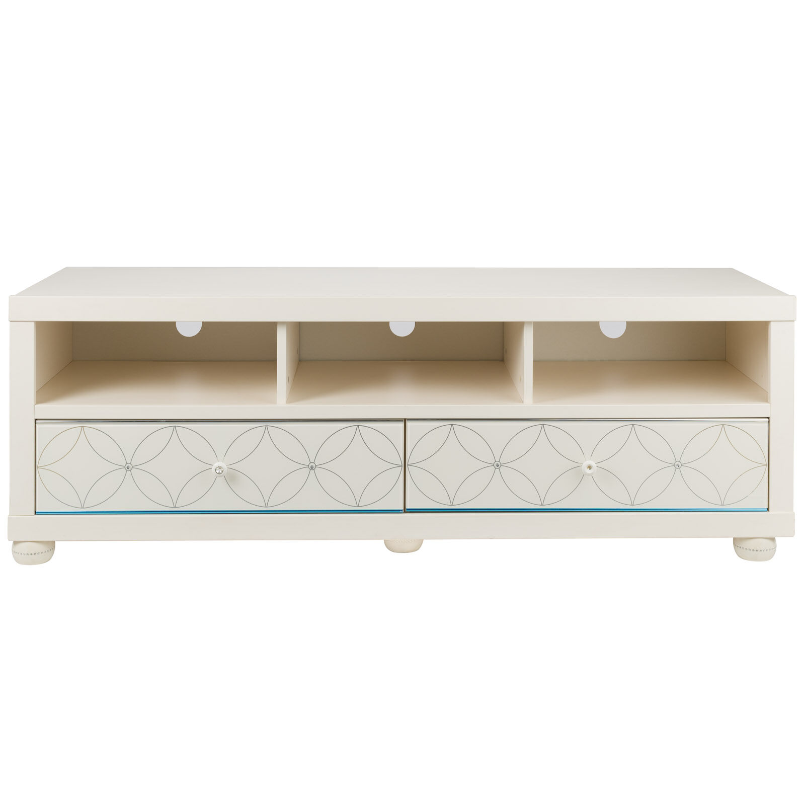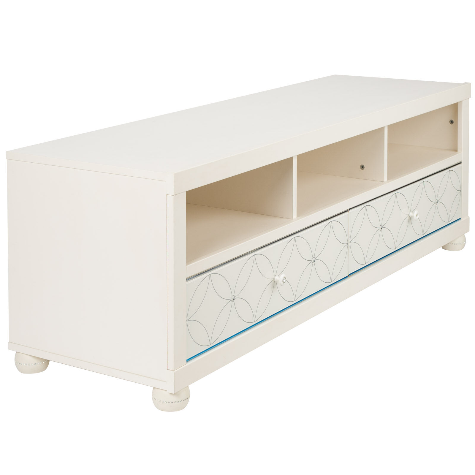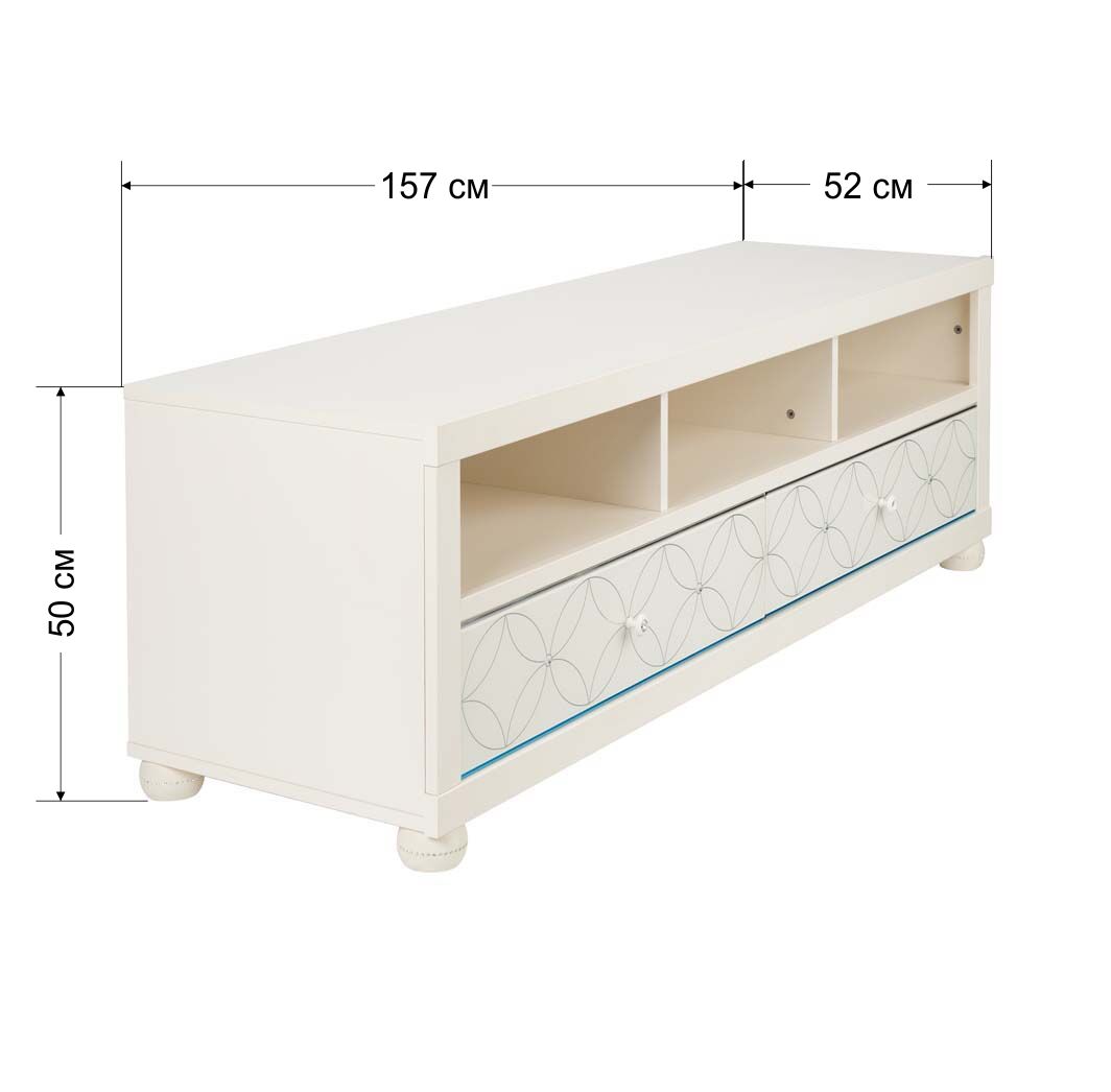 Тумба под телевизор Мира от Беллона обладает лаконичной конструкцией, современной удлиненной формой и респектабельным дизайном. Эффектности модели добавляет стильное оформление боковых распашных створок из каленого черного стекла – нанесенный стилизованный рисунок сопровождается украшением стразами Swarovski.