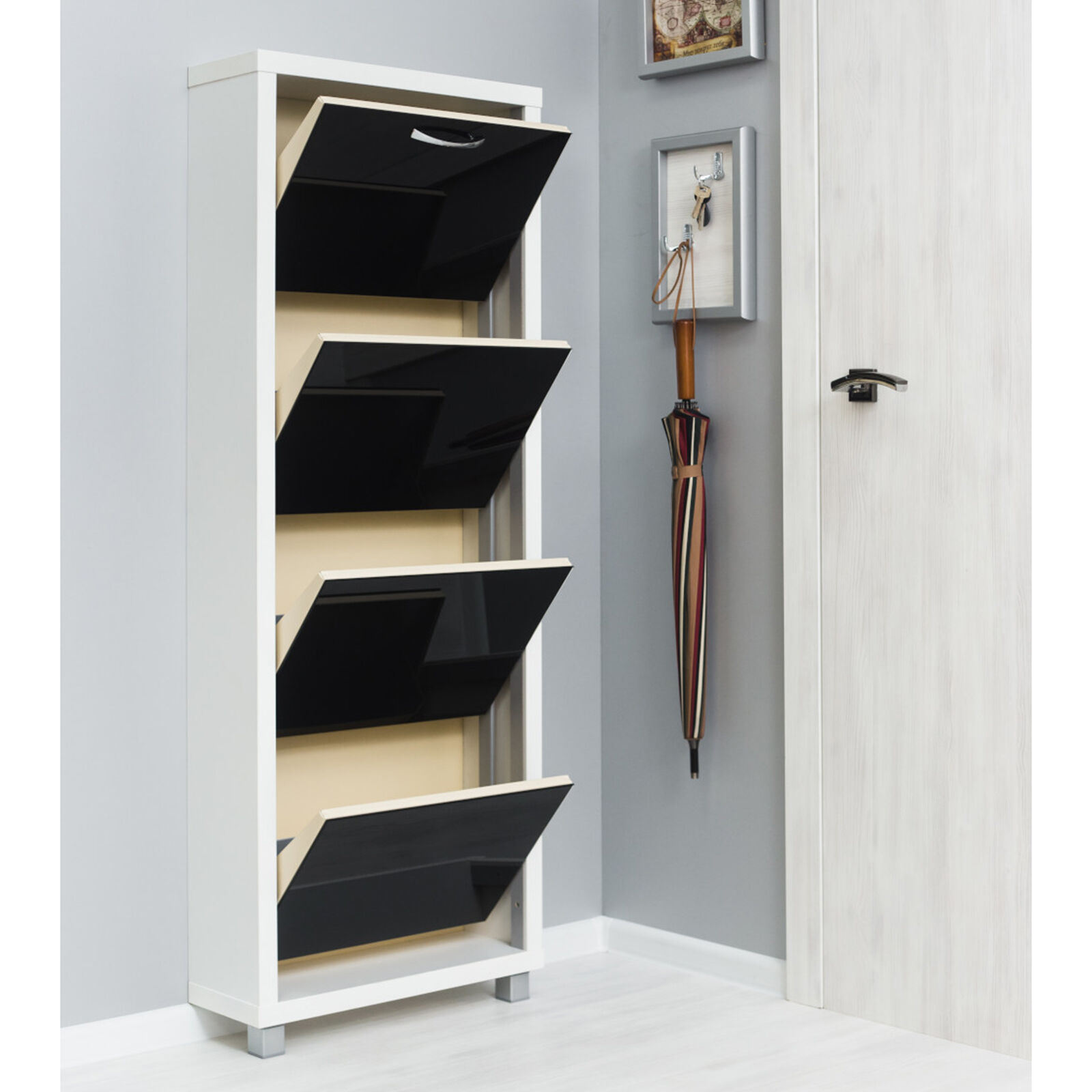 Обувной шкаф Айрон Люкс 4 белый шагрень/стекло чёрное