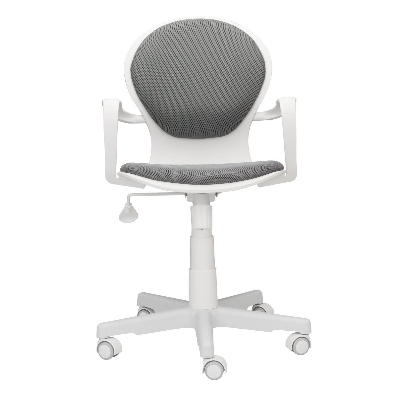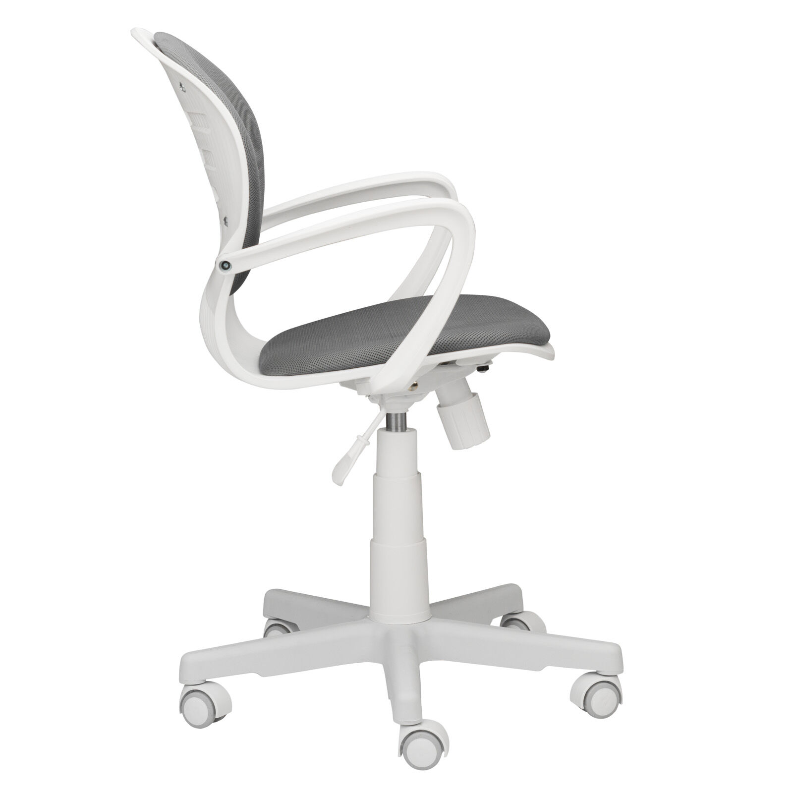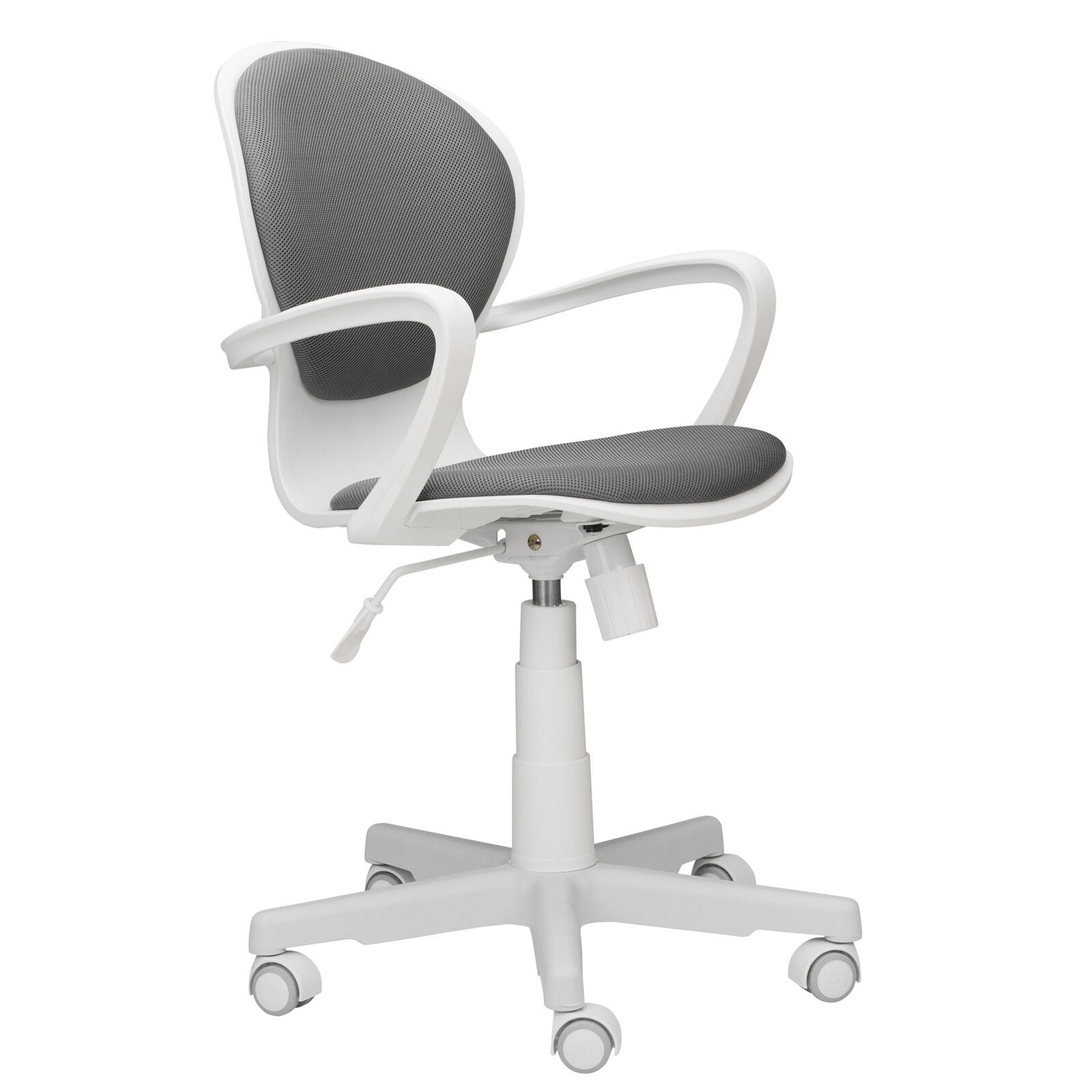 Кресло компьютерное детское «Вальтер-П пл.белый-TW серый». Механизм качания TopGun. Цельнолитая крестовина из пластика. Пластиковые подлокотники. Газпатрон 3-й категории стабильности по DIN 4550. Ролики стандарт BIFMA 5.1 (США), диаметр штока 11 мм, материал - нейлон. «Мебель поставляется в разобранном виде».
