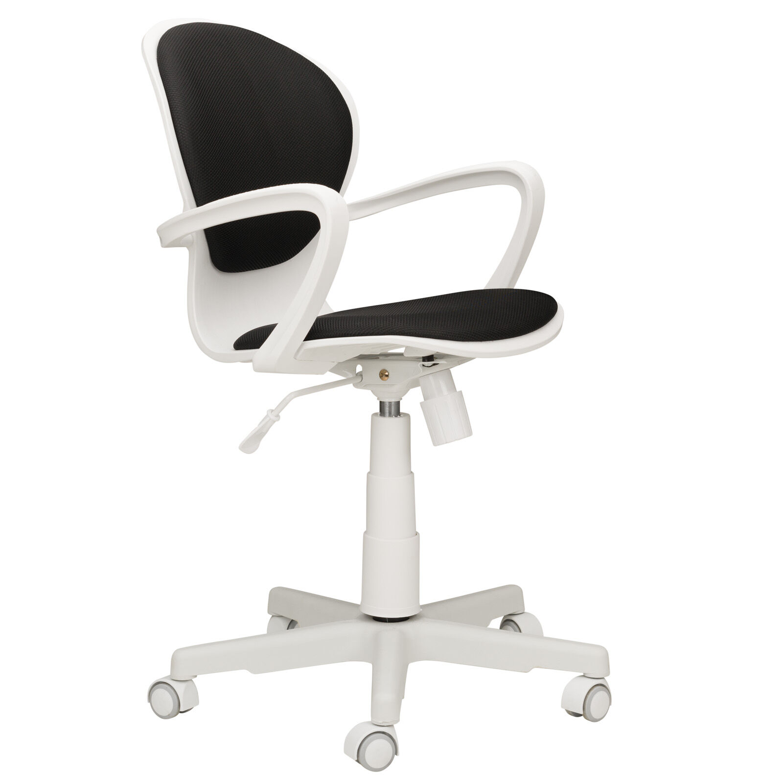 Кресло компьютерное детское «Вальтер-П пл.белый-TW черный». Механизм качания TopGun. Цельнолитая крестовина из пластика. Пластиковые подлокотники. Газпатрон 3-й категории стабильности по DIN 4550. Ролики стандарт BIFMA 5.1 (США), диаметр штока 11 мм, материал - нейлон. «Мебель поставляется в разобранном виде».