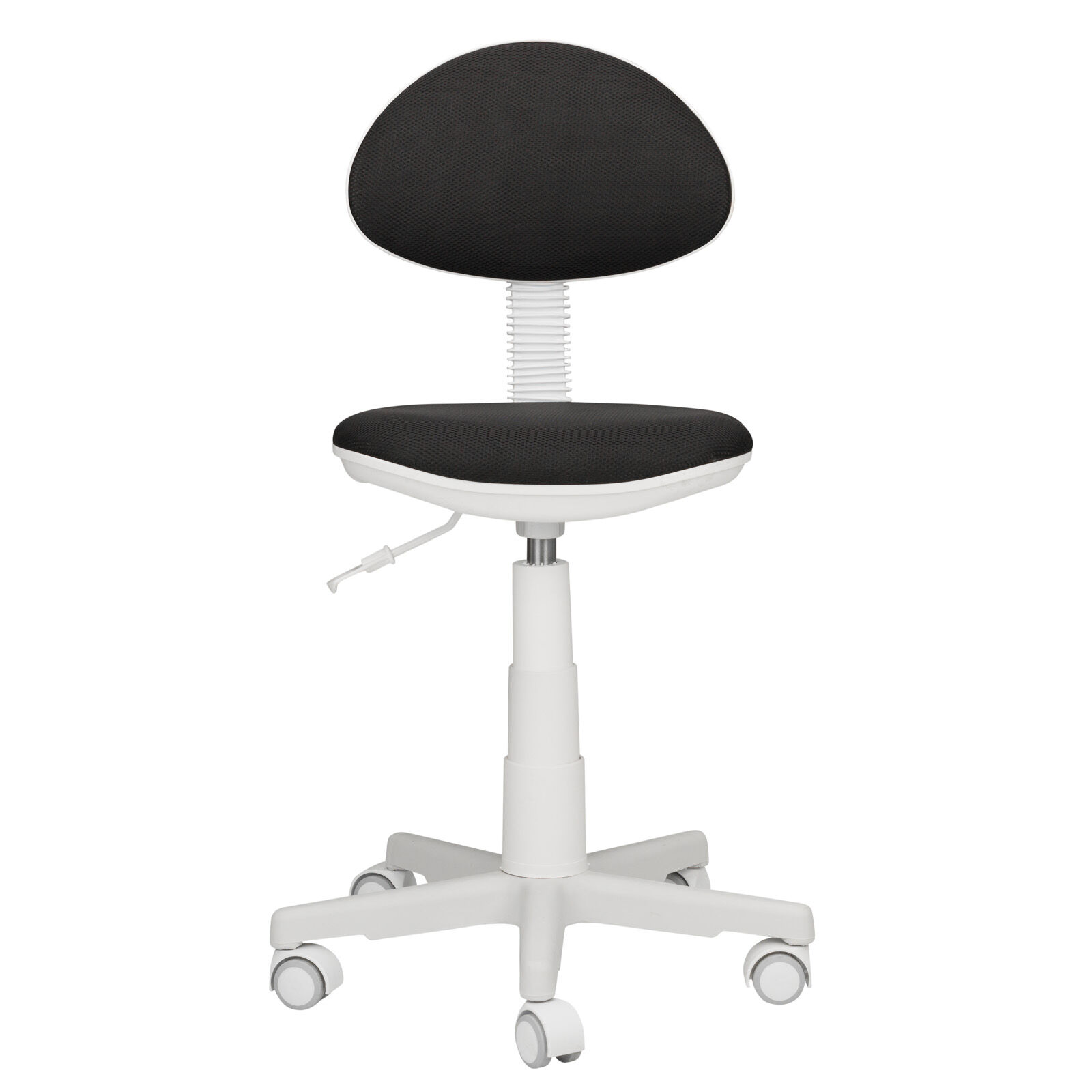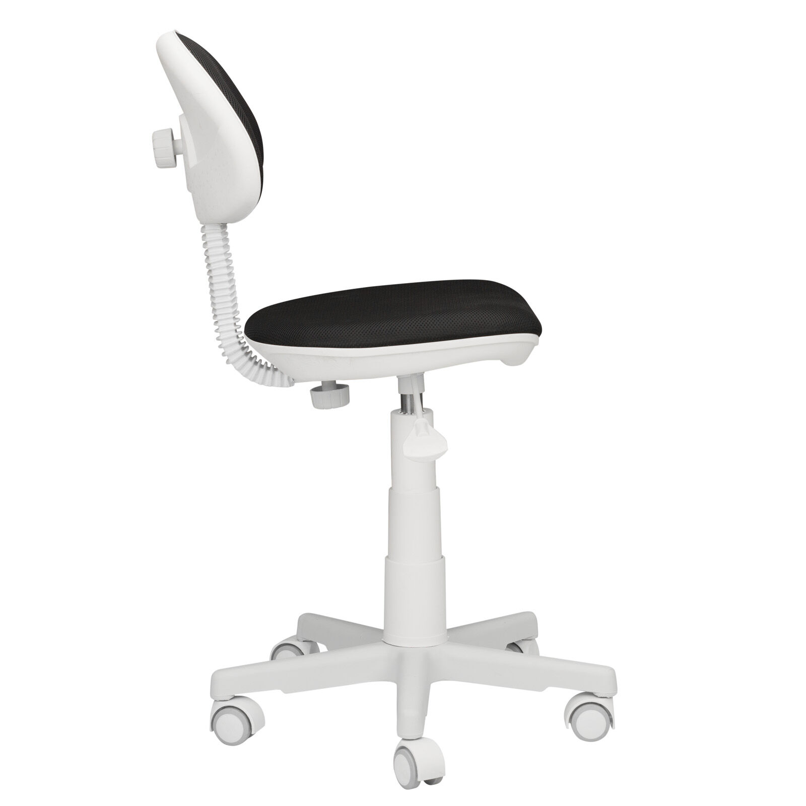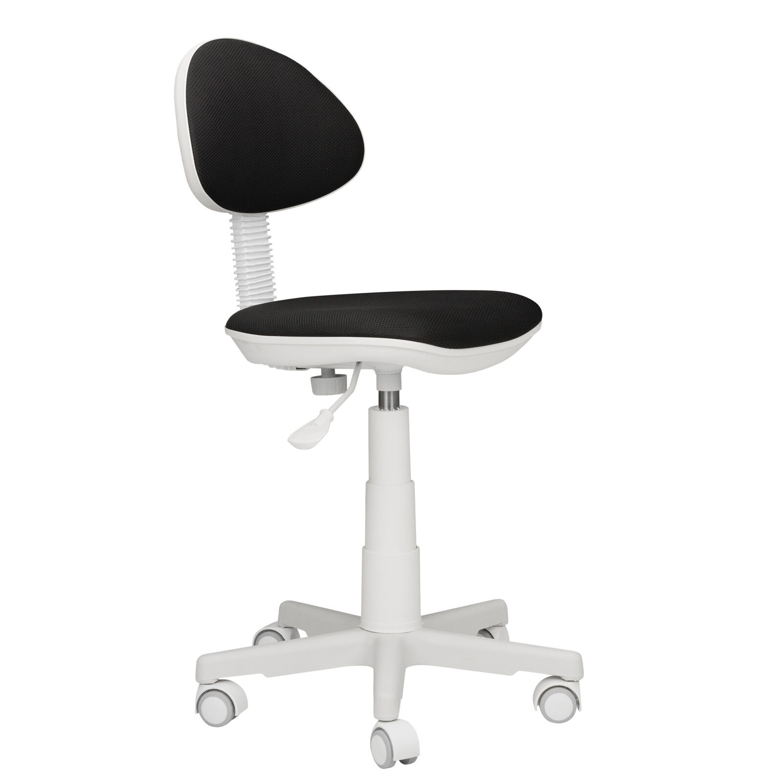 Кресло компьютерное детское «Стар пл.белый-TW черный». Регулировка по высоте Пиастра. Цельнолитая крестовина из пластика. Газпатрон 3-й категории стабильности по DIN 4550 (200 000 циклов динамической нагрузки 60 кг). Ролики стандарт BIFMA 5.1 (США), диаметр штока 11 мм, материал - нейлон. «Мебель поставляется в разобранном виде».