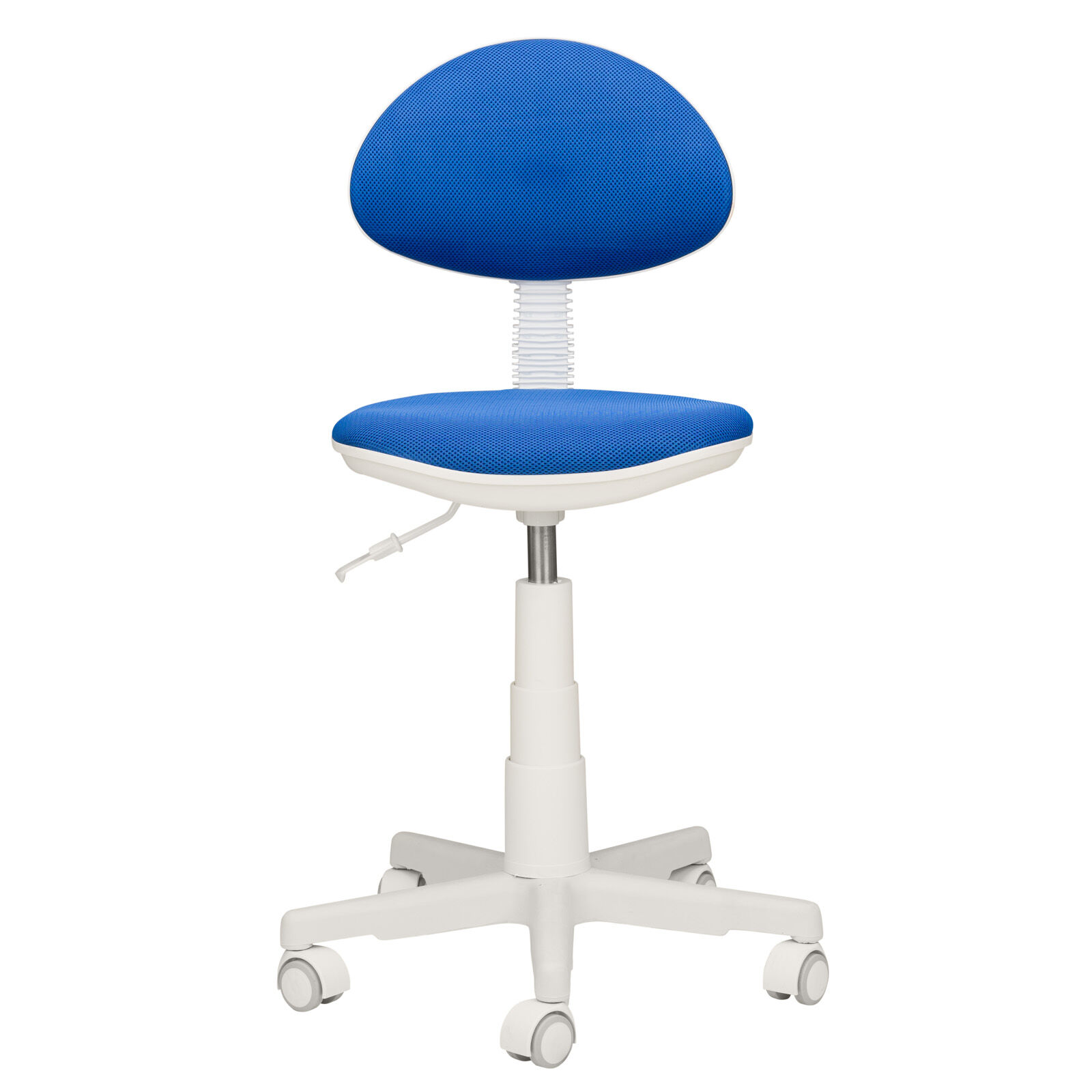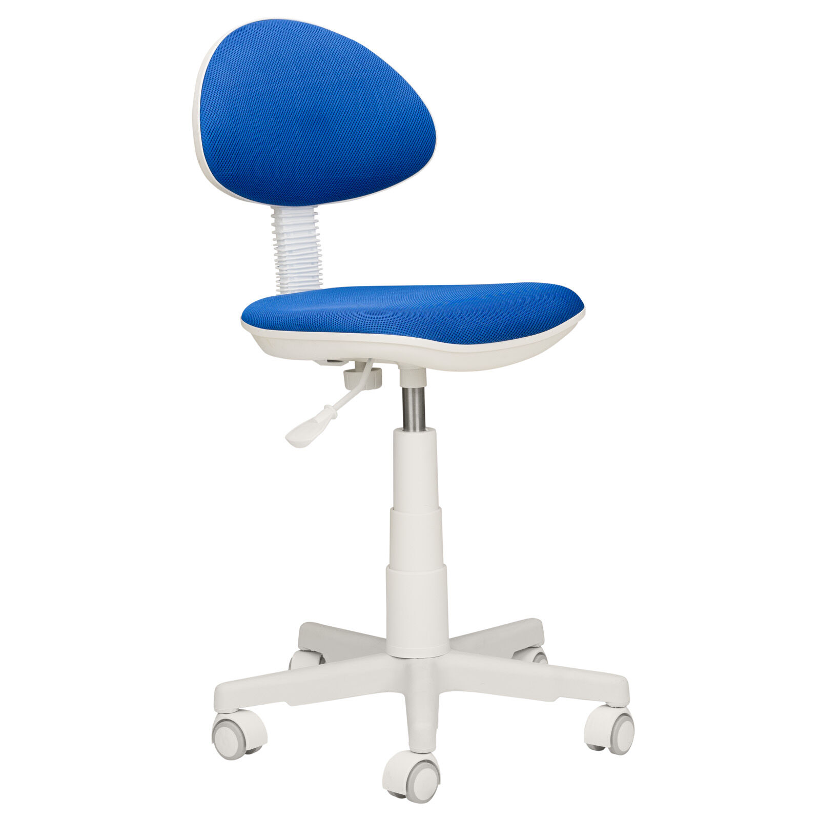 Кресло компьютерное детское «Стар пл.белый-TW синий». Регулировка по высоте Пиастра. Цельнолитая крестовина из пластика. Газпатрон 3-й категории стабильности по DIN 4550 (200 000 циклов динамической нагрузки 60 кг). Ролики стандарт BIFMA 5.1 (США), диаметр штока 11 мм, материал - нейлон. «Мебель поставляется в разобранном виде».