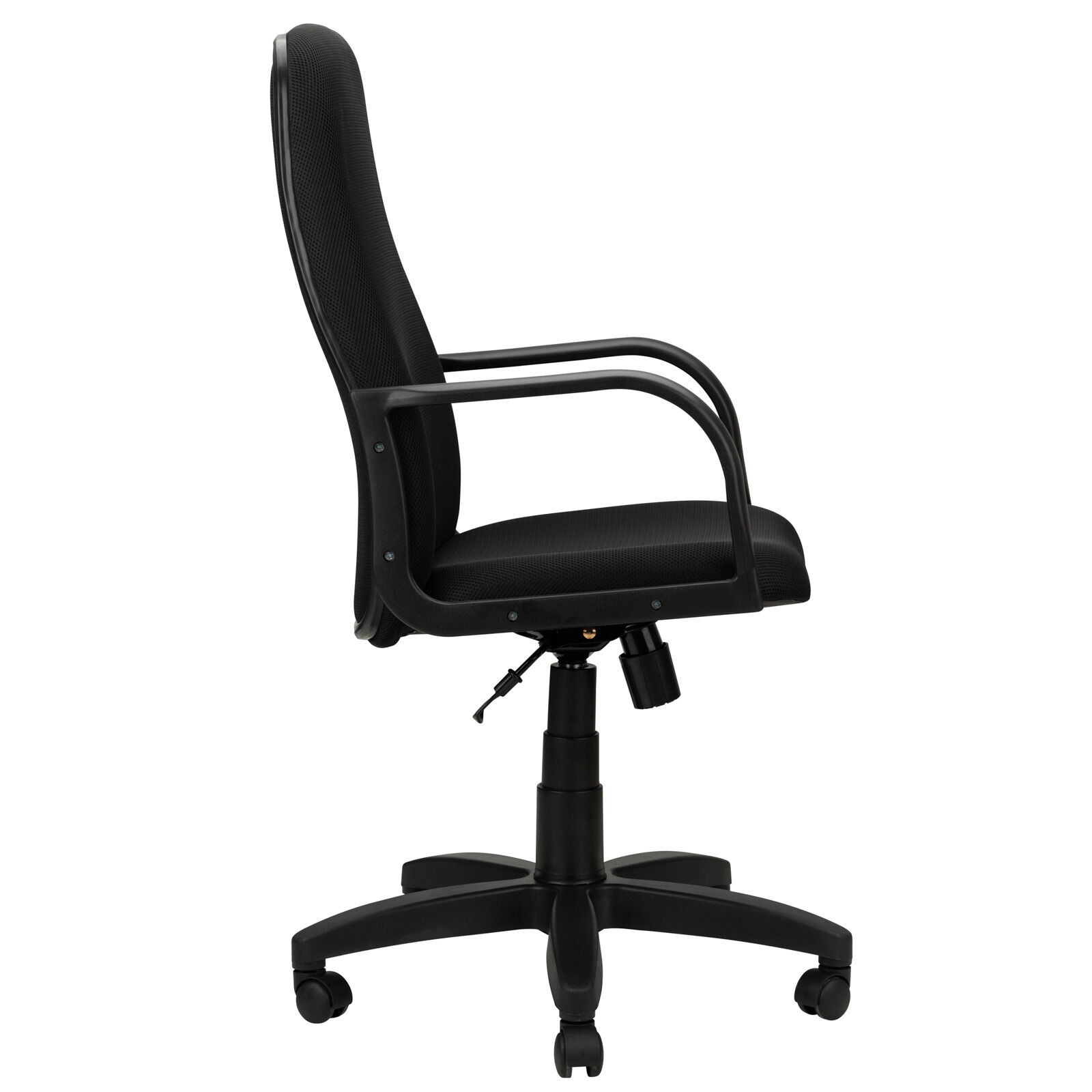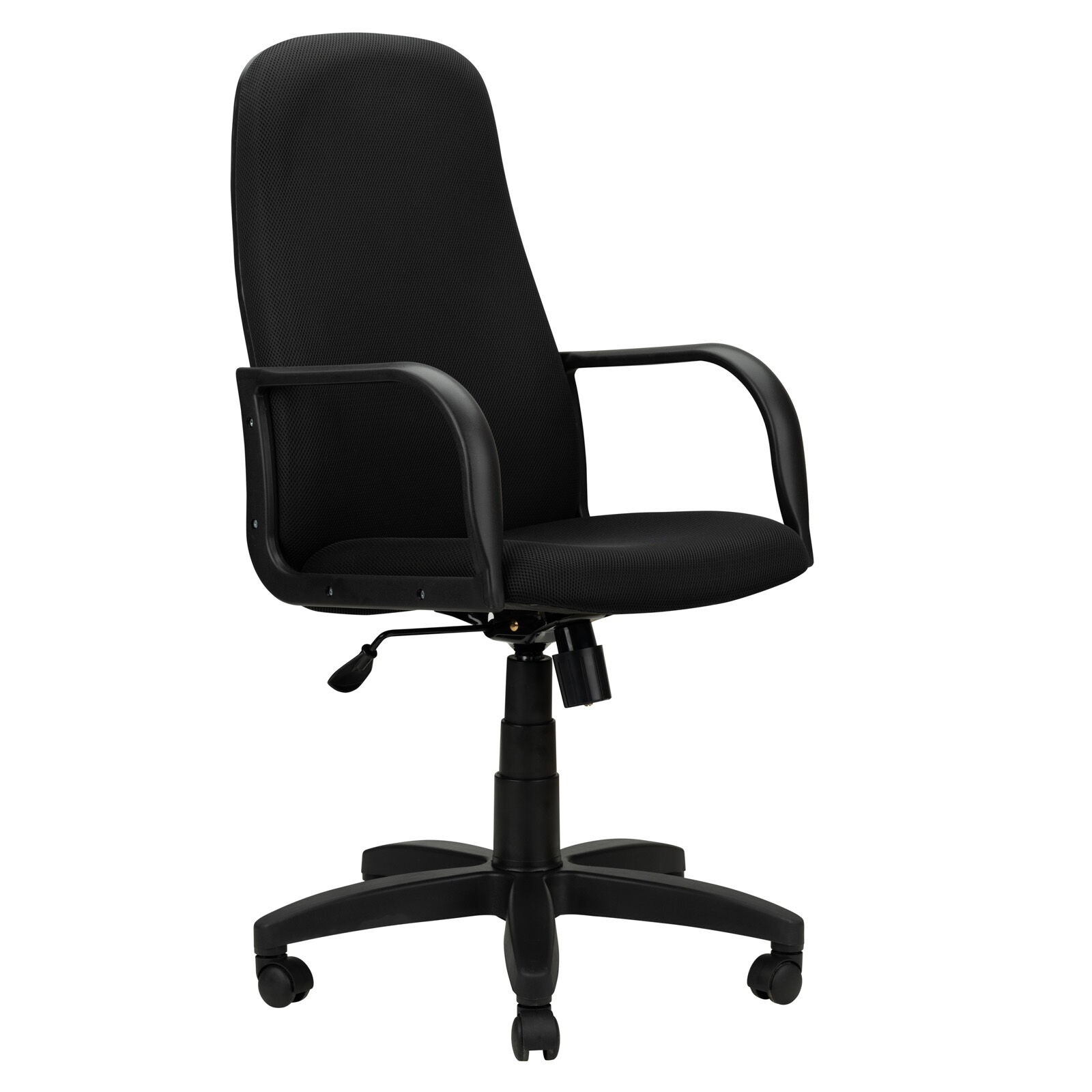 Кресло офисное «Аполло 1П TW черный-ткань». Механизм качания TopGun с фиксацией в рабочем положении и регулировкой по высоте. Цельнолитая крестовина из пластика. Пластиковые подлокотники. Газпатрон 3-й категории стабильности по DIN 4550. Ролики стандарт BIFMA 5.1 (США), диаметр штока 11 мм, материал - нейлон. «Мебель поставляется в разобранном виде».
