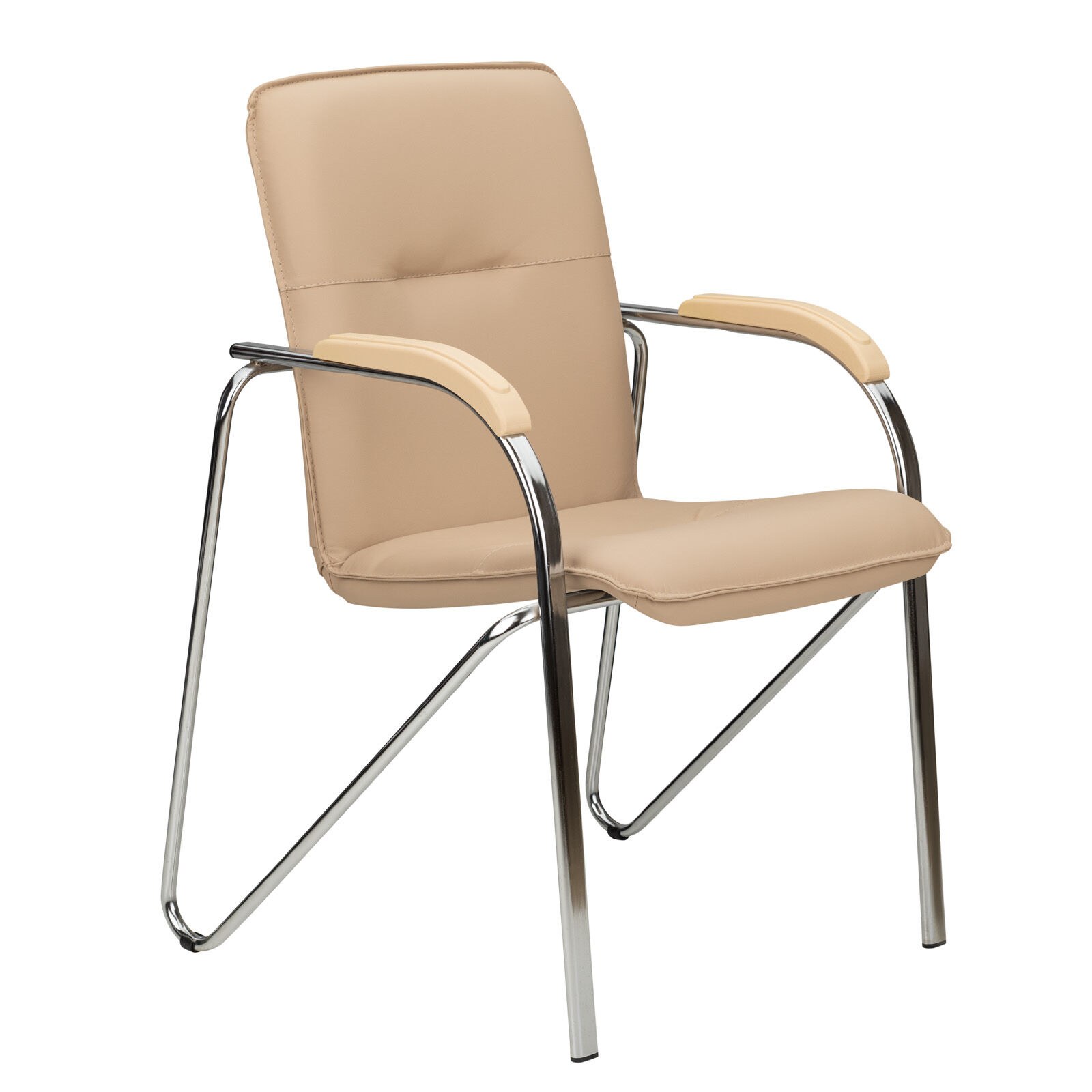 Кресло офисное «Кресло Самба хром пласт. беж-Д557 экокожа бежевый» -эта модель невероятно лаконична, проста и при этом изящна. Здесь нет вычурности, присущей дорогой и громоздкой мебели — ни одной лишней детали. Основой стула является прочный металлический хромированный каркас, который способен выдержать любой вес сидящего и идеально подходит под любые габариты.