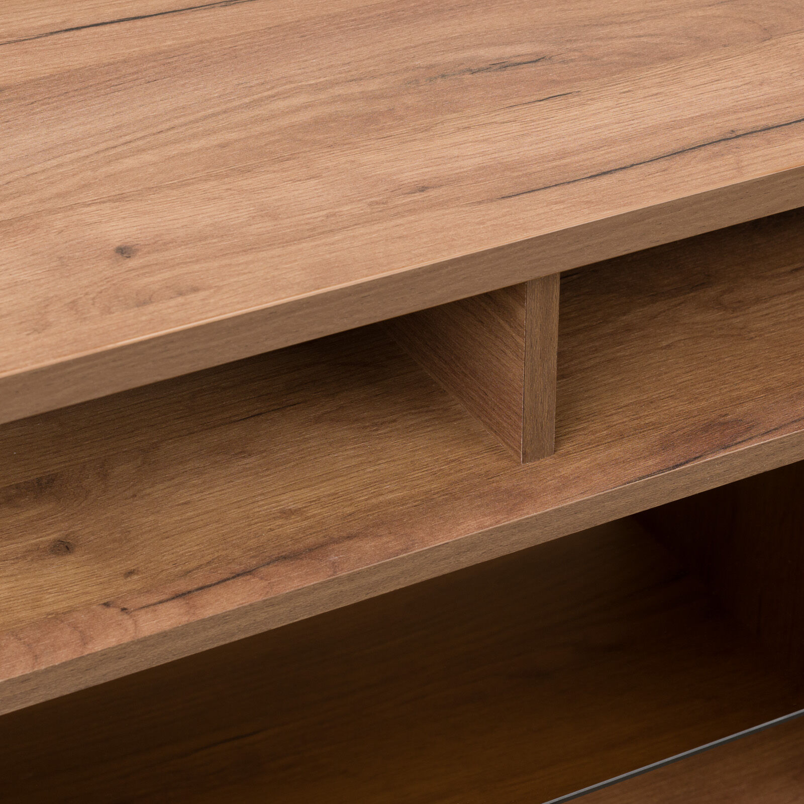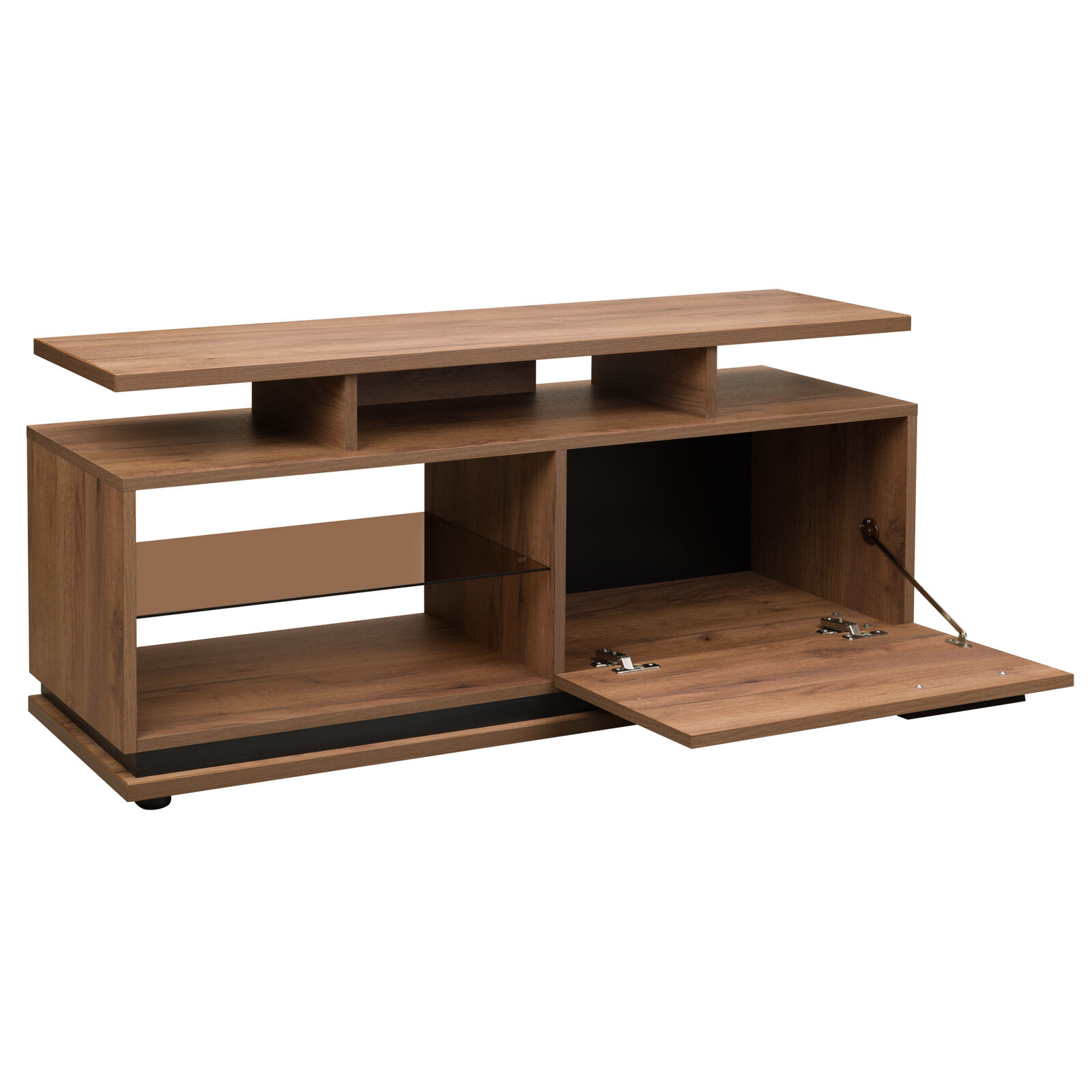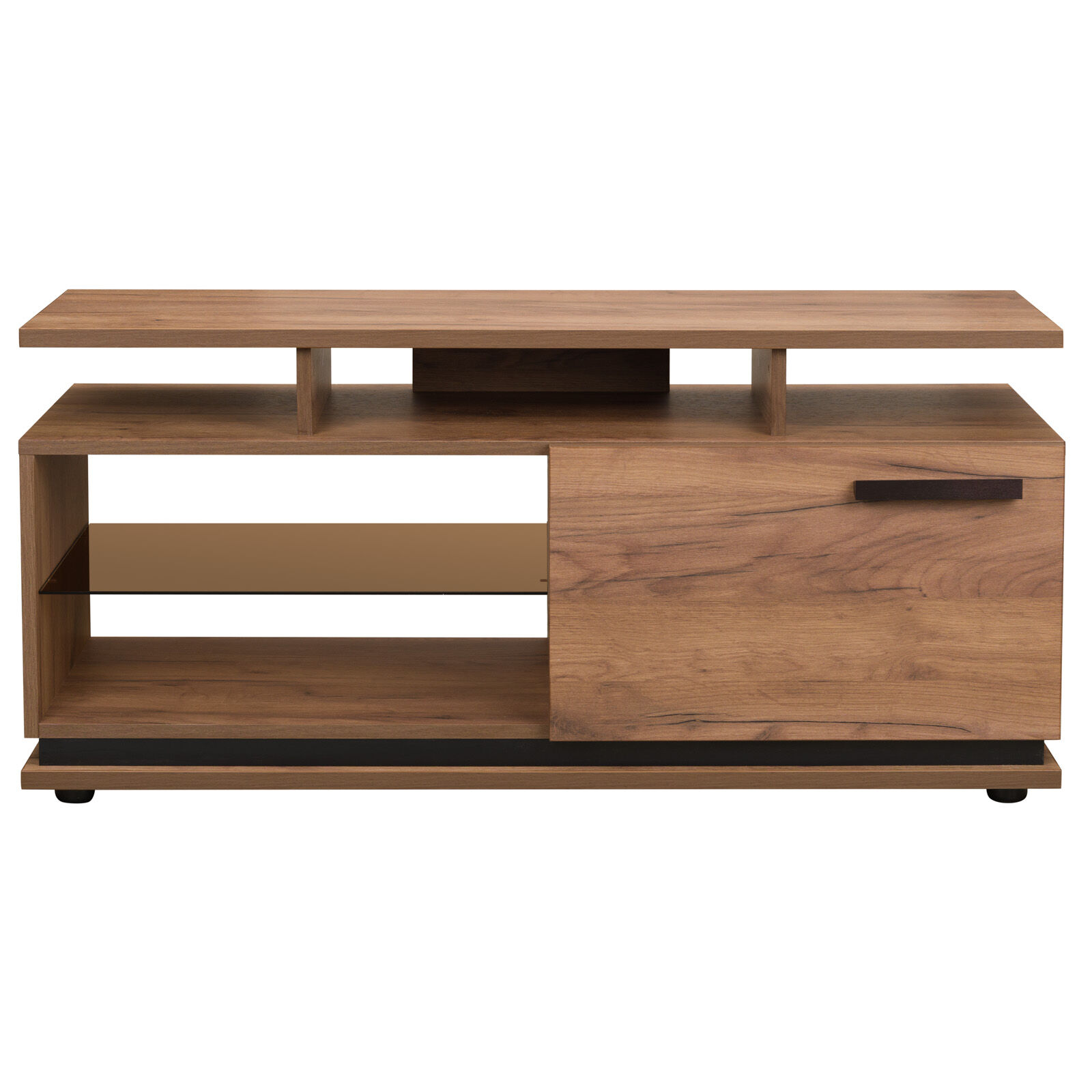 Тумба ТВ малая «Дуб табачный Craft-Черный» сделает комнату просторнее, а стекло в сочетании с древесным декором создаст ощущение простоты. Комбинированный вариант открытых полок со шкафчиком с глухим фасадом отлично подойдет для размещения игровой приставки, дисков и геймпадов. Ширина тумбы позволит без труда разместить телевизор с диагональю до 44''. Регулируемые опоры позволят компенсировать незначительные неровности пола. «Мебель поставляется в разобранном виде».