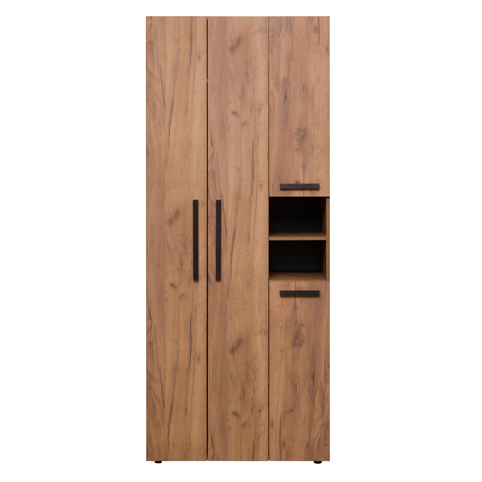 Шкаф «Nature 87 Дуб табачный Craft» для одежды и белья создаст все необходимые условия для хранения в прихожей верхней одежды и аксессуаров. В этом шкафу есть все необходимое для размещения верхней одежды: выдвижная штанга, верхняя полка, ряд регулируемых полок. Большая секция оснащена выдвижной штангой для развешивания пальто и курток на плечиках. Выдвижная штанга выдерживает вес до 10 кг. «Мебель поставляется в разобранном виде».