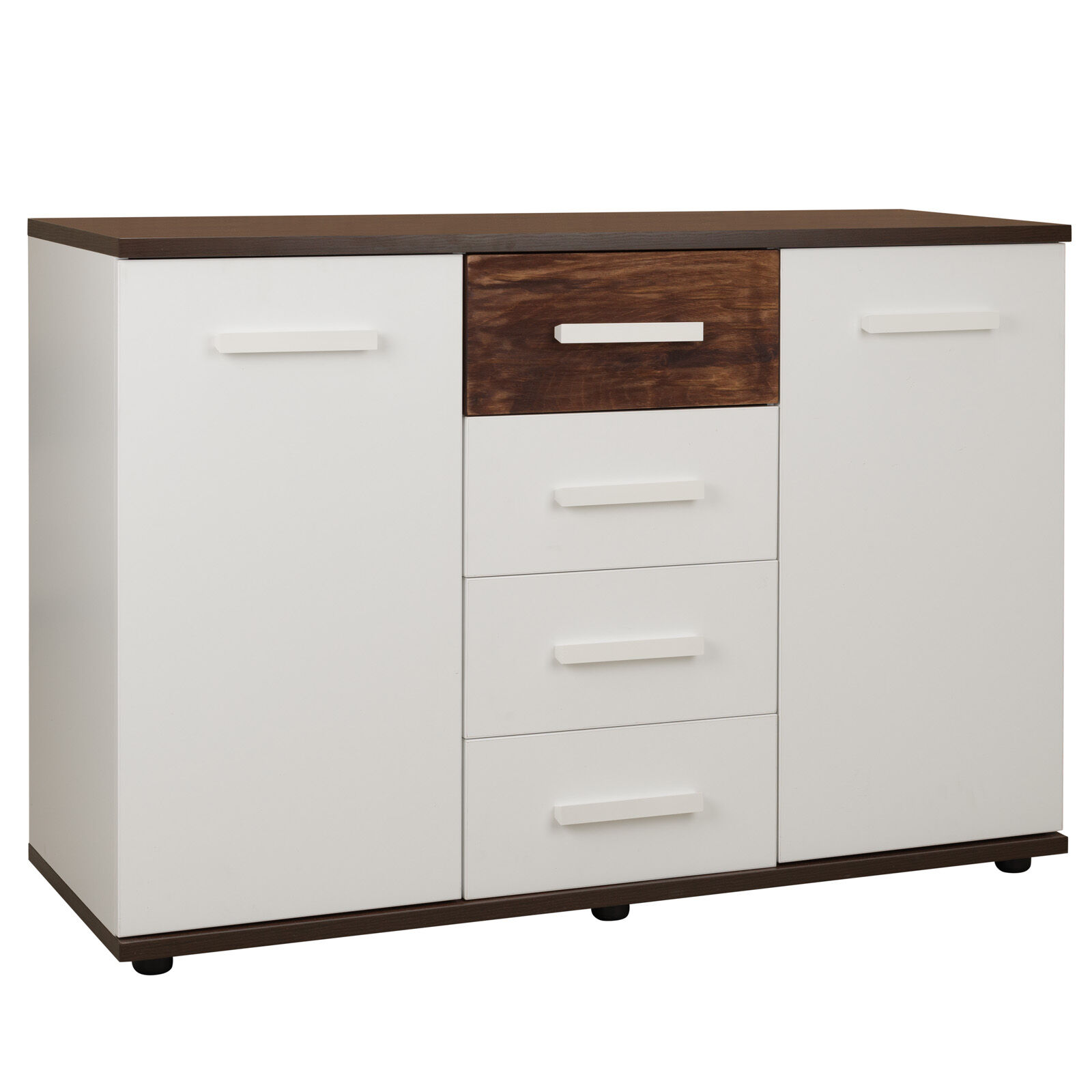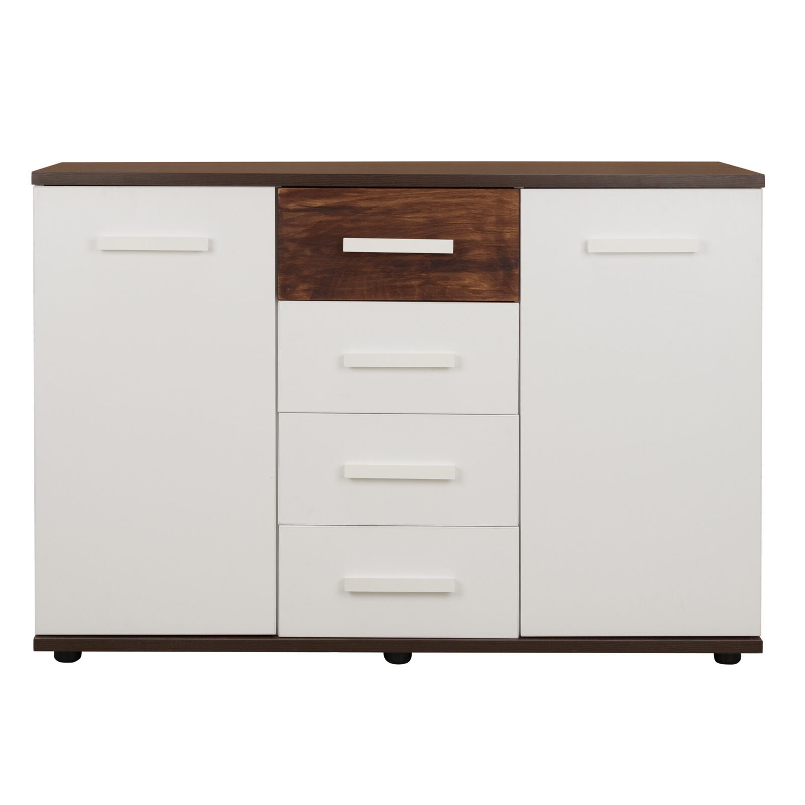 Стильная Норвуд 5 Тумба МЦН отвечает требованиям скандинавского стиля. Яркие акценты тумбы - контрастные горизонтальные детали толщиной 22 мм в декоре Орех Шоколадный и фасад верхнего ящика из дерева с брашировкой. Четыре выдвижных ящика на шариковых направляющих, две распашные дверцы по бокам легко и удобно открываются за светлые ручки из массива. Регулируемые опоры компенсируют неровности пола. «Мебель постпвляется в разобранном виде».