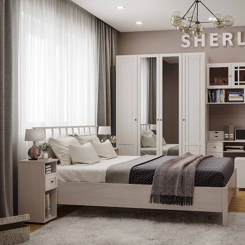 Вместительный четырехдверный Шкаф «Sherlock 60 Ясень Анкор светлый» для одежды и белья с зеркалами во весь рост – уже зарекомендовал себя как отличный, продуманный по внутреннему наполнению и функционалу модуль. Глухие фасады шкафа декорированы раскладкой, центральные зеркальные рамочные фасады без раскладки. Боковые отсеки комплектуются 4 полочками, которые легко закрепить на нужной высоте. Две стационарные штанги в центральной части шкафа также можно перевешивать: для двух штанг предусмотрены три варианта присадки. Это поможет рассортировать длинную и короткую одежду на плечиках. «Мебель поставляется в разобранном виде».