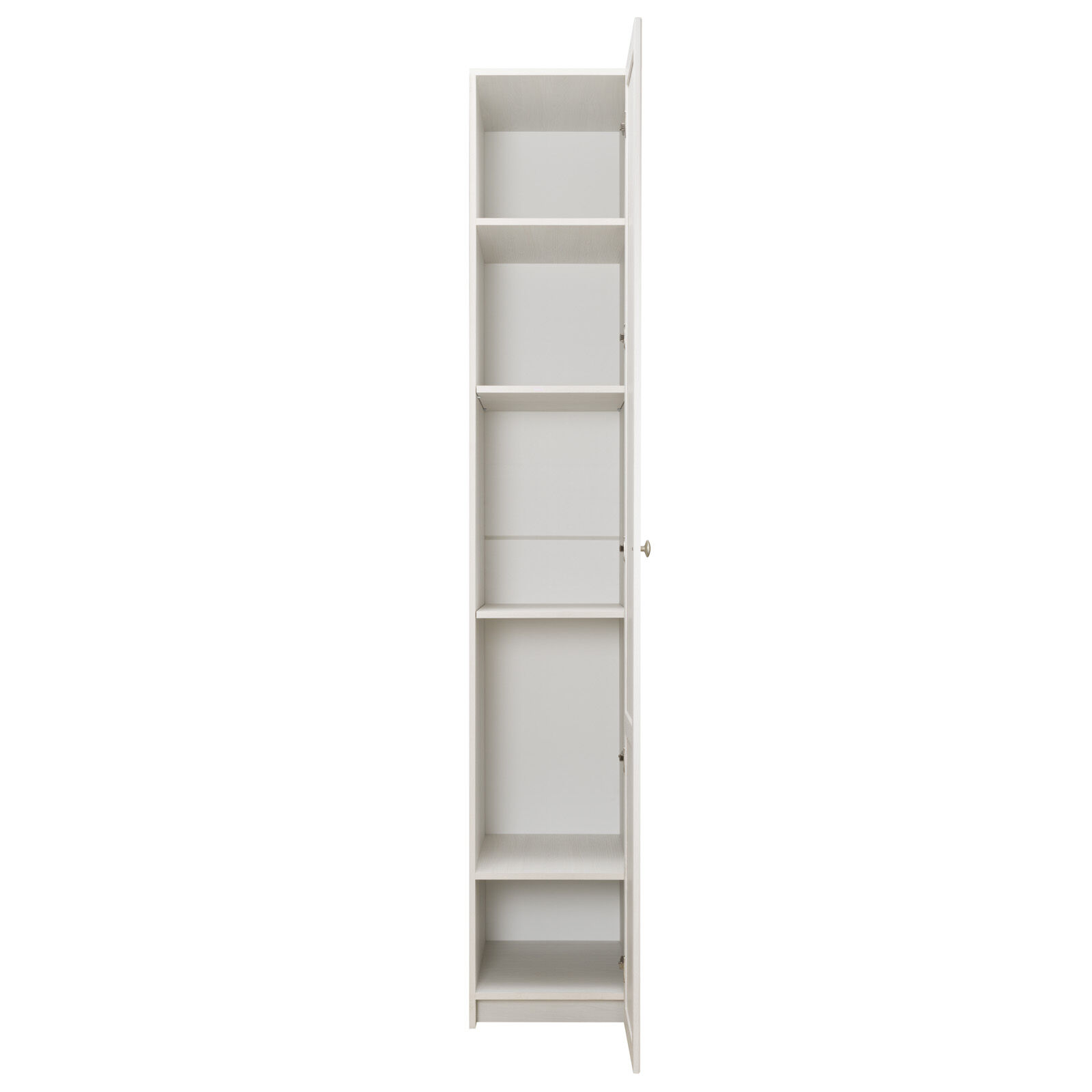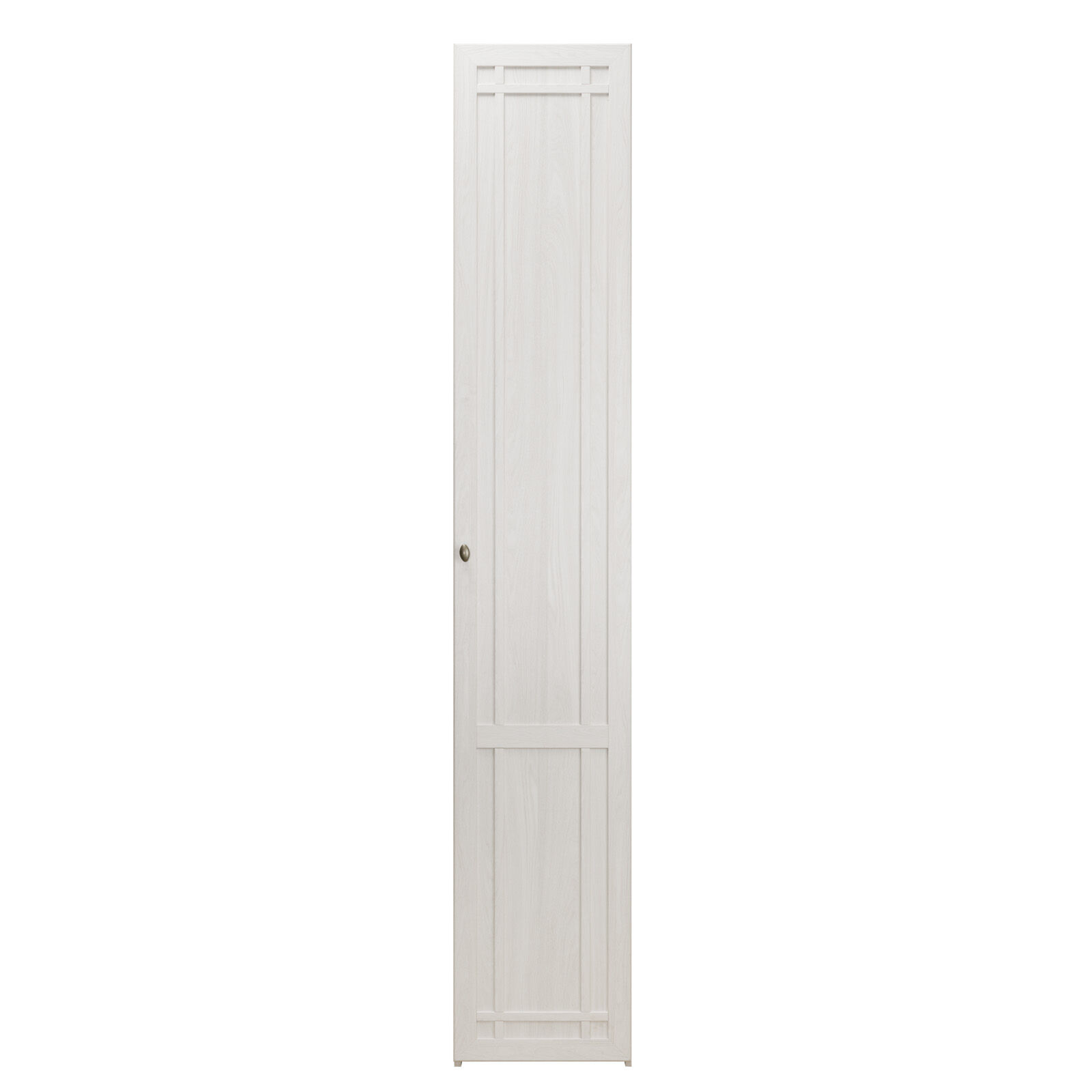 Шкаф-пенал для белья в коллекции Sherlock для спальни высотой 2300 мм. Декоративная раскладка на фасаде не позволяет собрать шкаф с открыванием на левую сторону (петли слева). Шкаф комплектуется 4 полками, которые регулируются по высоте. «Мебель поставляется в разобранном виде».