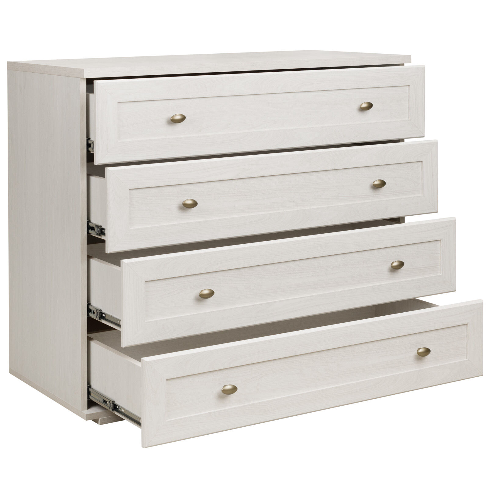 Высокий комод «Sherlock 65 Ясень Анкор светлый» в спальню с четырьмя ящиками на шариковых направляющих позволит рационально использовать площадь комнаты. «Мебель поставляется в разобранном виде».
