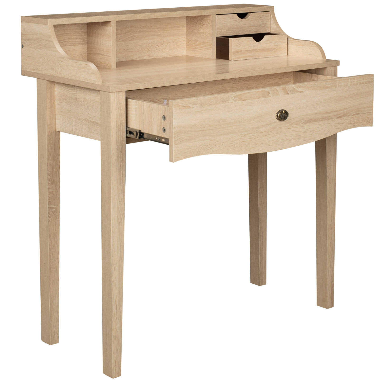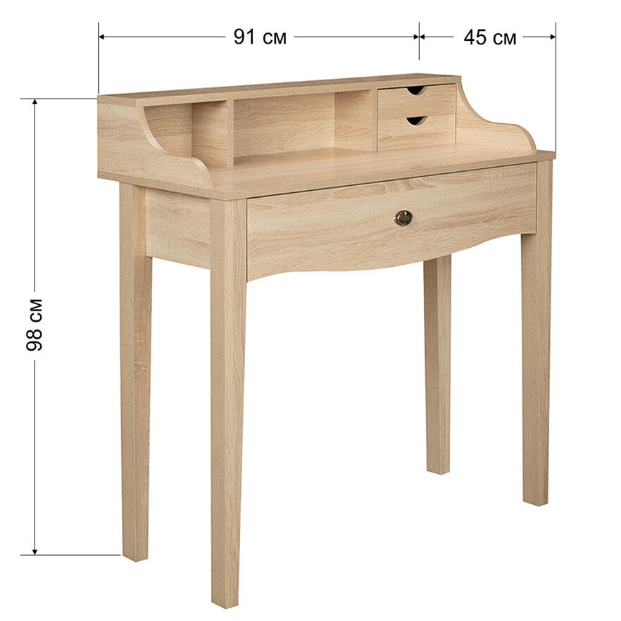 Изящный стол туалетный с широким выдвижным ящиком глубиной 120 мм, двумя маленькими ящичками и надстройкой позволит разместить все необходимое: косметику, средства для укладки, бижутерию и аксессуары.