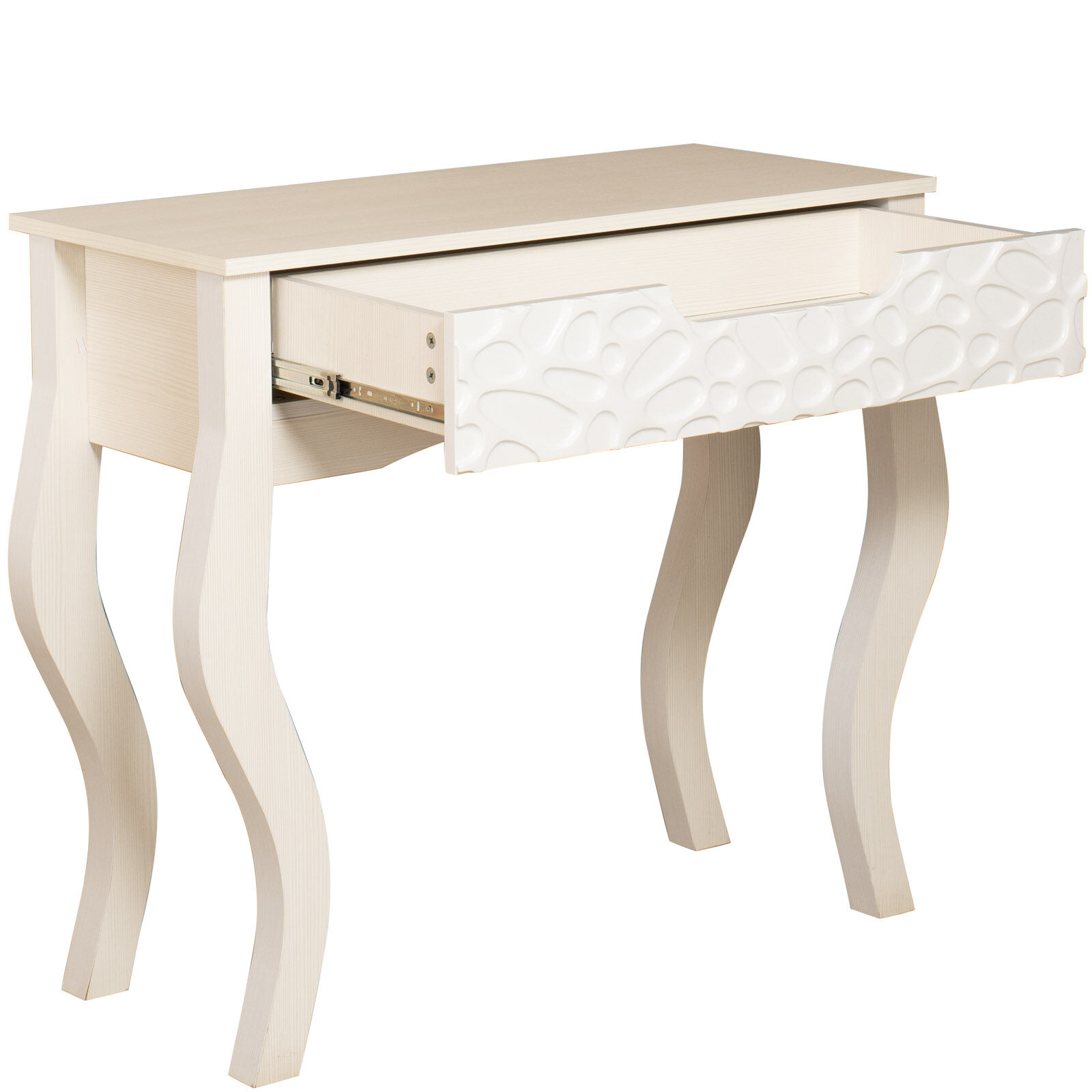 Стол туалетный - «Wyspaa 32» на изогнутых ножках с 3D фасадом из белого глянца - дополнит атмосферу роскоши и гламура спальни. «Мебель поставляется в разобранном виде».