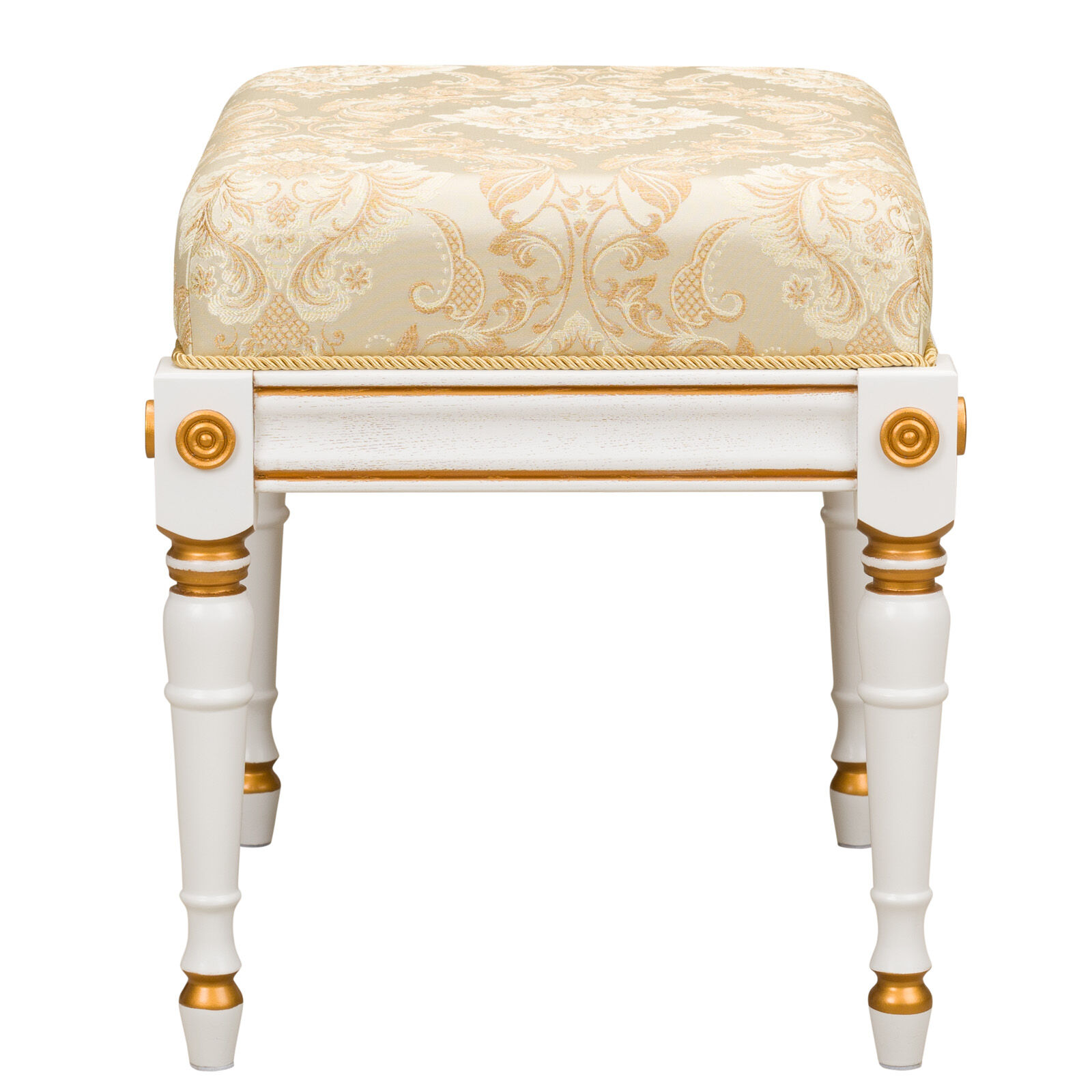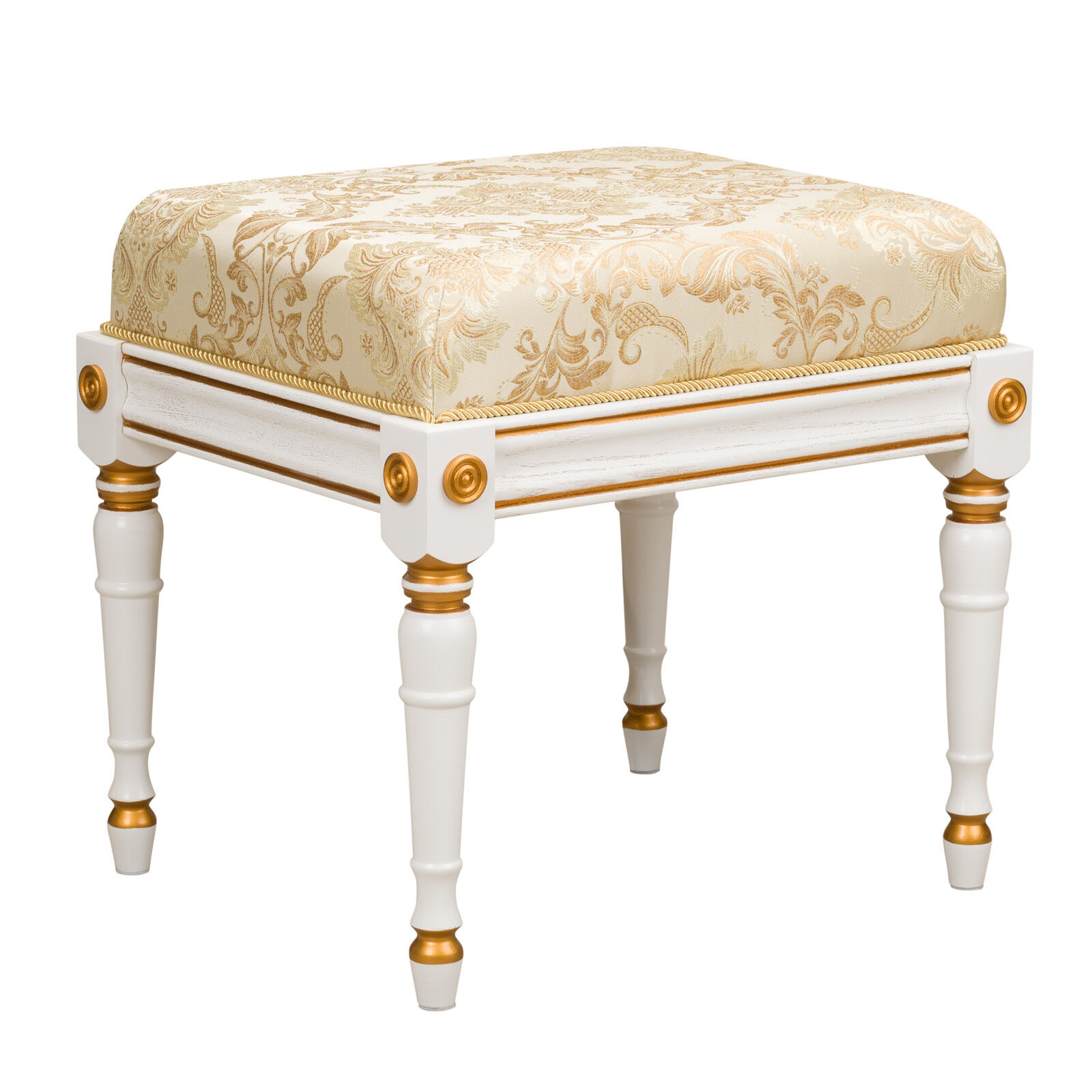 Банкетка Лаура украшенная золотой платиной сочетает белоснежный и золотой цвет. Модель станет не просто функциональным дополнением, но и украшением пространства. «Мебель поставляется а разобранном виде»..