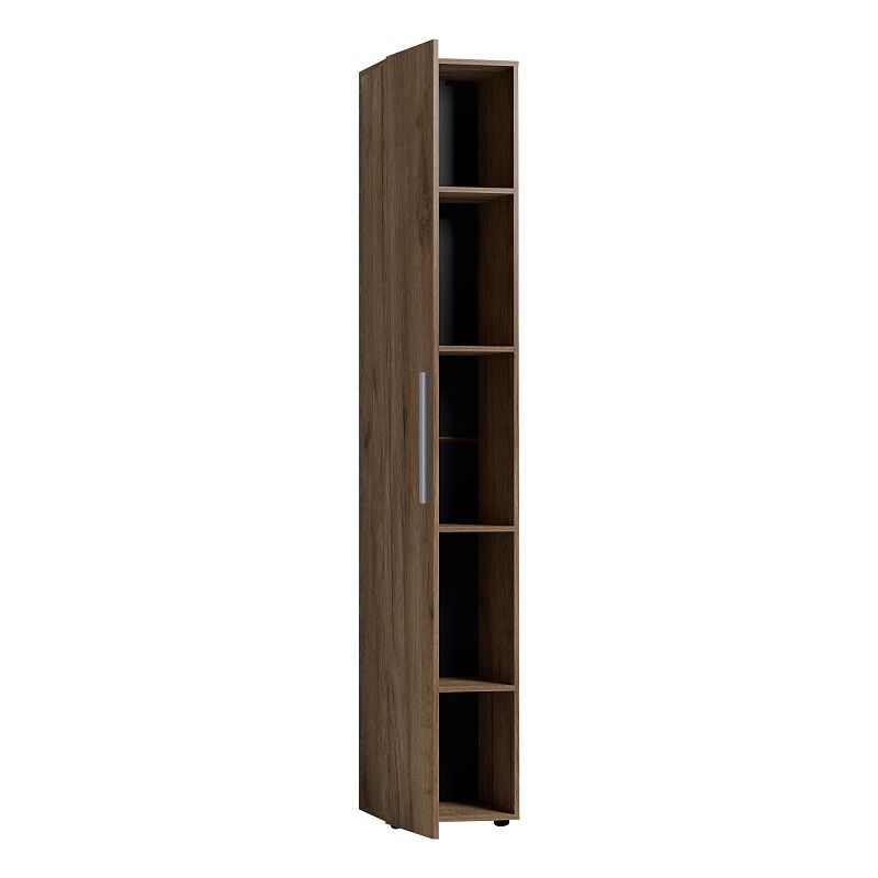 Шкаф для белья «Nature 83 Дуб табачный Craft» поможет подростку рассортировать и держать в порядке свои вещи. Узкий и высокий шкаф-пенал с четырьмя полками, регулируемыми по высоте. Глухой фасад в декоре Дуб Табачный с ручкой из массива цвета серый металлик . Шкаф собирается как на левую, так и на правую сторону. «Мебель поставляется в разобранном виде».