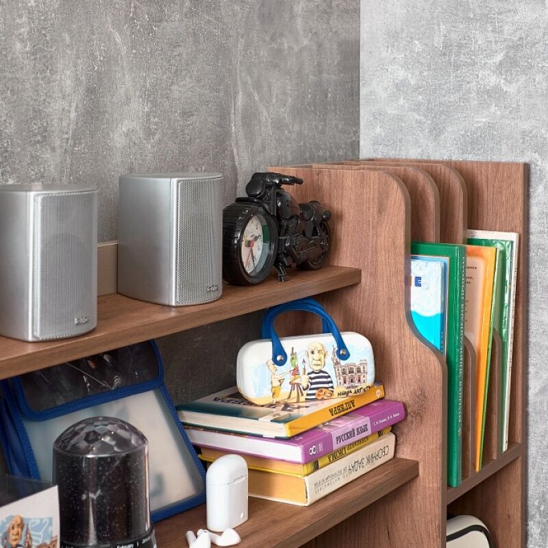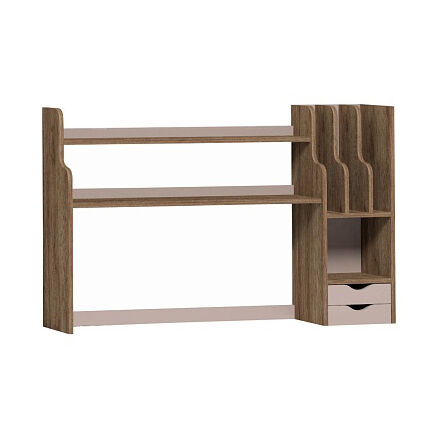 Два небольших ящичка, открытые полки и ниши стеллажа-надстройки к модулю Nature 84 Cтол письменный помогут организовать рабочее место так, чтобы все было под рукой. Надстройка с фигурными закругленными краями может собираться на правую и левую сторону из одного комплекта деталей. «Мебель поставляется в разобранном виде».