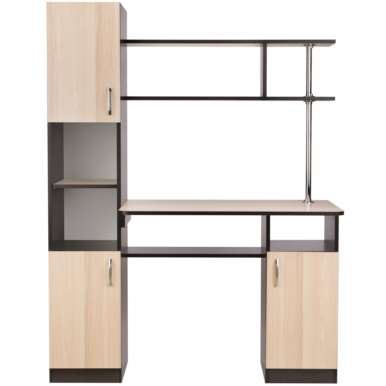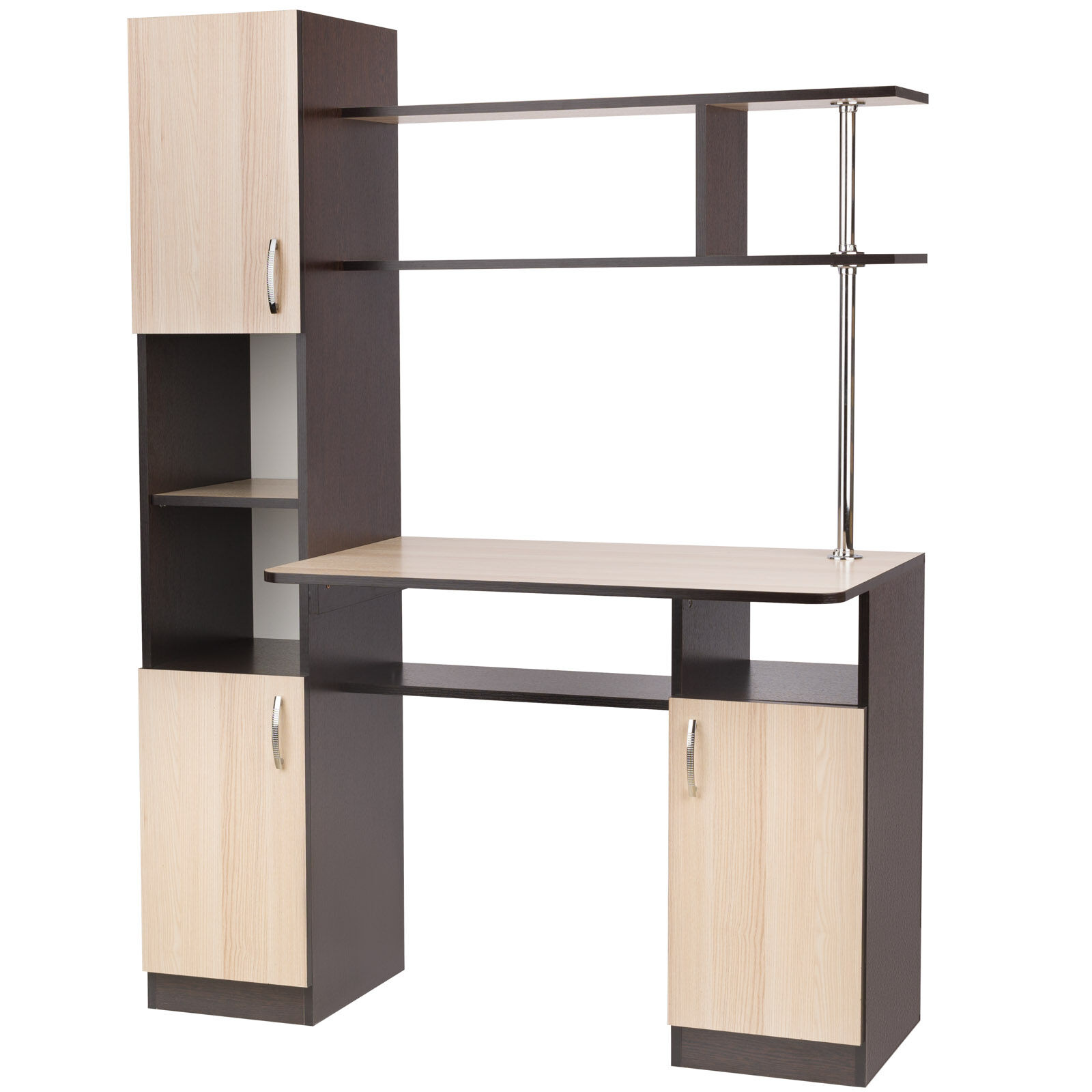 Компьютерный стол СК-7 это целый мини офис. У стола есть удобный вместительный пенал. В правой части за дверцей расположена одна полка. Над столешницей предусмотрена удобная надстройка, при этом она не забирается пространства столешницы. «Мебель поставляется в разобранном виде».
