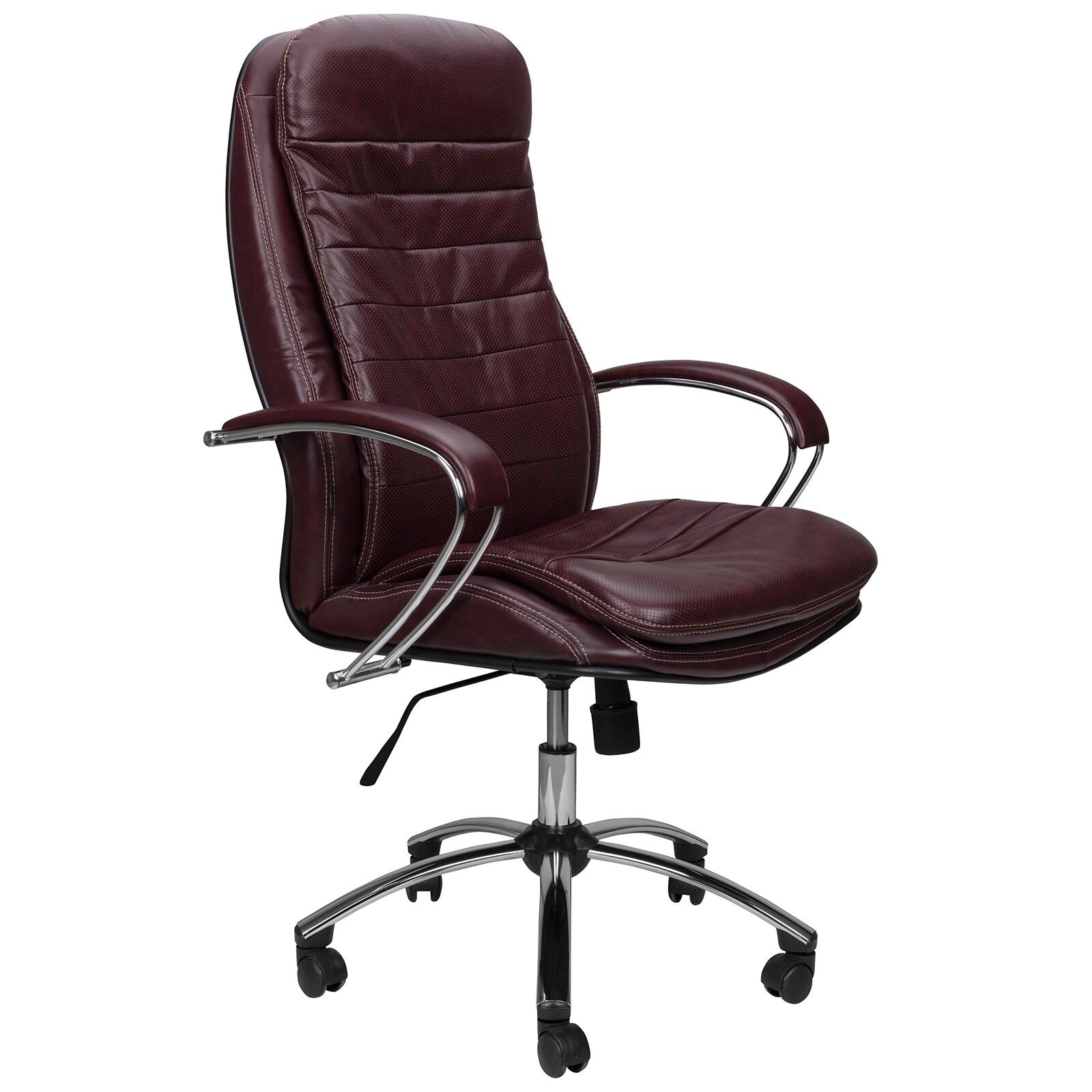 Эргономичное сверхкомфортное кресло LK-3 относится к премиальному классу. Это удобное, комфортное кресло для руководителей с высокой широкой спинкой и классическим дизайном. Преимущества: эргономичная форма спинки и сиденья строго соответствует анатомической форме тела человека; сверхпрочный цельный стальной каркас спинки и сиденья, покрытый износостойким полимерным покрытием черного цвета, гарантия 10 лет на стальной каркас; механизм качания дает возможность отклоняться в кресле, настраивать жесткость качания и фиксировать кресло в рабочем положении; регулировка высоты сиденья; мягкие объемные спинка и сиденье обеспечивают непревзойденный комфорт и ощущение мягкости роскошного кожаного дивана; уникальная форма передней части сиденья исключает сдавливание сосудов ног, сохраняя ощущение легкости в ногах; широкие удобные стальные подлокотники, покрытые зеркальным хромом, с мягкими накладками из износостойкого материала NewLeather (кожа); пятилучье стальное, покрытое зеркальным хромом; материалы обивки спинки и сиденья - износостойкий перфорированный материал NewLeather (кожа). «Мебель поставяется в разобранном виде».