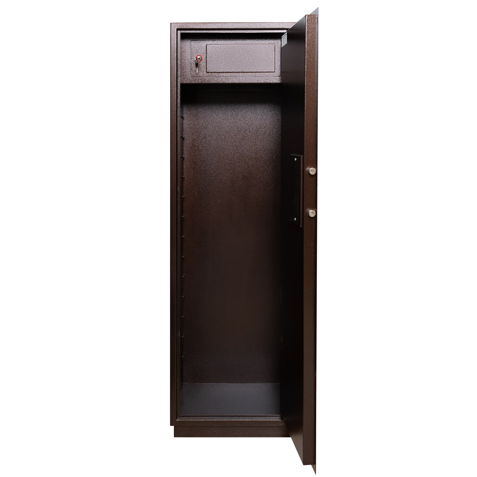 Шкаф бухгалтерский выполнен из стали толщиной 2 мм. Двери изнутри усилены панелью толщиной 1,4 мм.Внутри верхней ячейки есть отсек ограниченного доступа - трейзер. Полки съемные регулируемые по высоте. Двери оборудован сувальдными замками 'САМ' производства России.ШхВхГ 470х1553х397