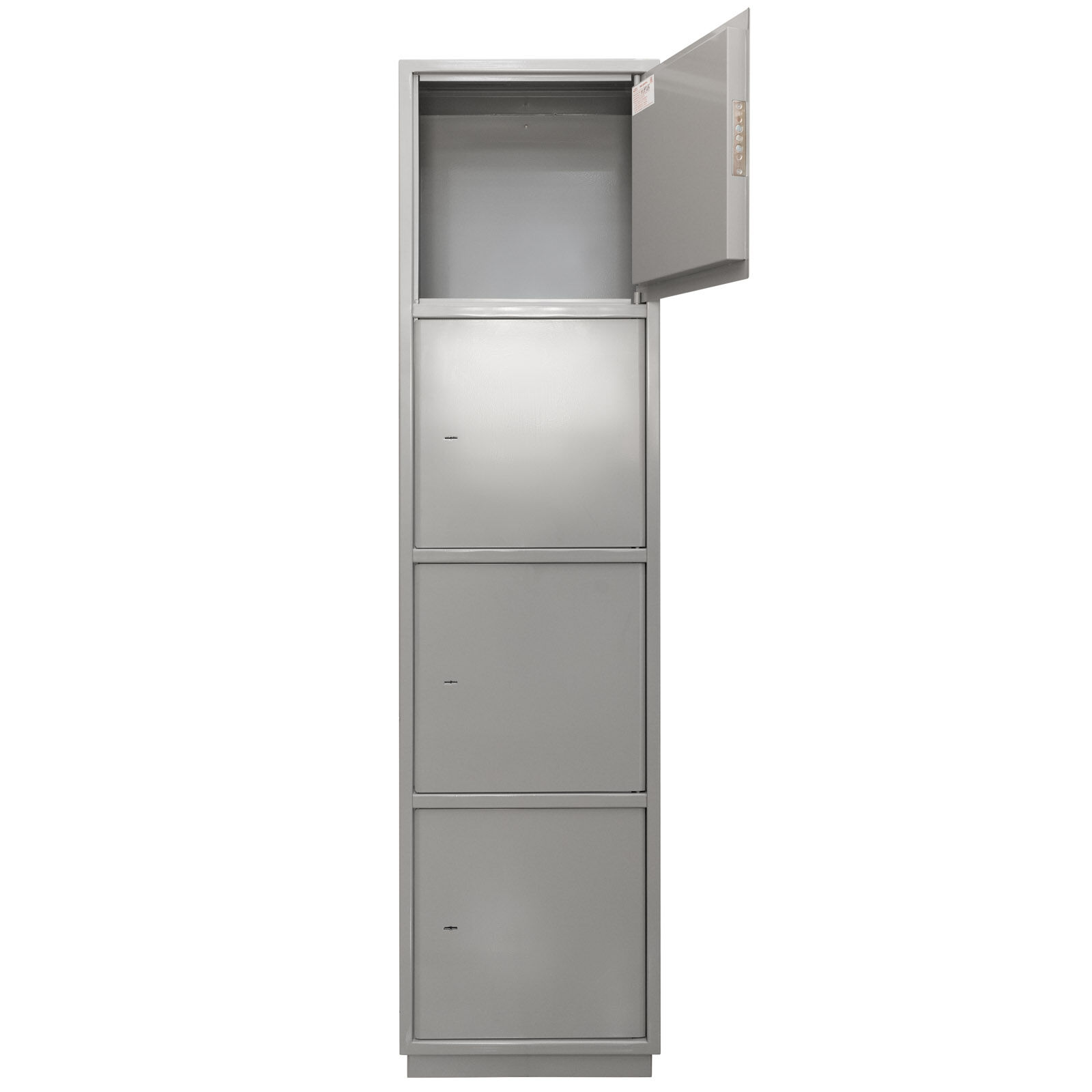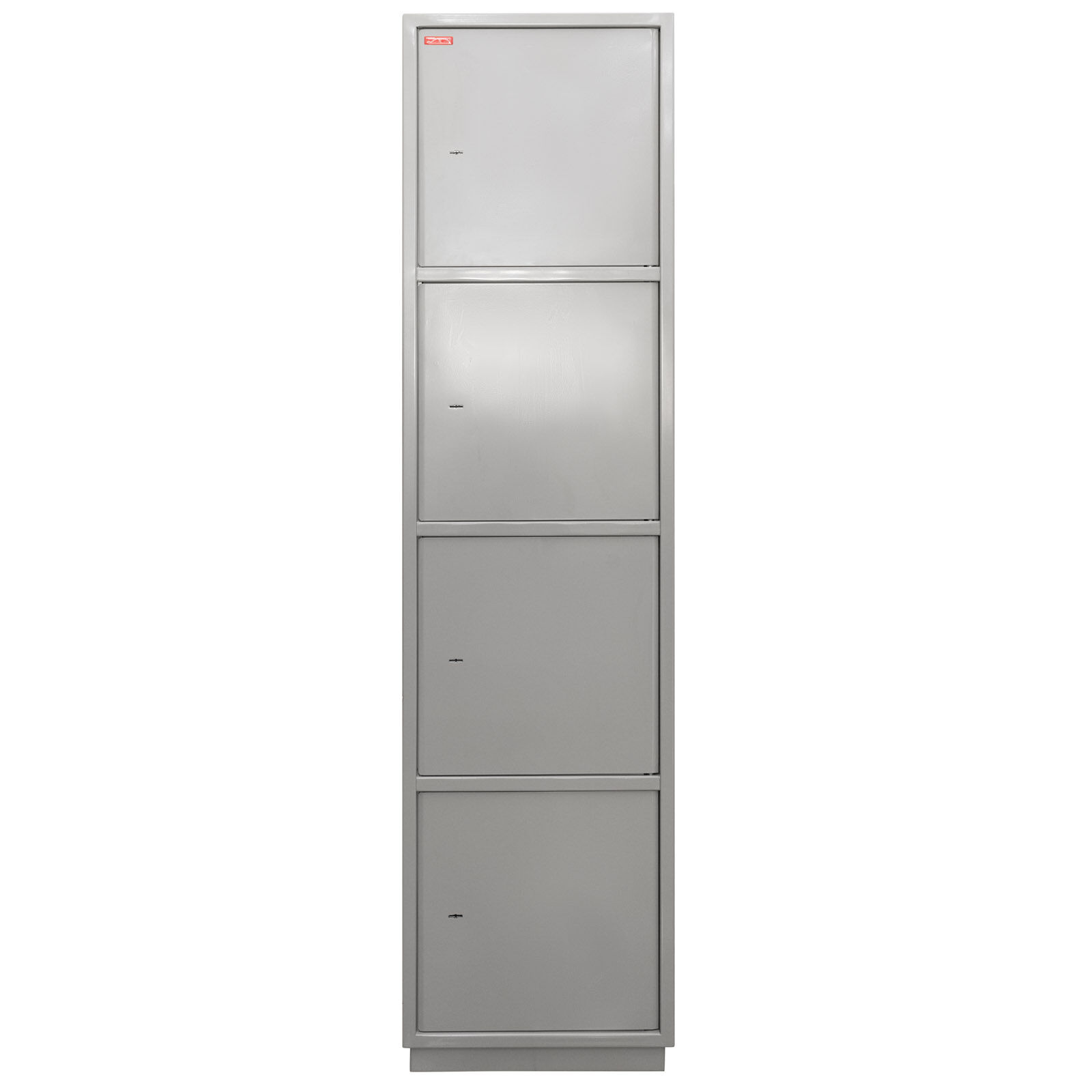 Шкаф металлический «КБ - 06» предназначен для хранения офисной и бухгалтерской документации. Шкаф представляет собой цельносварную металлическую конструкцию прямоугольной формы, соединение элементов которой выполнены методом сварки сплошным швом по контуру прилегания элементов. Горизонтальные перегородки делят шкаф на 4 независимых отделения, запираемых собственной дверью. Корпус и двери шкафа изготовлены из стального листа толщиной 1,5 мм. Двери изнутри усилены панелью коробчатого сечения из стального листа толщиной 0,8 мм. В дверях шкафа «КБС-06» – врезной сувальдный замок. Шкаф имеет подиум (подставку) высотой 47 мм для возможности размещения его вплотную к стене. Петли шкафа – внутренние. Окраска изделия – полимерное порошковое покрытие.