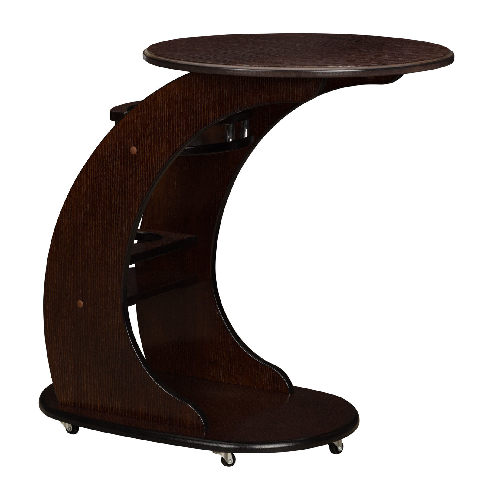 Мобильный — стол «Leset Люкс Орех» оснащён микро-колёсиками и может подъехать под любую кровать или диван. С полками и подставкой для бутылок — всё что нужно, всегда под рукой! Многофункциональный — используйте его как журнальный, консольный, столик для ноутбука, прикроватный либо придиванный. «Мебель поставляется в разобранном виде».