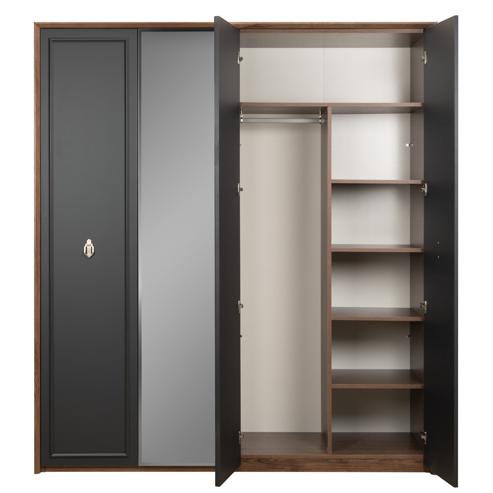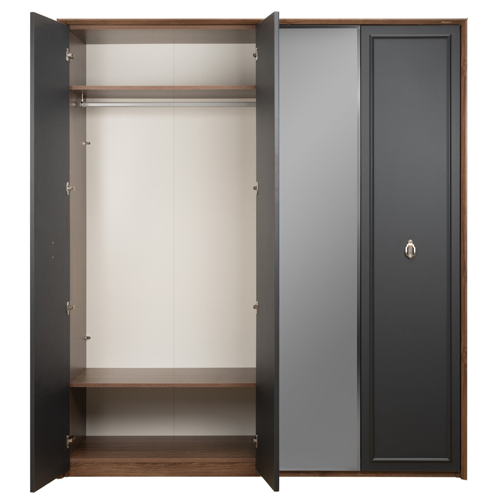 Четырехдверный шкаф для одежды с зеркалом «Алегро» – это одно из лучших предложений для просторной спальни или гардеробной. Изысканный стиль коллекции Алегро с использованием темных оттенков благородного дуба и темного фасада никого не оставит равнодушным. Два зеркала располагаются по центру шкафа, они невероятно удобны и крайне практичны. «Мебель поставляется в разобранном виде».