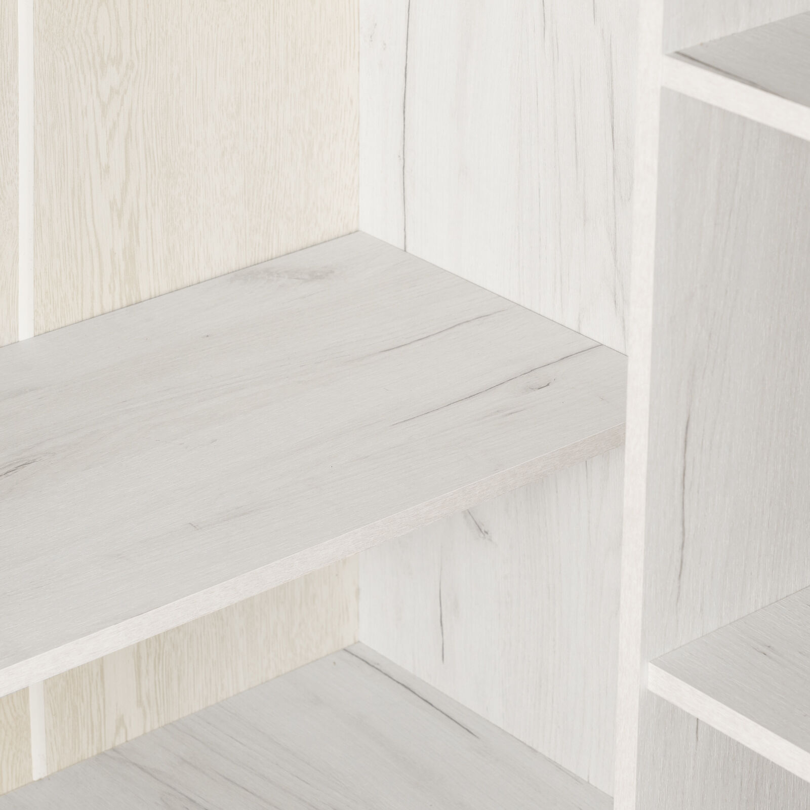 Шкаф угловой Дуб белый Крафт-Ателье темное - является элементом сквозной модульный системы «Прага». При создании шкафа был соблюден основной принцип стиля – сочетание простых форм со спокойными, фактурными оттенками. «Мебель поставляется в разобранном виде».