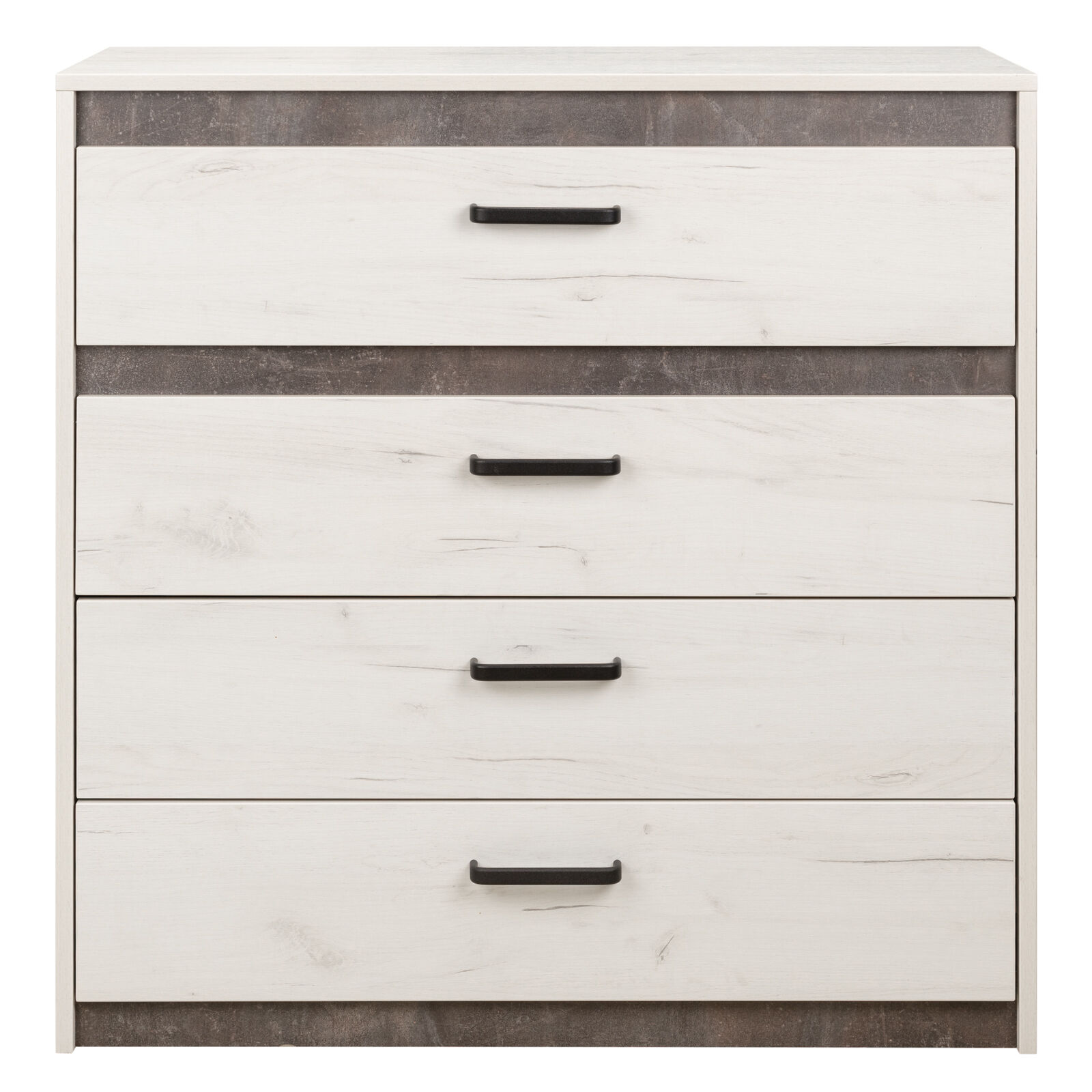 Прага Комод Дуб белый Крафт-Ателье темное. Благодаря современному дизайну, комод отлично дополнит интерьер Вашей спальни и позволит максимально эффективно использовать пространство помещения. При создании коллекции «Прага», был соблюден основной принцип стиля – сочетание простых форм со спокойными, фактурными оттенками. «Мебель поставляется в разобранном виде».