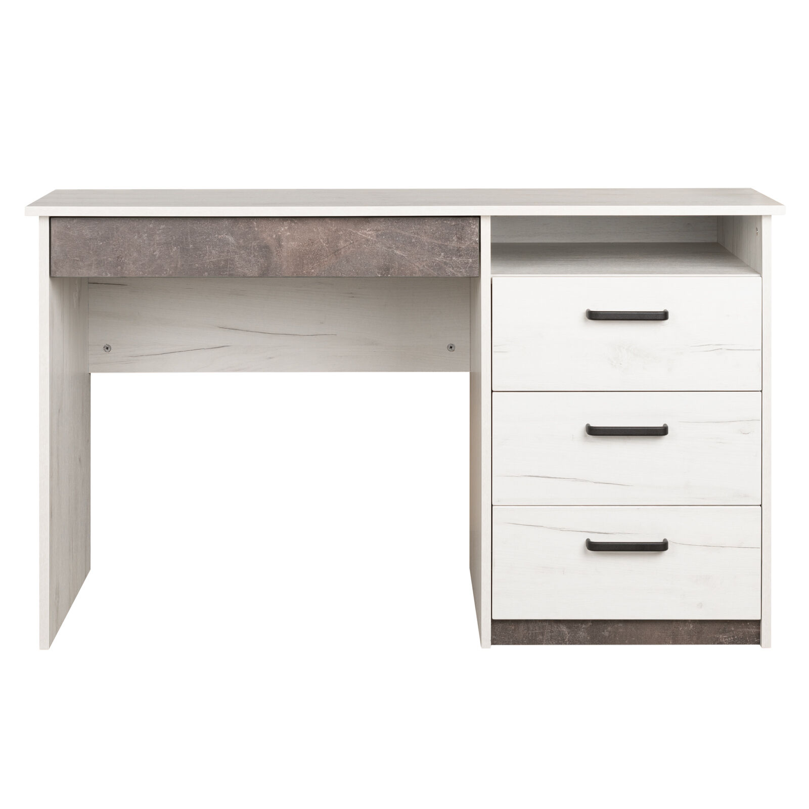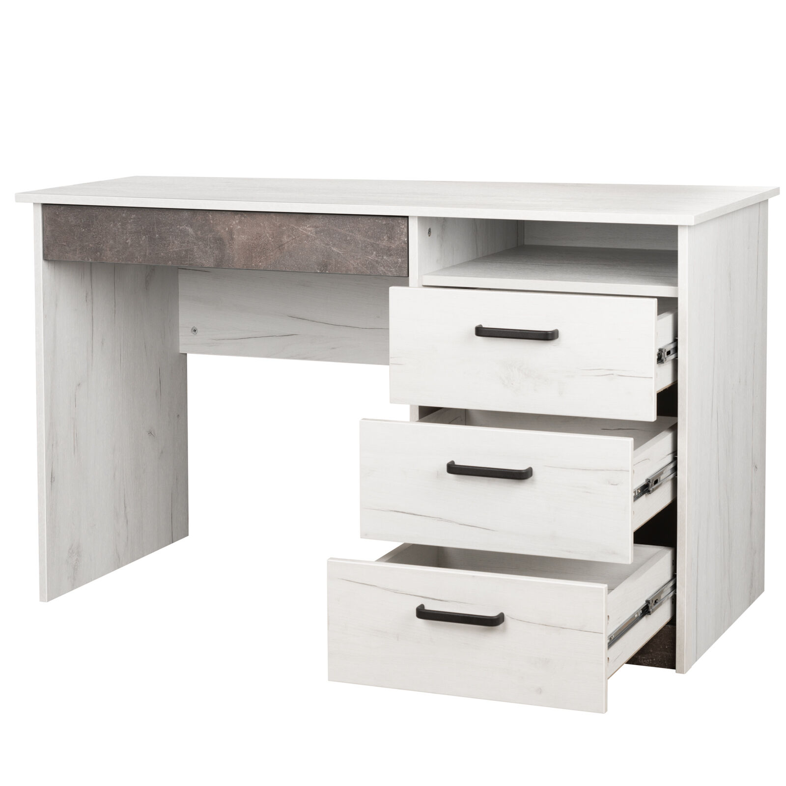 Прага Стол с надставкой Дуб белый Крафт - Ателье темное - эта модель выполнена в современном стиле. Отличительная черта данного стола – функциональность. В него входит большое количество ящиков разных размеров, открытые и закрытые полки, которые позволяют разместить тетради, учебники, канцелярию и другие необходимые предметы. «Мебель поставляется в разобранном виде».