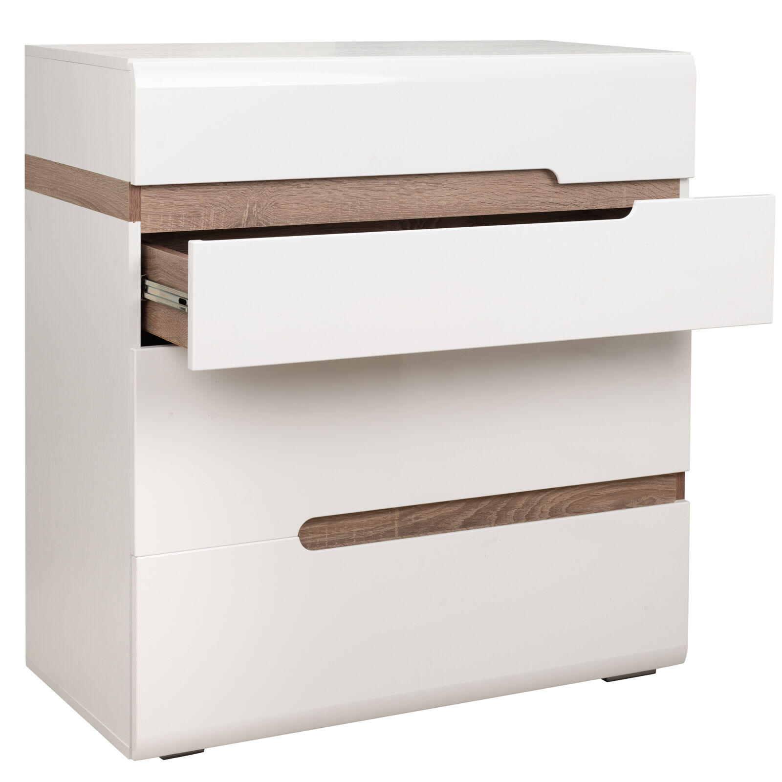 Ультра Комод Белый глянец. Благодаря современному дизайну, комод отлично дополнит интерьер Вашей спальни и позволит максимально эффективно использовать пространство помещения. «Мебель поставляется в разобранном виде».