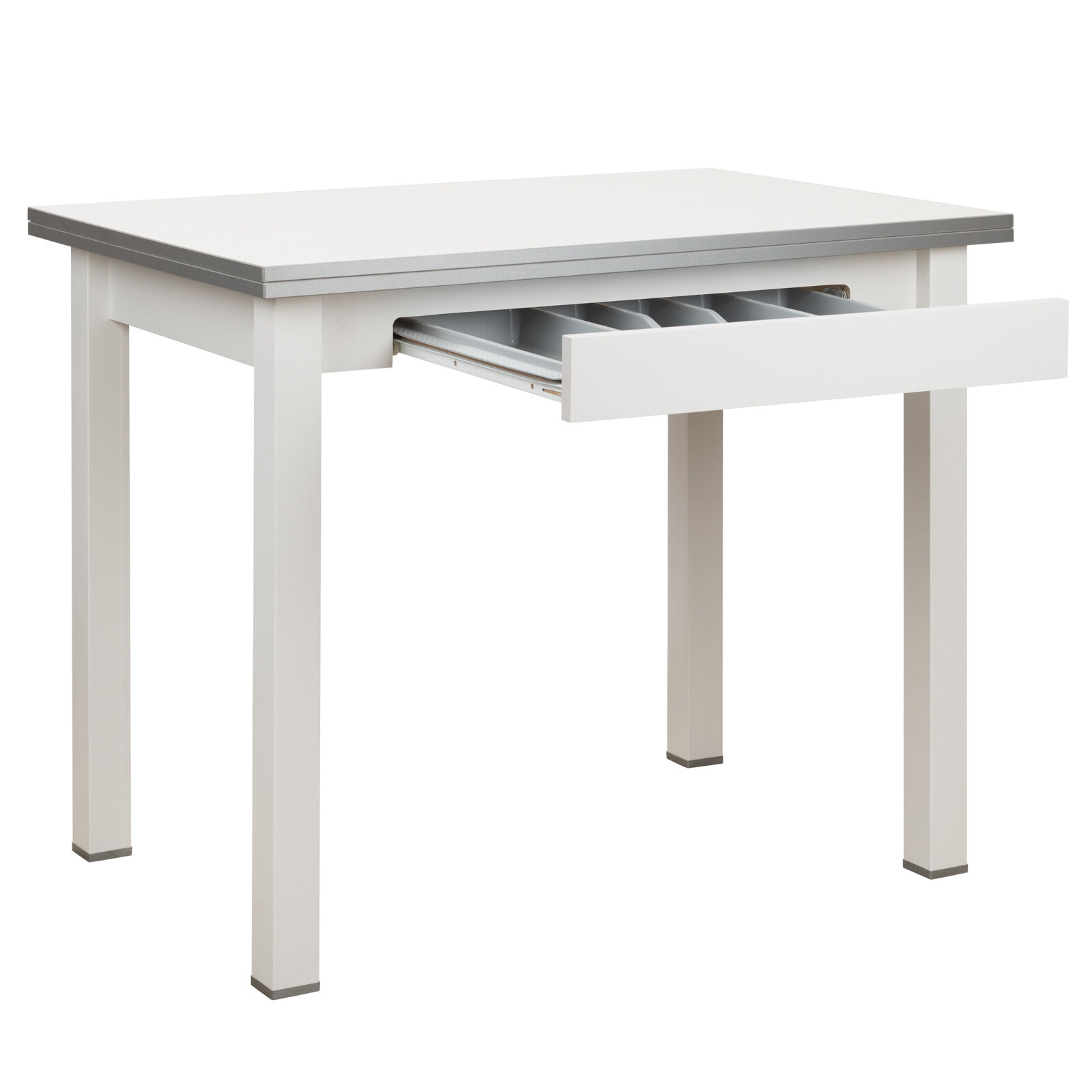 Стол обеденный раскладной Боровичи с ящиком (прямая ножка) 60*90 металл, авола белая