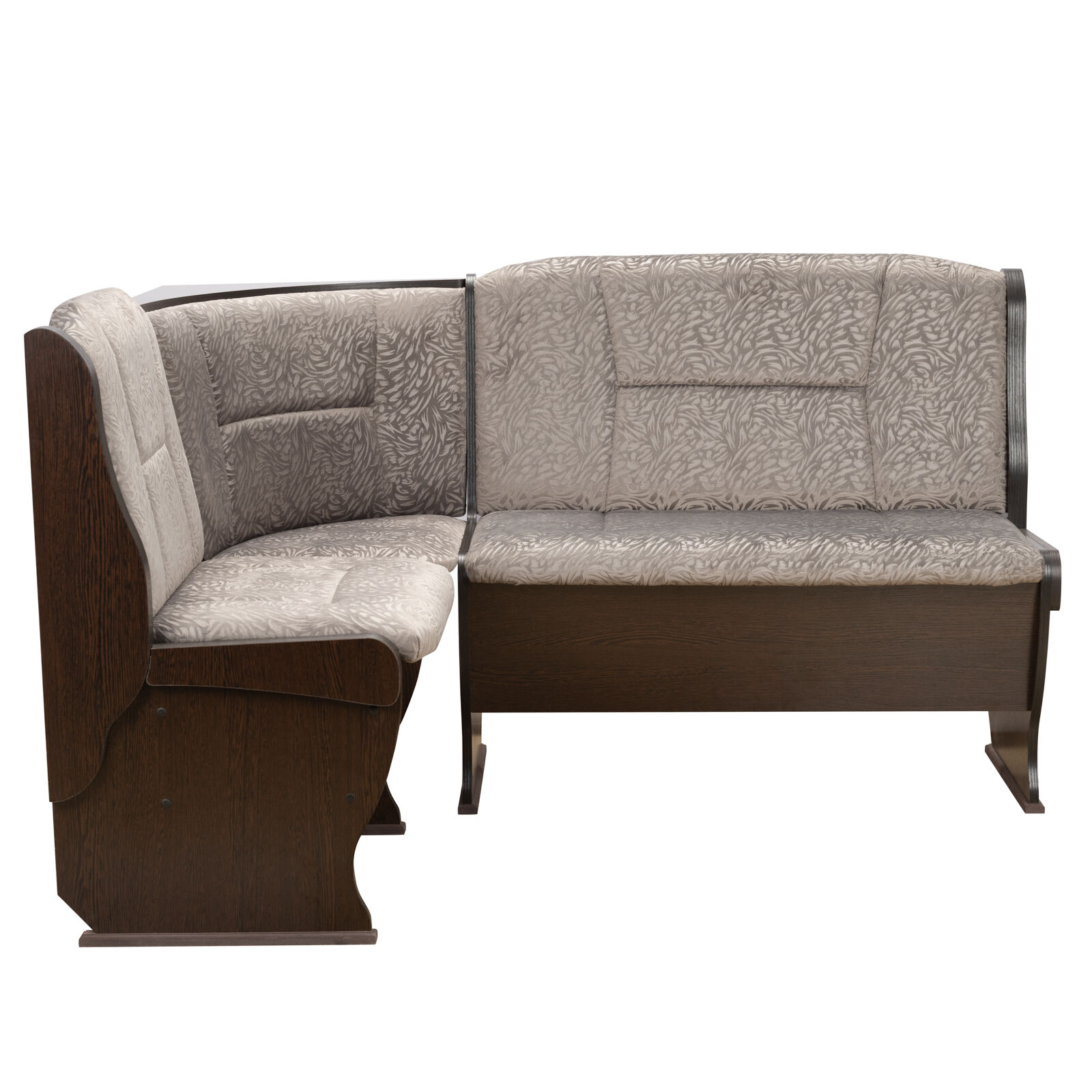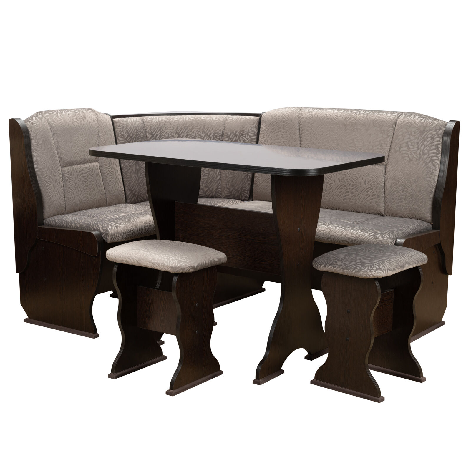 Стильный и современный кухонный уголок «Орхидея Венге-Флок графит» состоит из углового дивана с двумя ящиками, обеденного стола и двух кухонных табуретов. Диван легко вмещает три или четыре человека, а дополнительными местами у обеденного стола станут удобные табуреты с мягкой обивкой. Для надежности и практичности использования столешница покрыта термостойким пластиком. Функциональный набор станет отличным выбором для обустройства кухни. Угловой диван можно собрать как на правую, так и на левую сторону. «Мебель поставляется в разобранном виде».