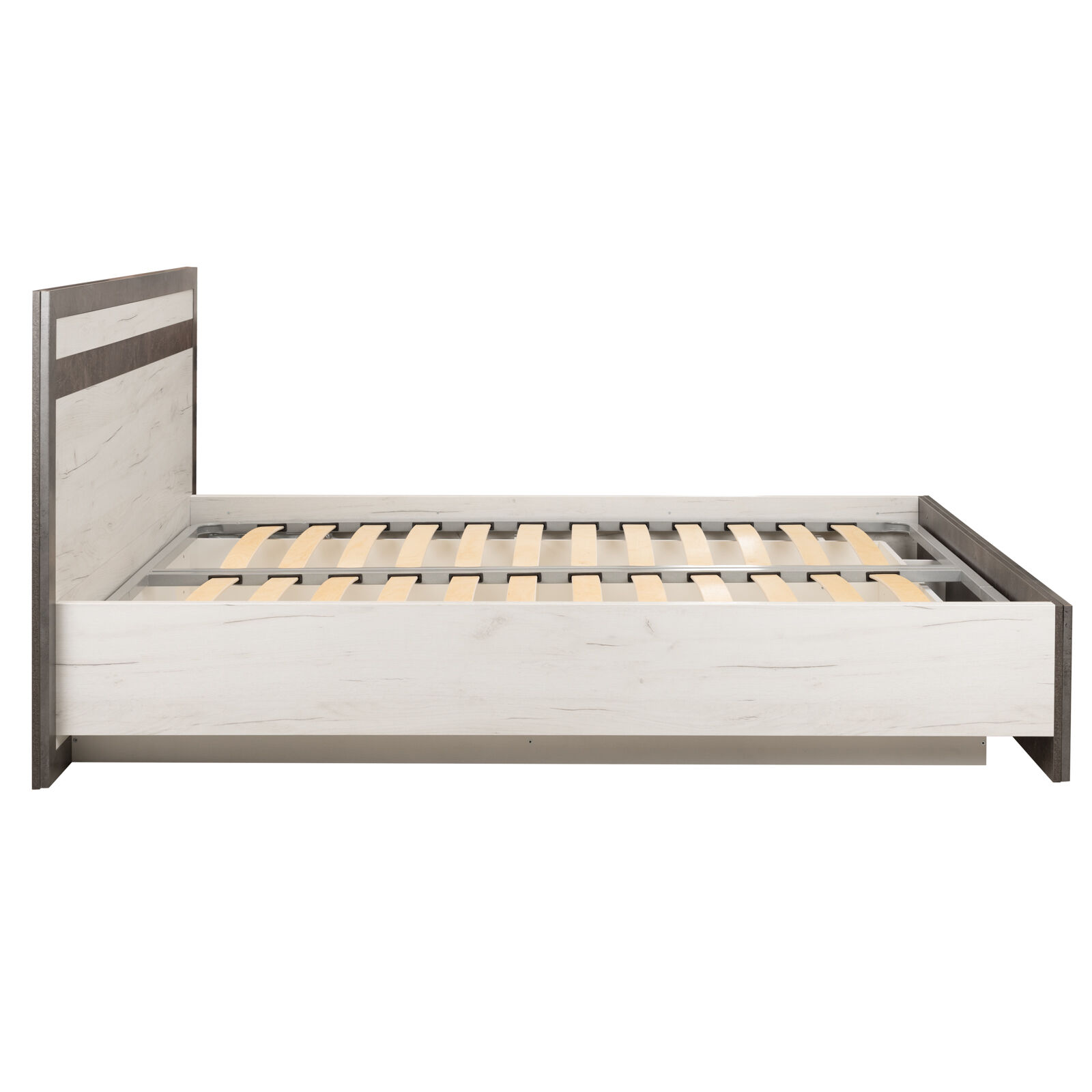 Кровать «Прага 140 с ортопедическим основанием Дуб белый Крафт-Ателье темное» станет стильным дополнением для вашей спальни. Спокойный и расслабляющий декор кровати - поможет создать атмосферу настоящего уюта и комфорта в комнате. «Матрас в комплект не входит». «Мебель поставляется в разобранном виде».
