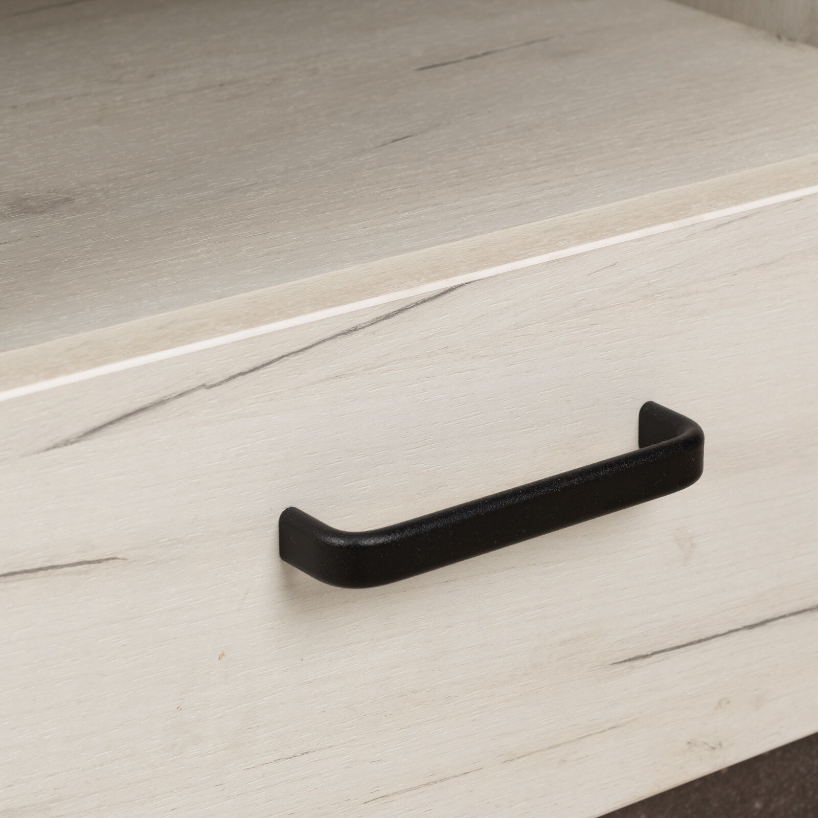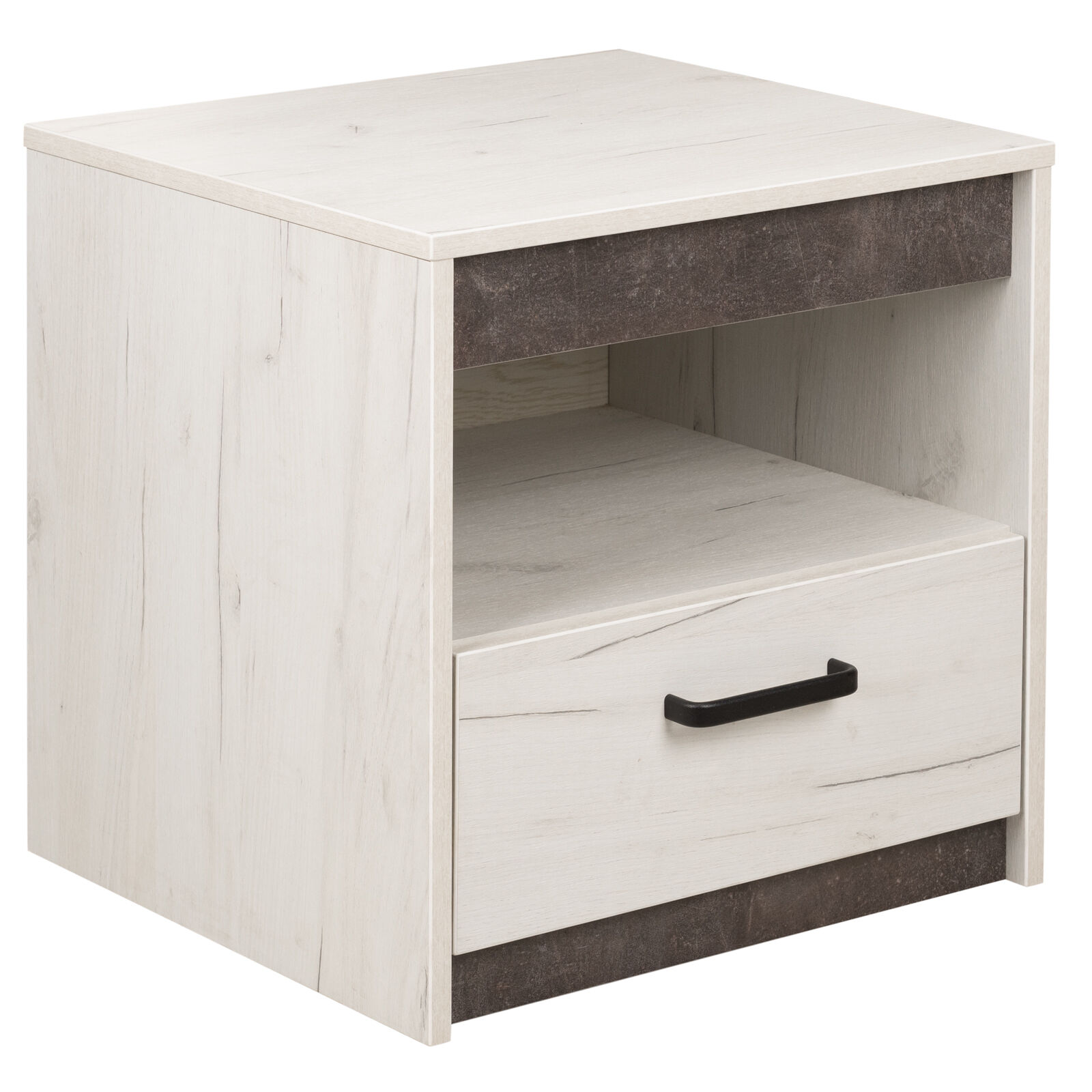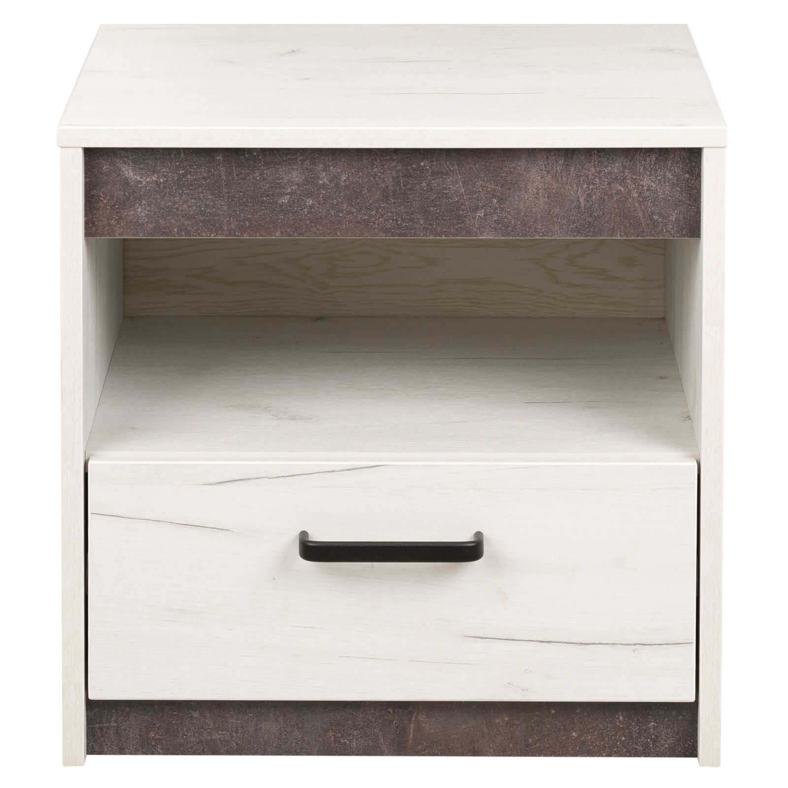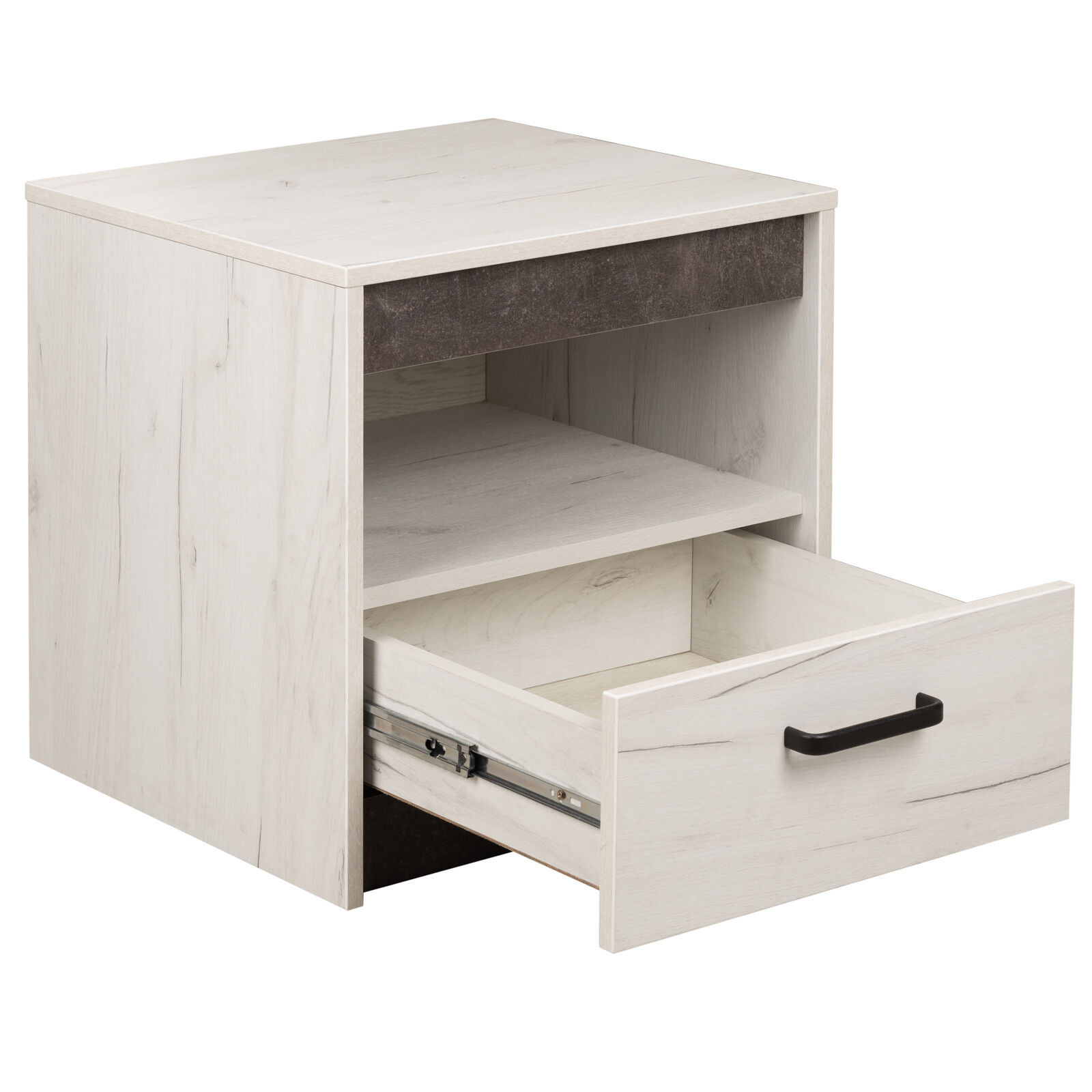 Тумба прикроватная «Прага Дуб белый Крафт-Ателье темное» Кромка 2 мм (открытые торцы деталей). Металлические ручки и крючки. Задний щит ДВП в цвет корпуса. Полновыкатные направляющие. Фасад ЛДСП. «Мебель поставляется в разобранном виде».