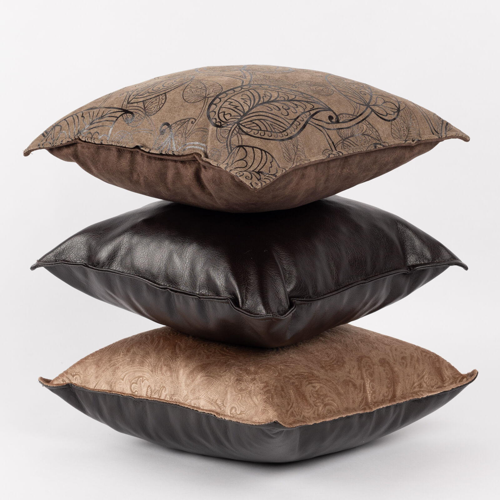 Декоративная подушка станет эффектным акцентом любого интерьера. Изделие выполнено из качественных, безопасных для здоровья материалов. Подушка набор 3шт 300х300 23914 ткань экокожа