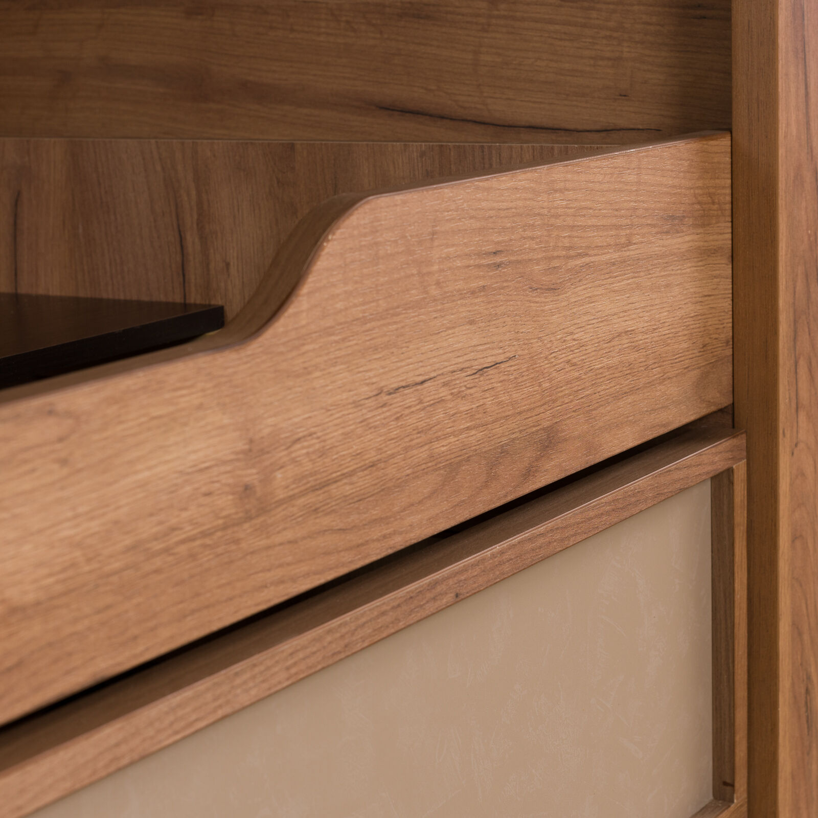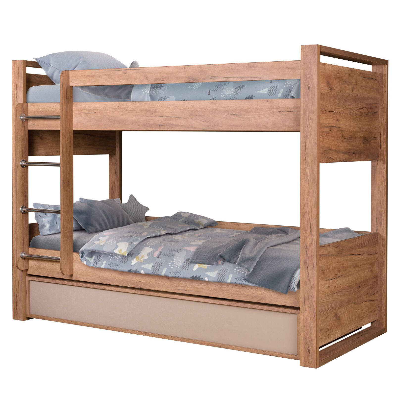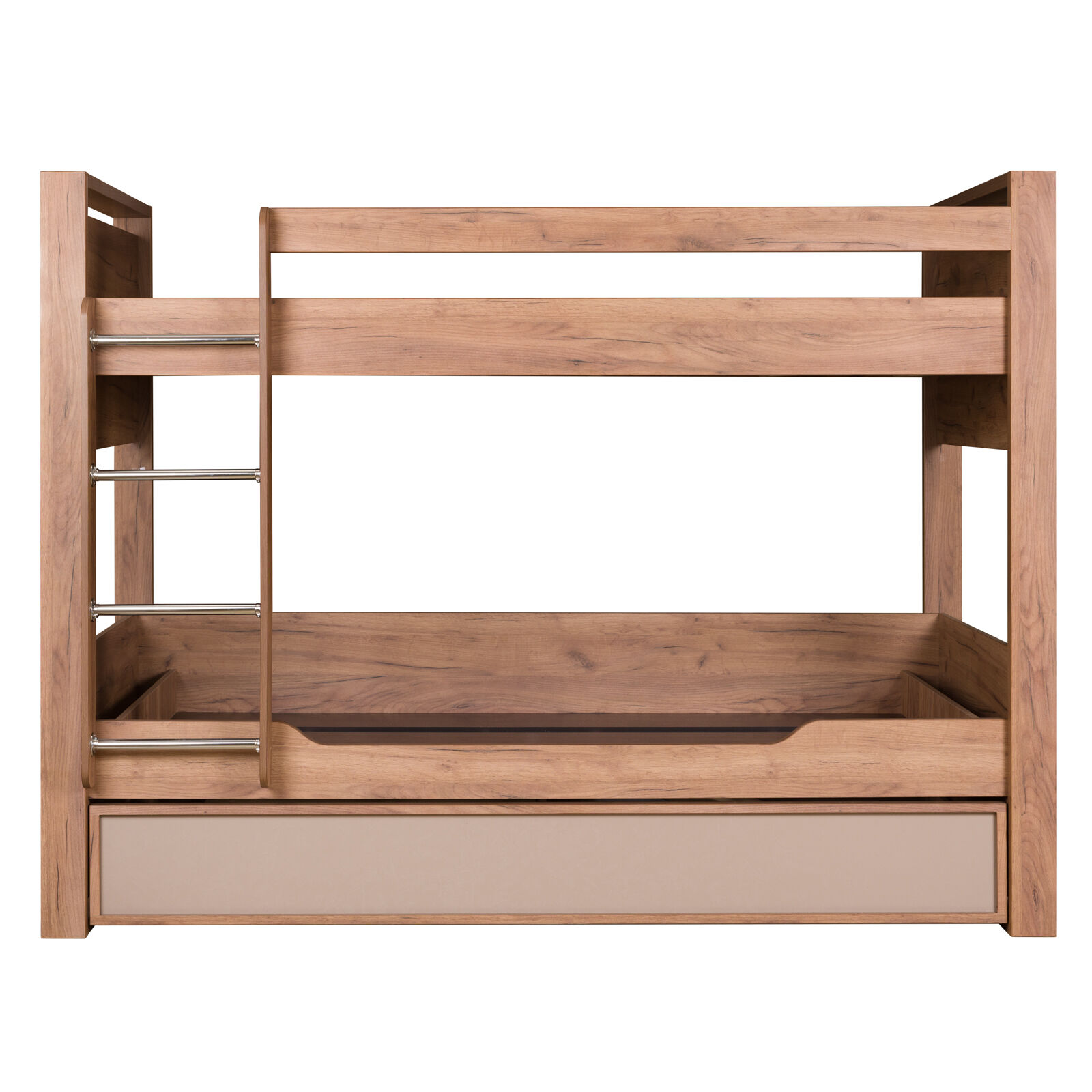 Двухъярусная кровать «Nature 90 Дуб табачный Craft-Мокко» идеально подойдет для небольшой комнаты и с комфортом разместит двух детей. Просторный выкатной ящик станет удобным местом для хранения постельных принадлежностей, одежды или еще одним полноценным спальным местом. «Матрас в комплект не входит». «Мебель поставляется в разобранном виде».