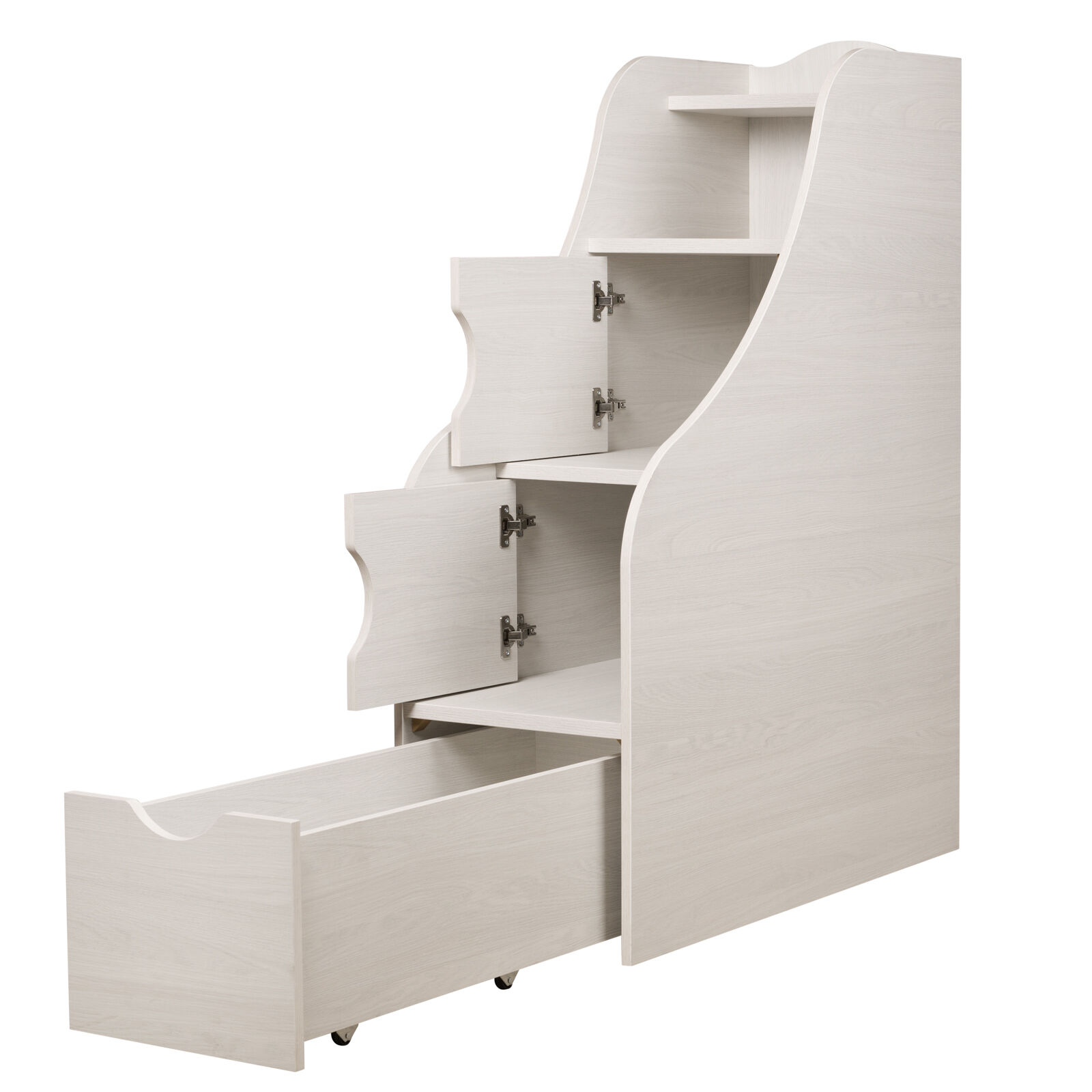 Надежная, безопасная «Тумба лестница Adele 91 (спальня) Ясень анкор светлый» с удобными ступеньками позволит ребенку легко забраться в кровать, а закрытые шкафчики на каждой ступеньке помогут сэкономить пространство в комнате и создать дополнительное место для хранения. «Мебель поставляется в разобранном виде».