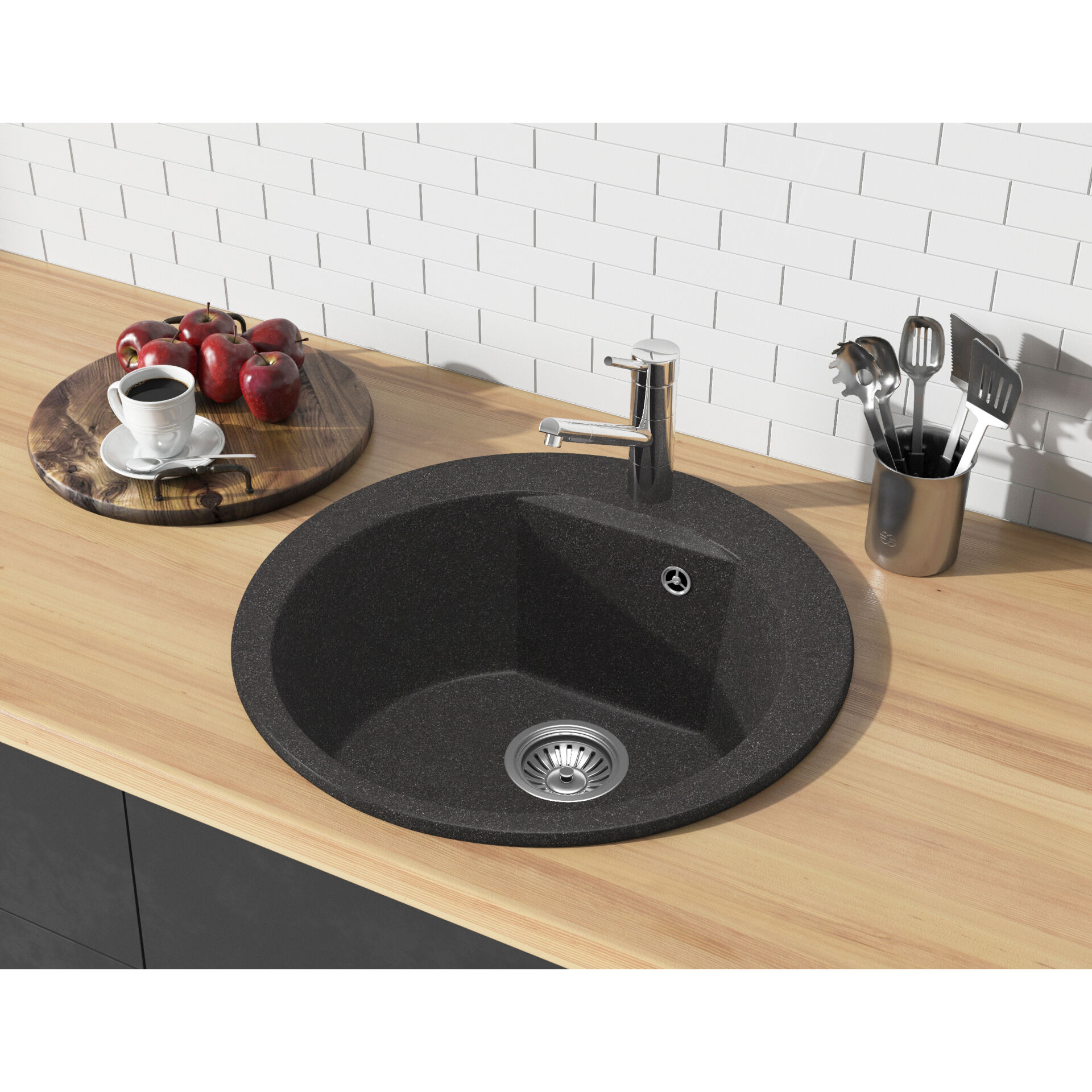Мойка «Polygran ATOL-520 №14 Серый» - несмотря на компактный внешний вид, она довольно вместительная благодаря увеличенному диаметру и глубине чаши 200 мм. Композитный материал с добавлением гранитной крошки выдерживает колебания температуры, имеет высокую прочность и стойкость к пищевым и химическим красителям. Для ухода за мойкой можно использовать любые неабразивные моющие средства. Готовое отверстие для смесителя упростит монтаж. Модель легко поместится в тумбе шириной от 45 см. «В комплекте: сифон, набор сливной арматуры с нержавеющим клапаном, инструкция по установке»