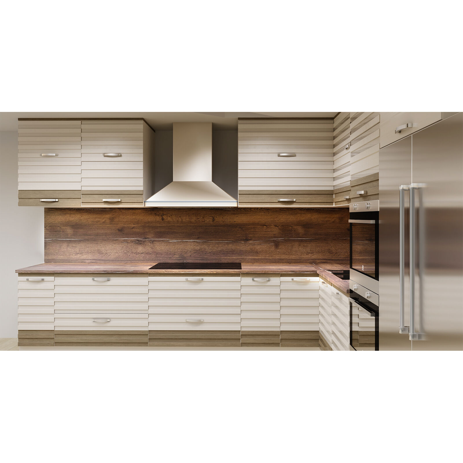 Мебельный щит «Скиф 300см №235П Северный дуб» идеально подходит закрыть расстояние между верхними шкафами и рабочей поверхностью стола, не требуя профессиональных навыков и больших денежных затрат. Изготовлен на основе древесно-стружечной плиты, покрытой слоистым пластиком, который производится по технологии высокого давления.