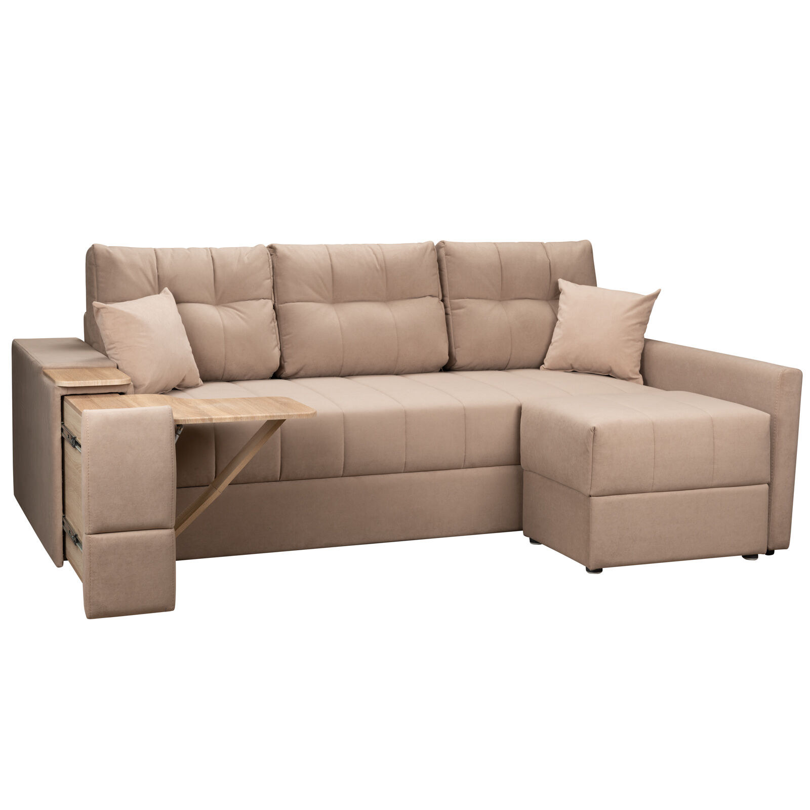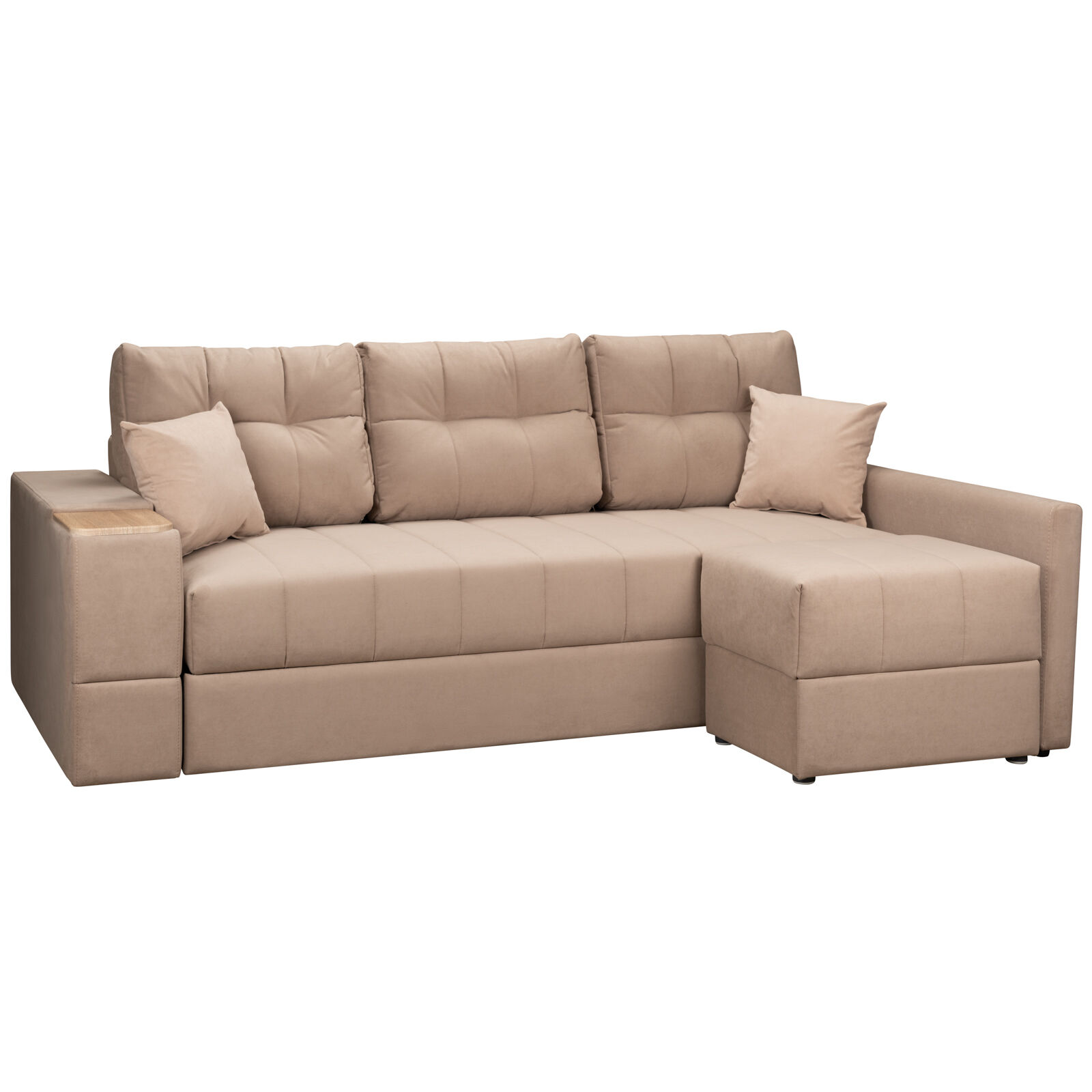 Диван Камелот 4 ДУ НПБ -Modus 03 беж-Сонома-оснащен выдвижным столиком из подлокотника, что позволяет комфортно отдохнуть после рабочего дня. Мягкий диван на металлокаркасе, отличающийся высокими эксплуатационными характеристиками и привлекательным внешним видом. К его ключевым особенностям можно отнести: специальную простежку, которая обеспечивает сохранение формы на протяжении всего периода эксплуатации. Возможность создания полноценной кровати за счет механизма Еврокнижка. «Мебель поставляется в разобранном виде».