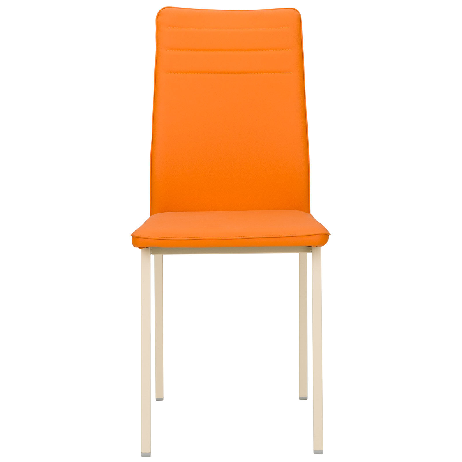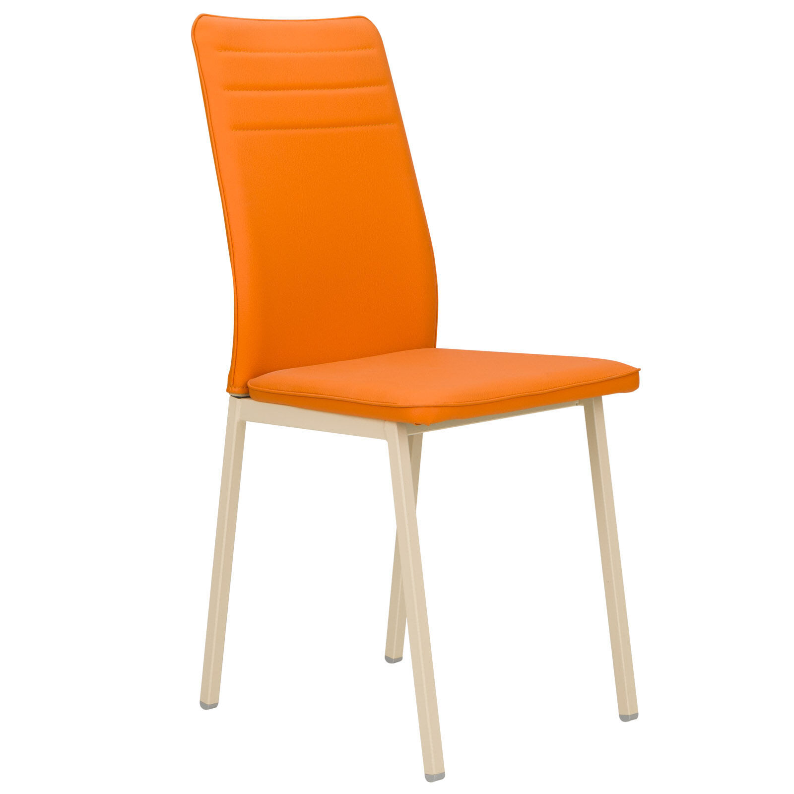 Стул на металлическом каркасе. Сидение и спинка стула мягкие, обитые эко кожей, с горизонтальной прострочкой и кантом.