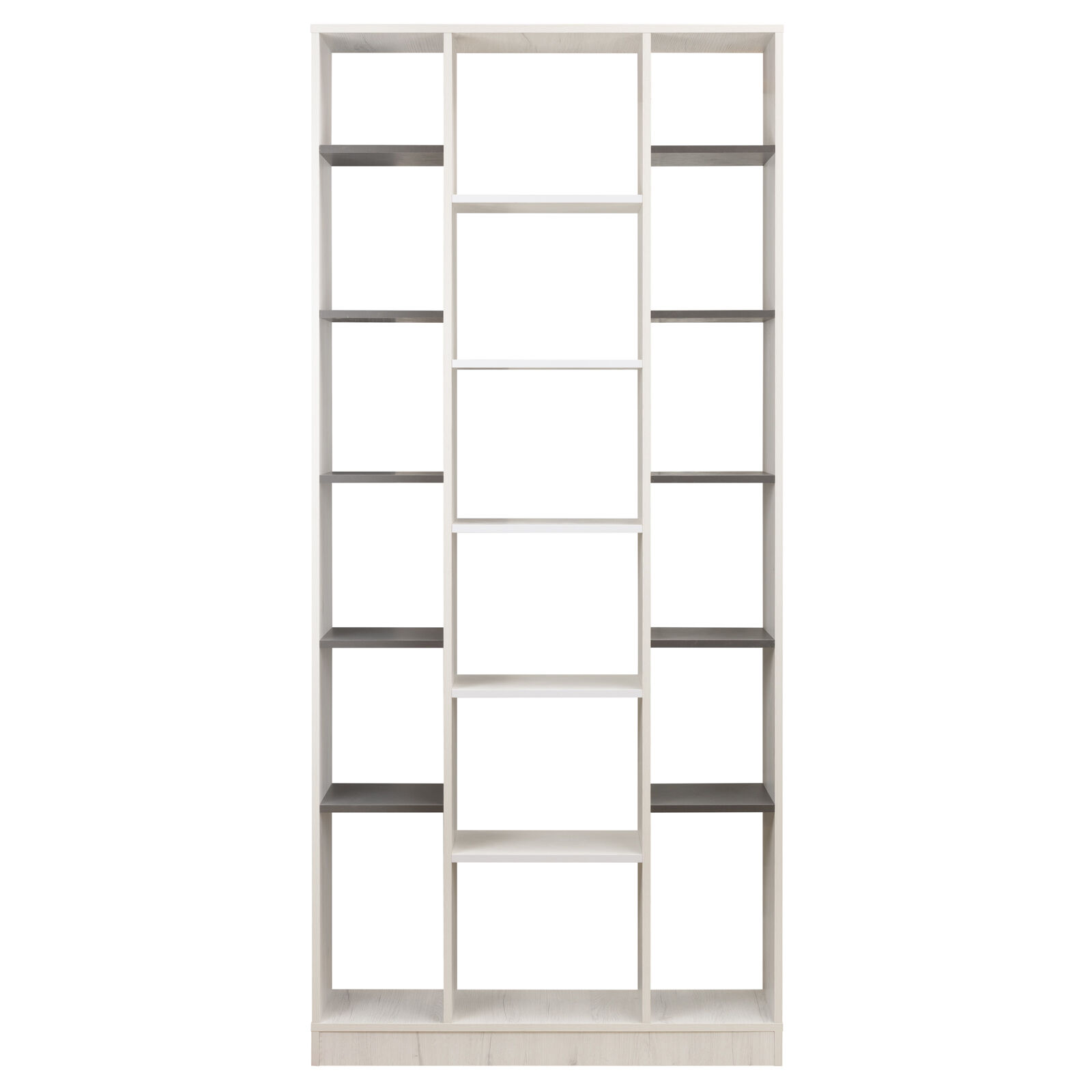 Стеллаж - перегородка Ньютон Грей Дуб Эльза/Тем. Серый Лофт-Белый Лофт 1.1.1 Конструкция цоколя предусматривает возможность установки стеллажа вдоль-поперек стены и в угол. «Мебель поставляется в разбранном виде».