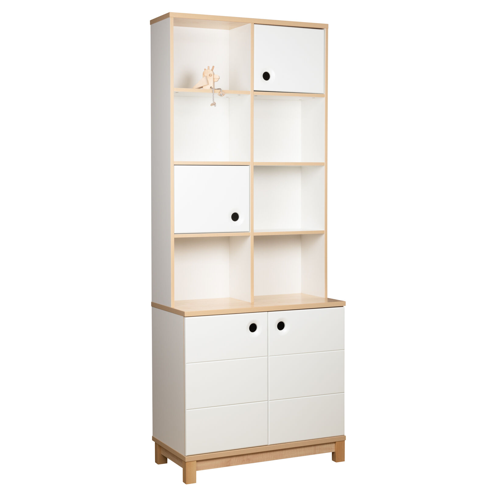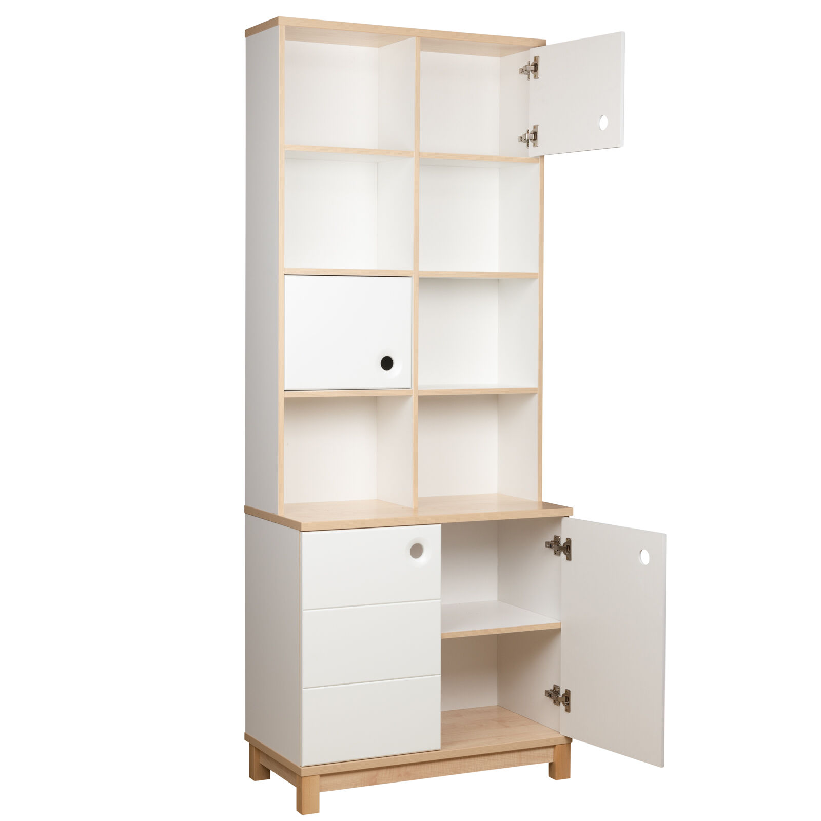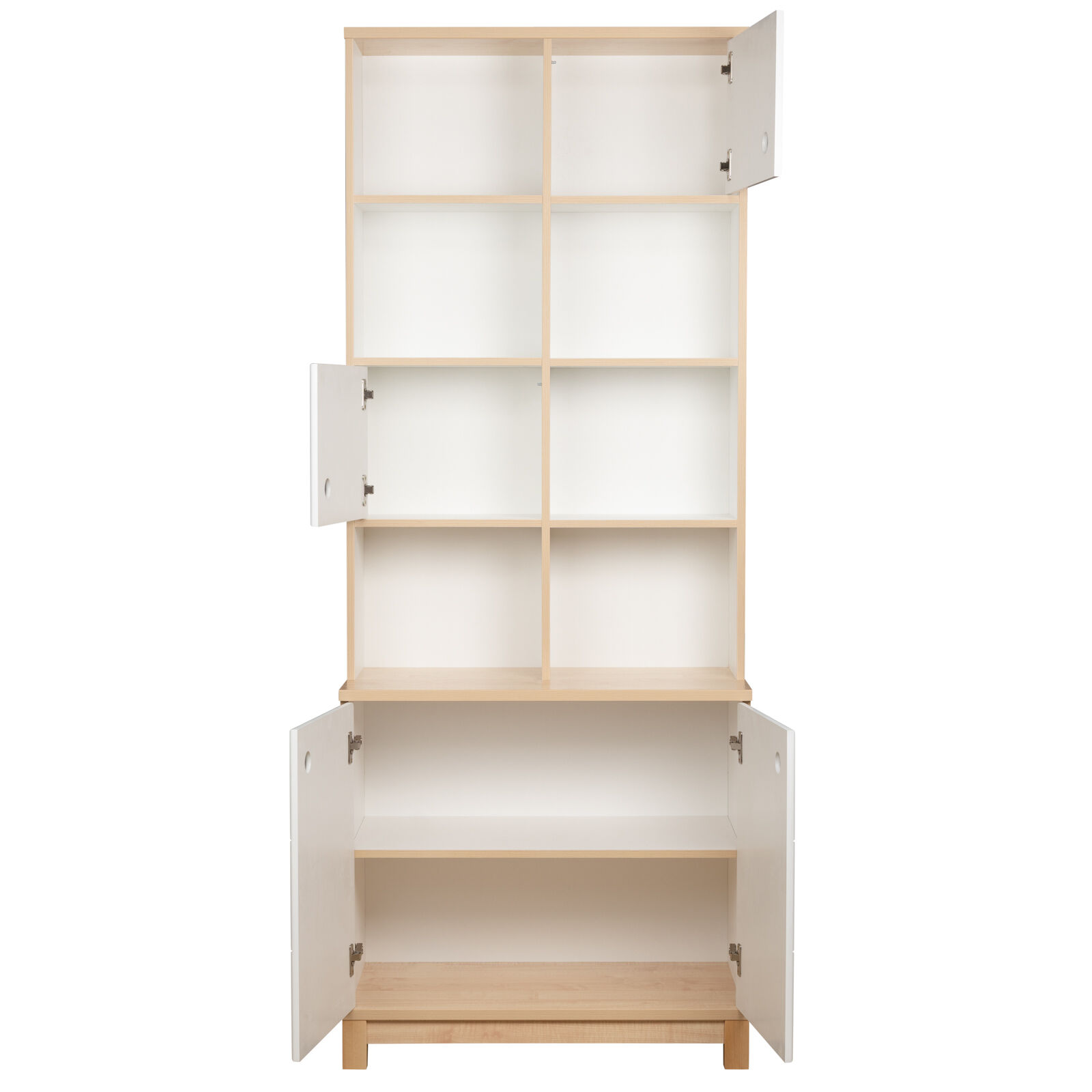 Стеллаж широкий «Робин Wood Лайт Клен-Белый 1.0.1» предназначен для хранения одежды, белья, книг, игрушек. За нижними закрытыми дверками одна полка (посередине). Материал: Корпус: ЛДСП 16 мм. Основание и крышка: ЛДСП 22 мм. Фасады: МДФ, окрашенное эмалью, с фрезерованными ручками. Опоры: массив березы. Фурнитура: Петли с доводчиками. Дополнительные размеры: Расстояние между верхними неглубокими полками: 307 мм. «Мебель поставляется в разобранном виде».