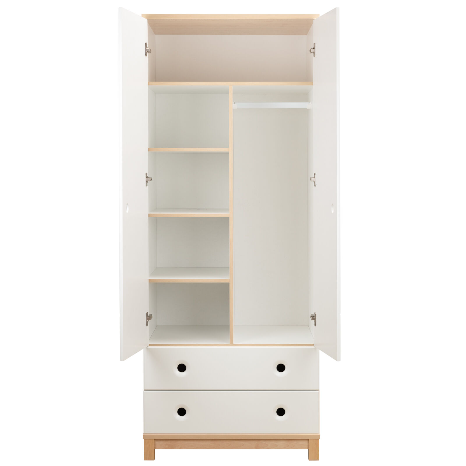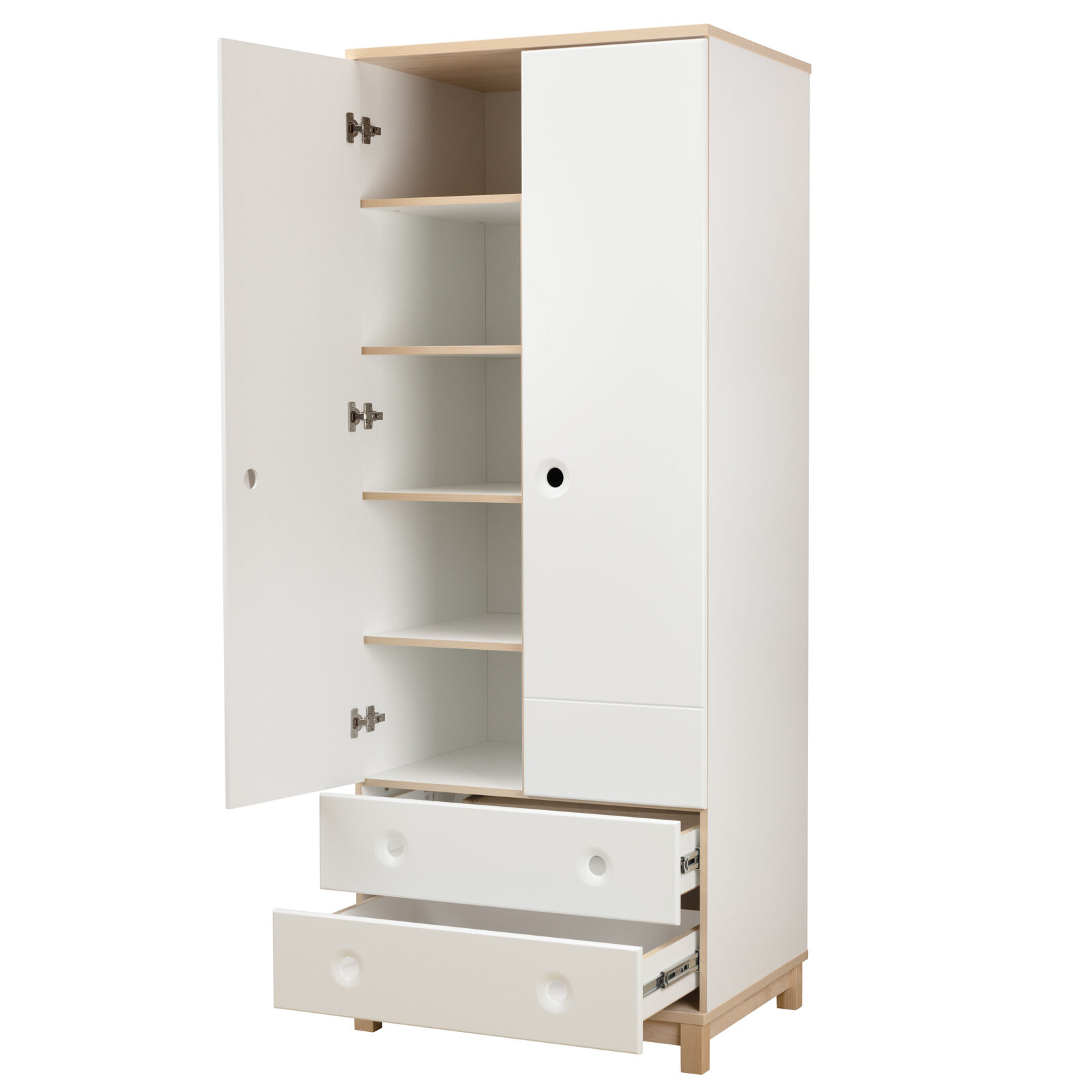 Шкаф «Робин Wood Лайт Клен- Белый 1.0.1» предназначен для хранения одежды и белья. Материал: Корпус: ЛДСП 16 мм. Основание и крышка: ЛДСП 22 мм. Фасады: МДФ, окрашенное эмалью, с фрезерованными ручками. Опоры: массив березы. Фурнитура: Направляющие шариковые. Петли с доводчиками. Штанга. «Мебель поставляется в разобранном виде».