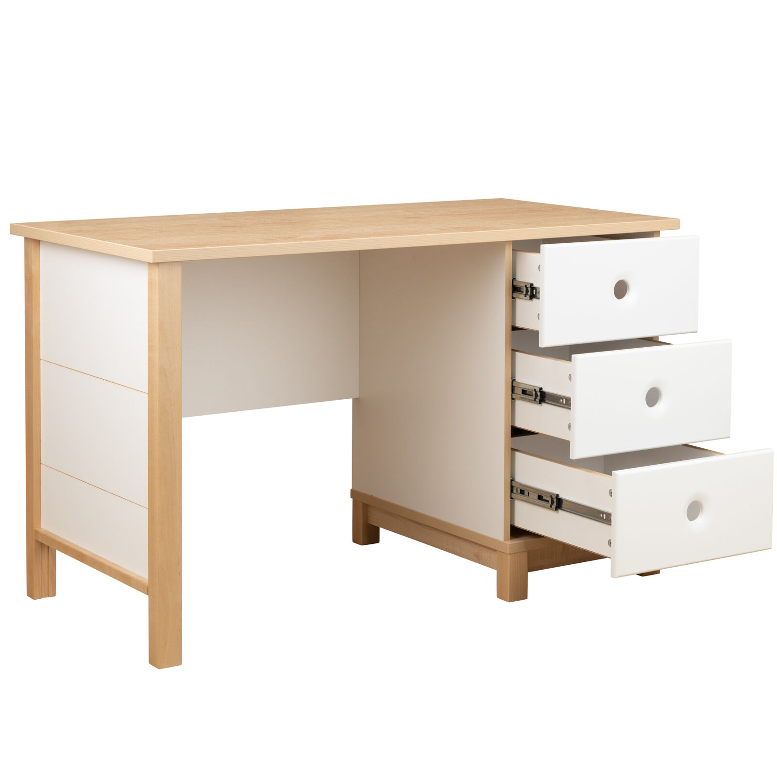 Стол с тумбой универсальный «Робин Wood Лайт Клен-Белый 1.0.1» предназначен для организации учебного процесса. Тумба может быть как слева, так и справа. Материал: Корпус: ЛДСП 16 мм. Столешница: ЛДСП 22 мм. Фасады: МДФ с фрезерованными ручками, покрытие - эмаль. Опоры: массив березы. Фурнитура: Направляющие шариковые. «Мебель поставляется в разобранном виде».