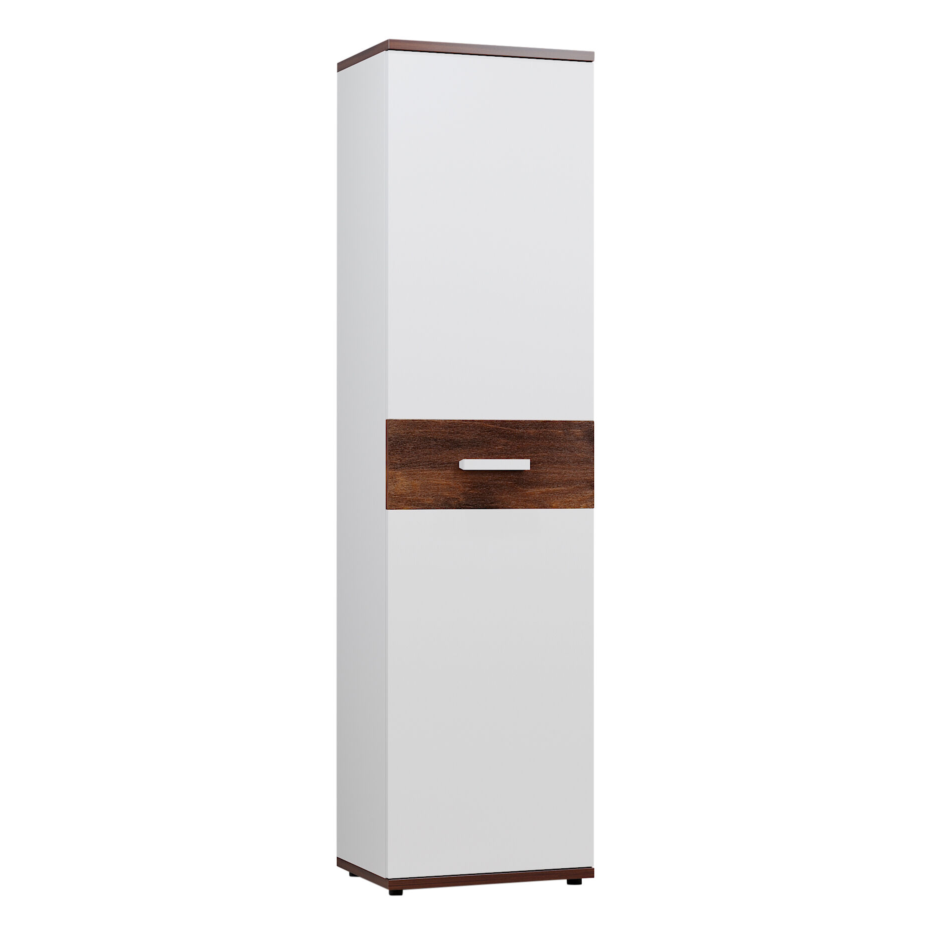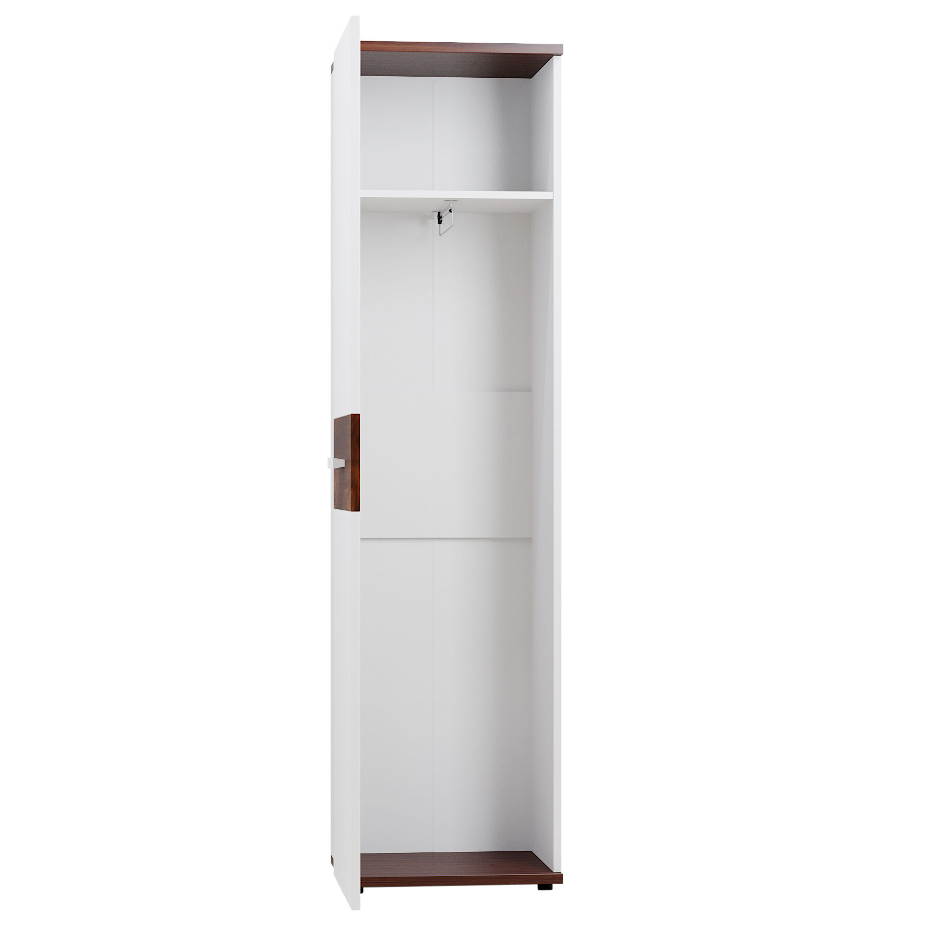 Шкаф для одежды и белья «Белый/Орех шоколадный Норвуд 71 (прихожая)» комплектуется выдвижной штангой для одежды. Верхняя и нижняя детали шкафа толщиной 22 мм в декоре Орех Шоколадный и брашированная вставка - яркие акценты простого белого модуля. Ударопрочная кромка на фасаде толщиной 2 мм продлит срок эксплуатации мебели. Фасад шкафа перенавешивается на ваше усмотрение. «Мебель поставляется в разобранном виде».