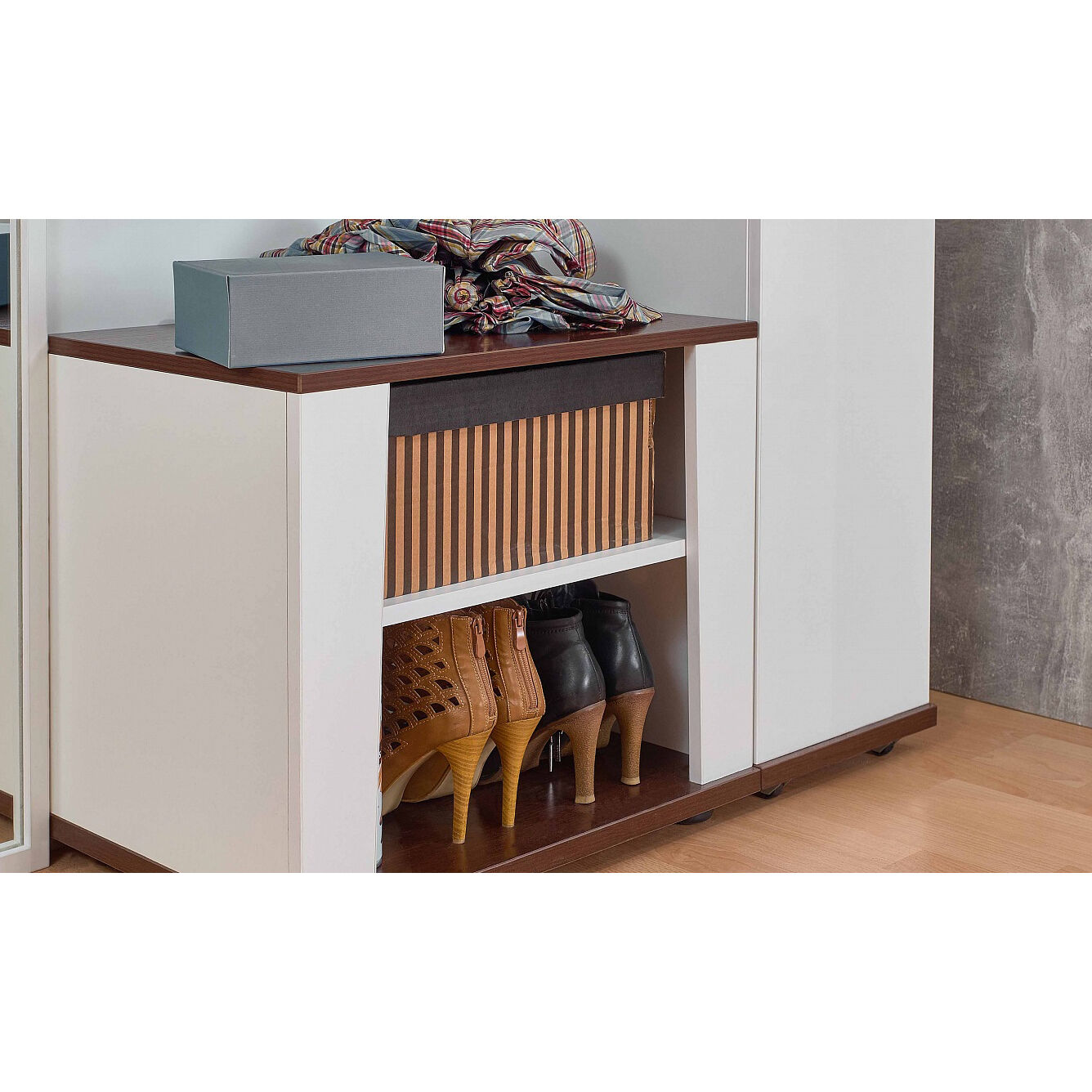 Вешалка «Белый-Орех шоколадный Норвуд 74 (прихожая)» создан для небольшой прихожей. Вешалка с двумя крючками, стационарной штангой и открытой нишей сможет разместить сезонную одежду небольшой семьи. Контрастные темные горизонтальные детали в декоре Орех Шоколадный, брашированная вставка из дерева - отличительные особенности коллекции Норвуд. Модуль рекомендуем крепить к стене с помощью подвесов. Особенности: Регулируемые опоры. Металлические крепкие крючки. Крепится на стену за подвесы. «Мебель поставляется в разобранном виде».