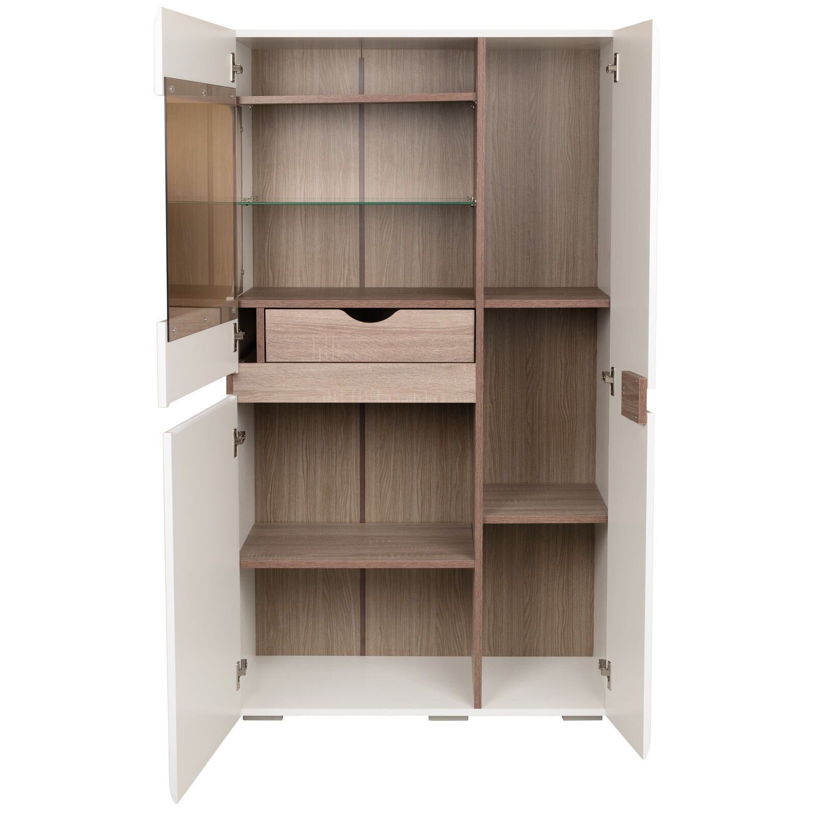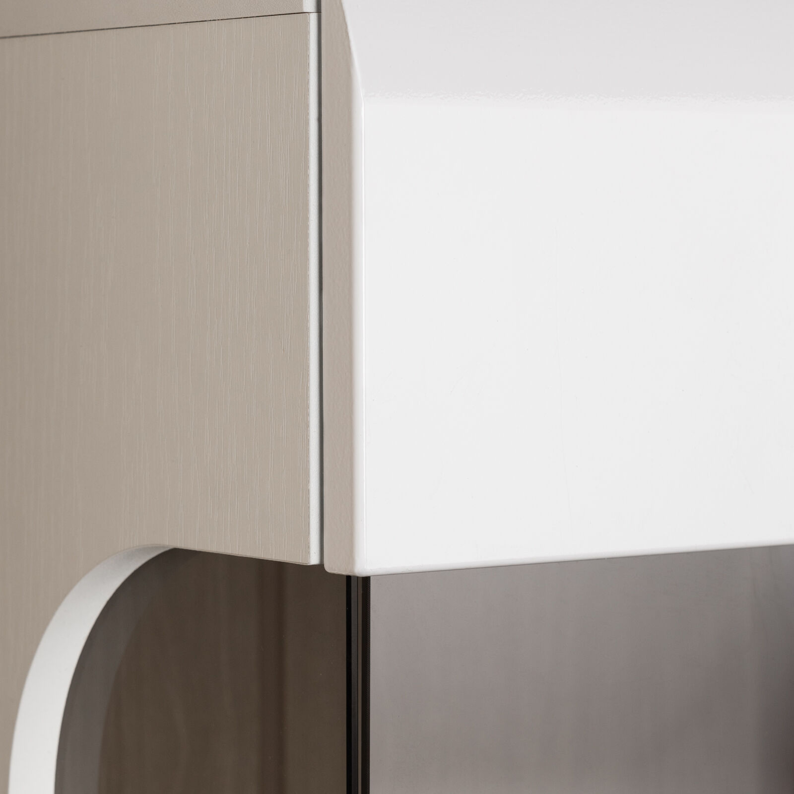 Шкаф витрина малая Ультра - стильная модель из Гостиной Ультра. Фасад и корпус изготовлены из МДФ и Эко ЛДСП в цвете Белый-Белый глянец, Двери на петлях с доводчиками. Тонированное стекло. В ящике - полновыкатные направляющие. Задний щит ДВП в цвет корпуса. Оригинальное исполнение ручек. «Мебель поставляется в разобранном виде».