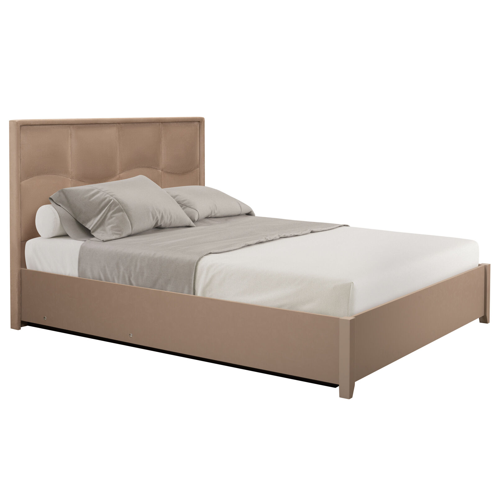 Кровать «Люкс Brownie 307 (спальня) 160 с подъемным механизмом Мокко -FUROR brown grey» с изголовьем из микрофибры цвета brown-grey. Мягкие подушечки образуют рисунок - волну, обрамляющая изголовье рама укутана в мягкую ткань. В изножье кровати - необычные опоры со скосом. «Матрас в комплект не входит». «Мебель поставляется в разобранном виде».