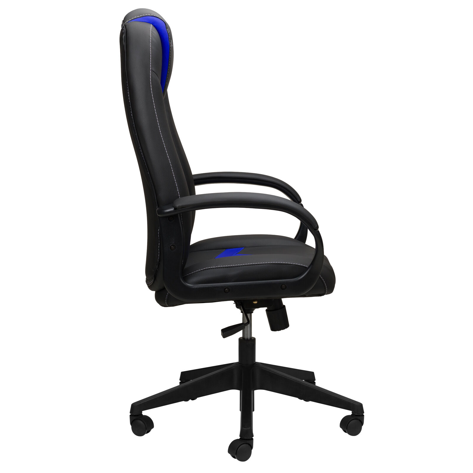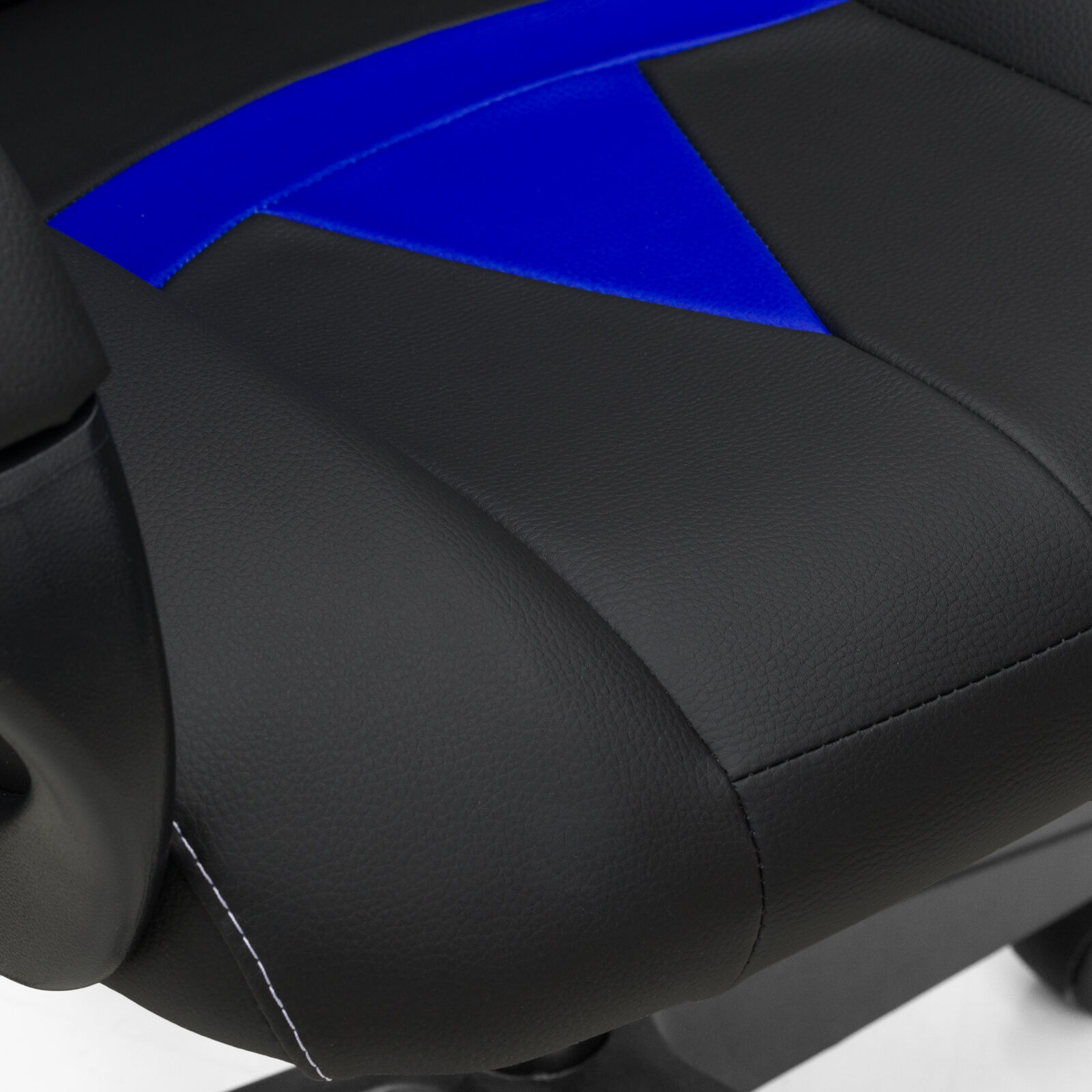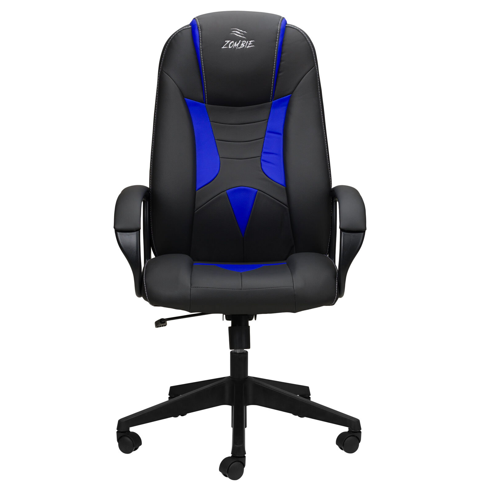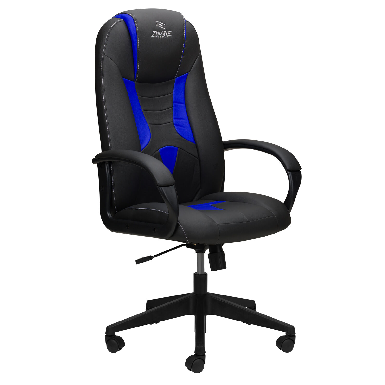 Кресло игровое «Zombie 8 черный-синий эко кожа крестовина пластик» Оснащено механизмом качания «Топ-ган» с регулировкой под вес и возможностью фиксации в вертикальном положении. Пластиковые удобные подлокотники с мягкими накладками из качественной искусственной кожи обеспечат дополнительный комфорт во время продолжительных игровых сессий или работы за компьютером. Пластиковая крестовина отличается особой прочностью, за счет чего, кресло способно выдерживать нагрузку до 181 кг. «Мебель поставляется в разобранном виде».