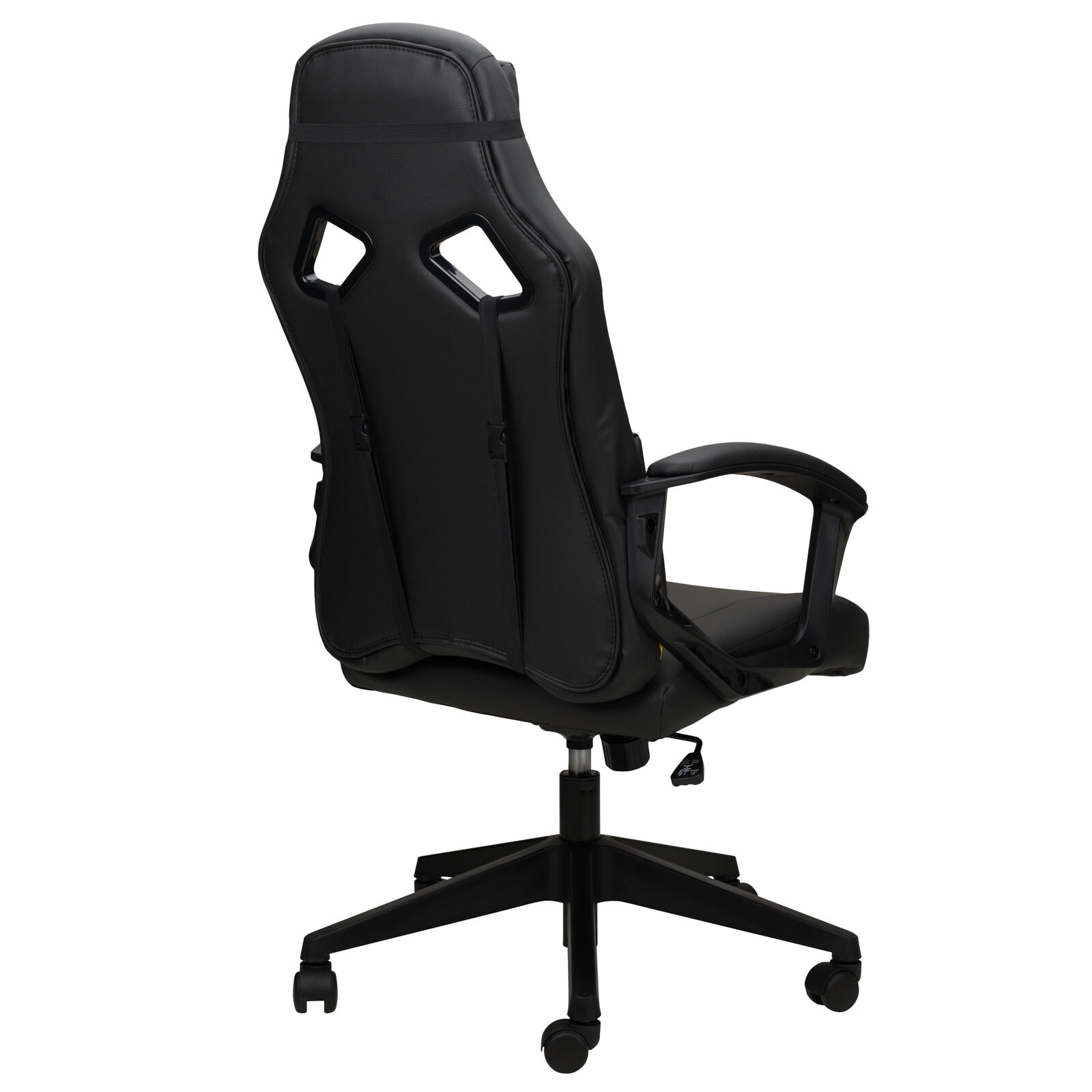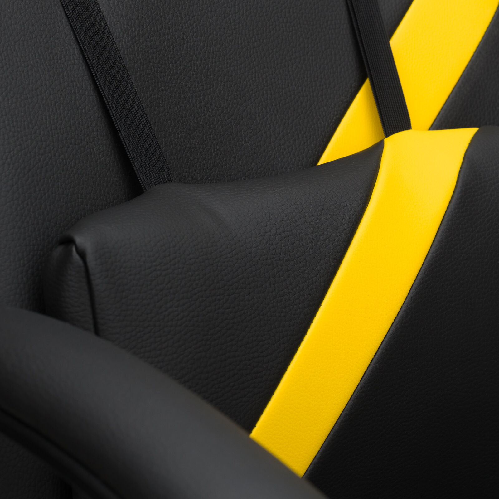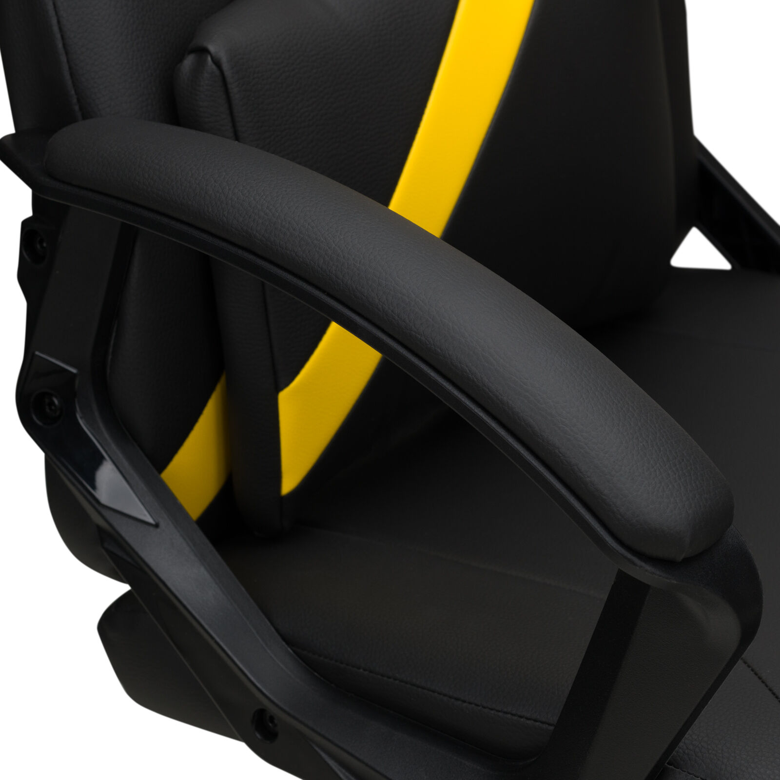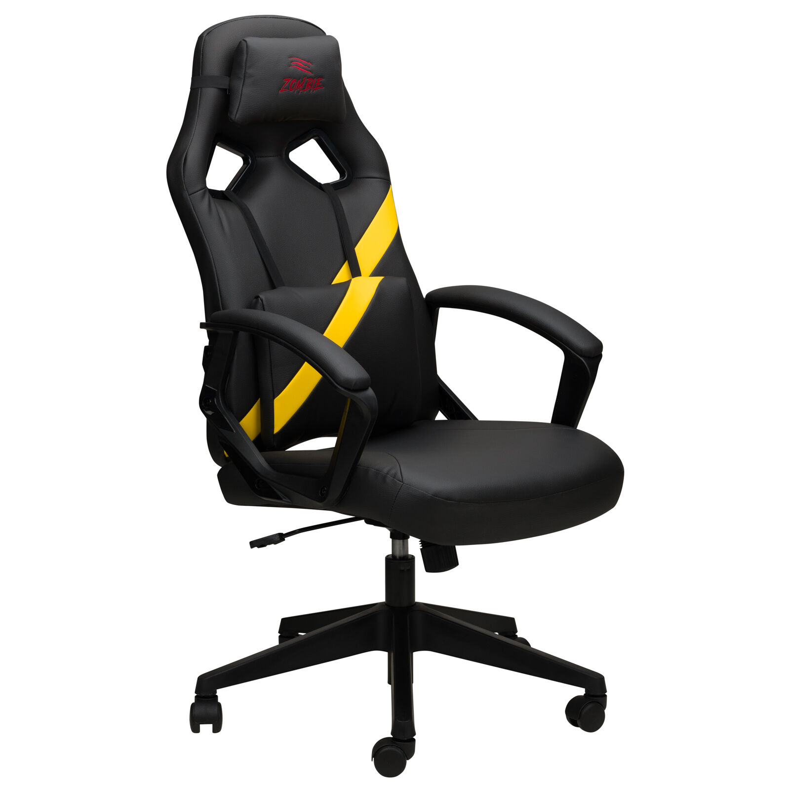 Кресло игровое «Zombie DRIVER черный - желтый эко кожа с подголов крестовина пластик»- основан на пластиковой крестовине c роликами для удобства перемещения, а также газлифте и механизме качания, которые отличаются высокой надежностью и способны выдержать нагрузку до 120 кг. Отличительной особенностью модели также является возможность регулировки угла наклона и высоты в пределах 8 см, что позволит вам легко подобрать комфортное положения для работы. Сиденье и спинка вкупе с подголовником и подушкой выполнены с применением высококачественной пены и обиты искусственной кожей, устойчивой к износу и различным механическим повреждениям. «Мебель поставляется в разобранном виде».